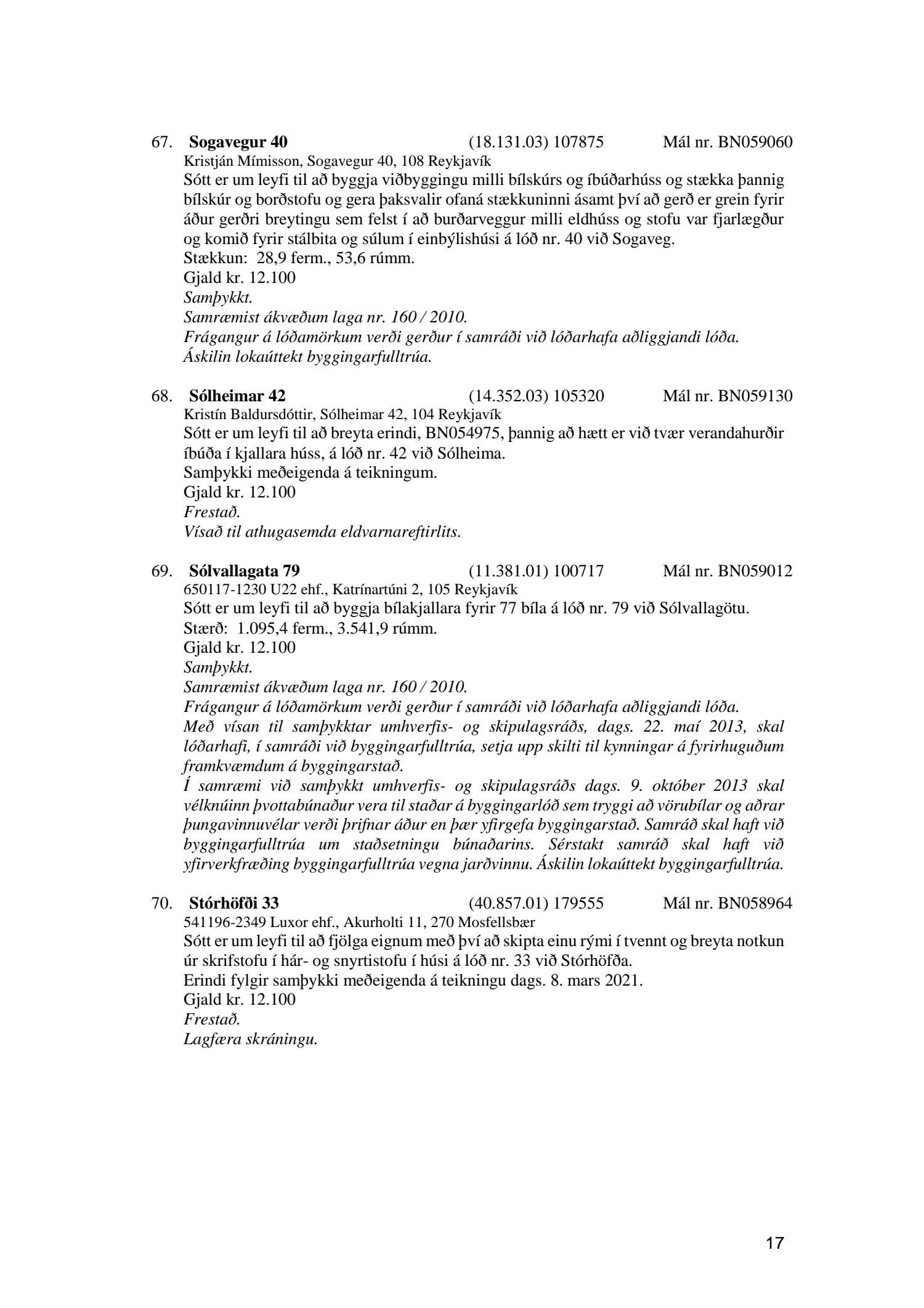 Umhverfis- og skipulagsráð nr. 70