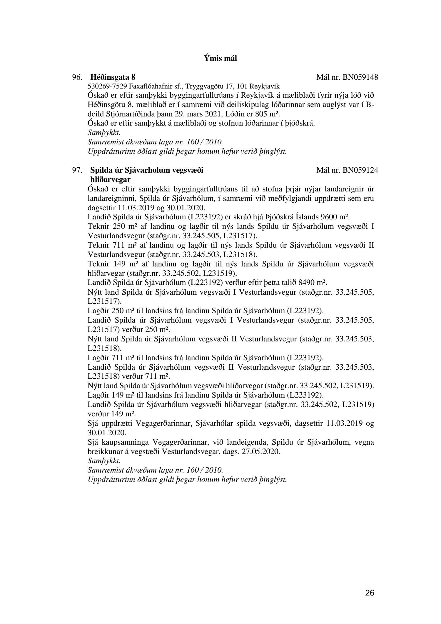 Umhverfis- og skipulagsráð nr. 26