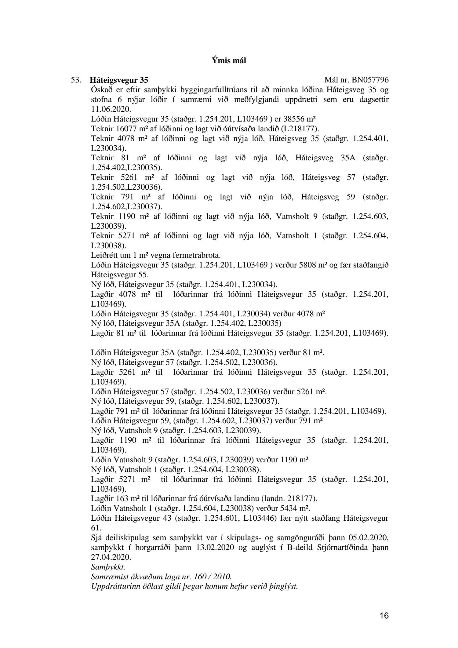 Afgreiðslufundur byggingarfulltrúa dags. 16. júní 2020