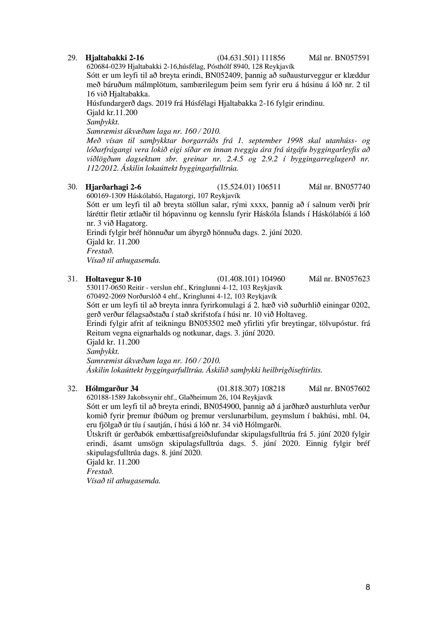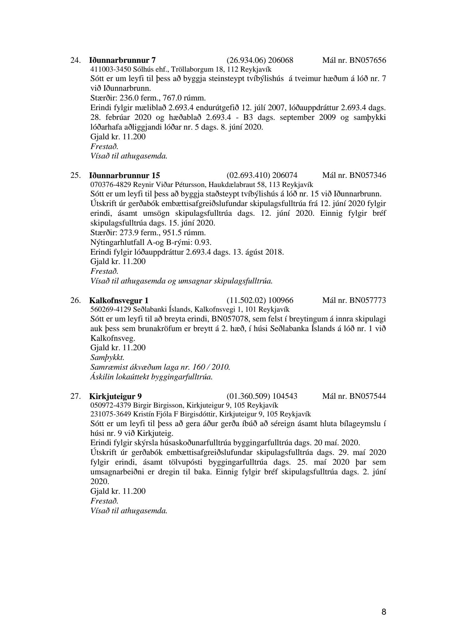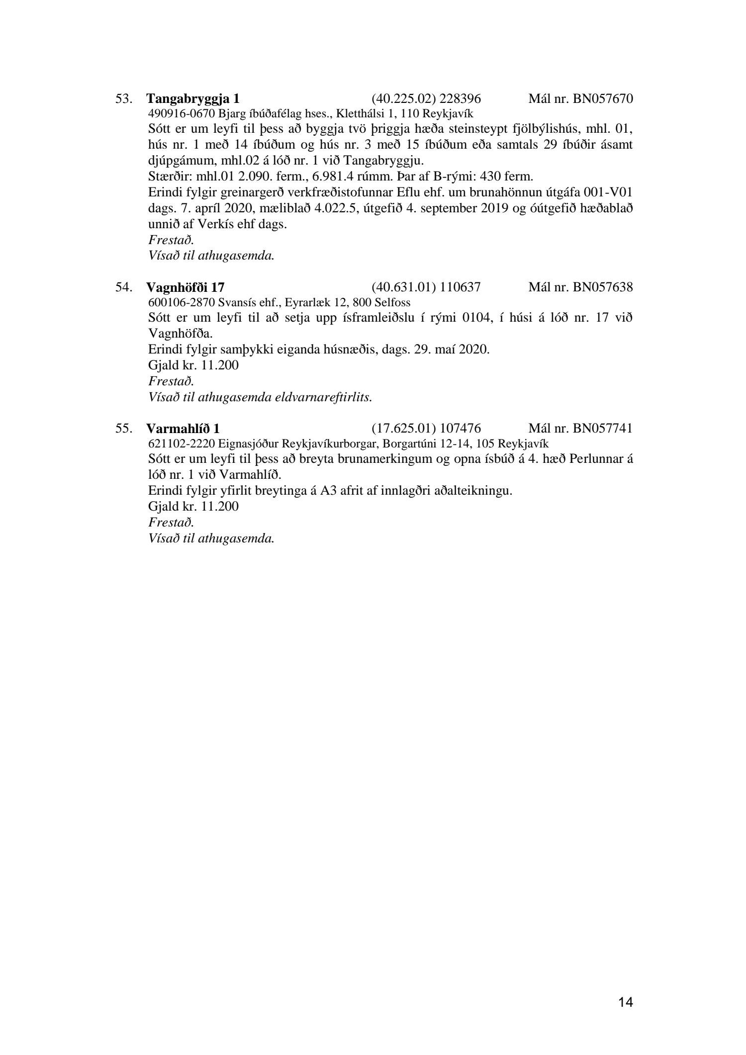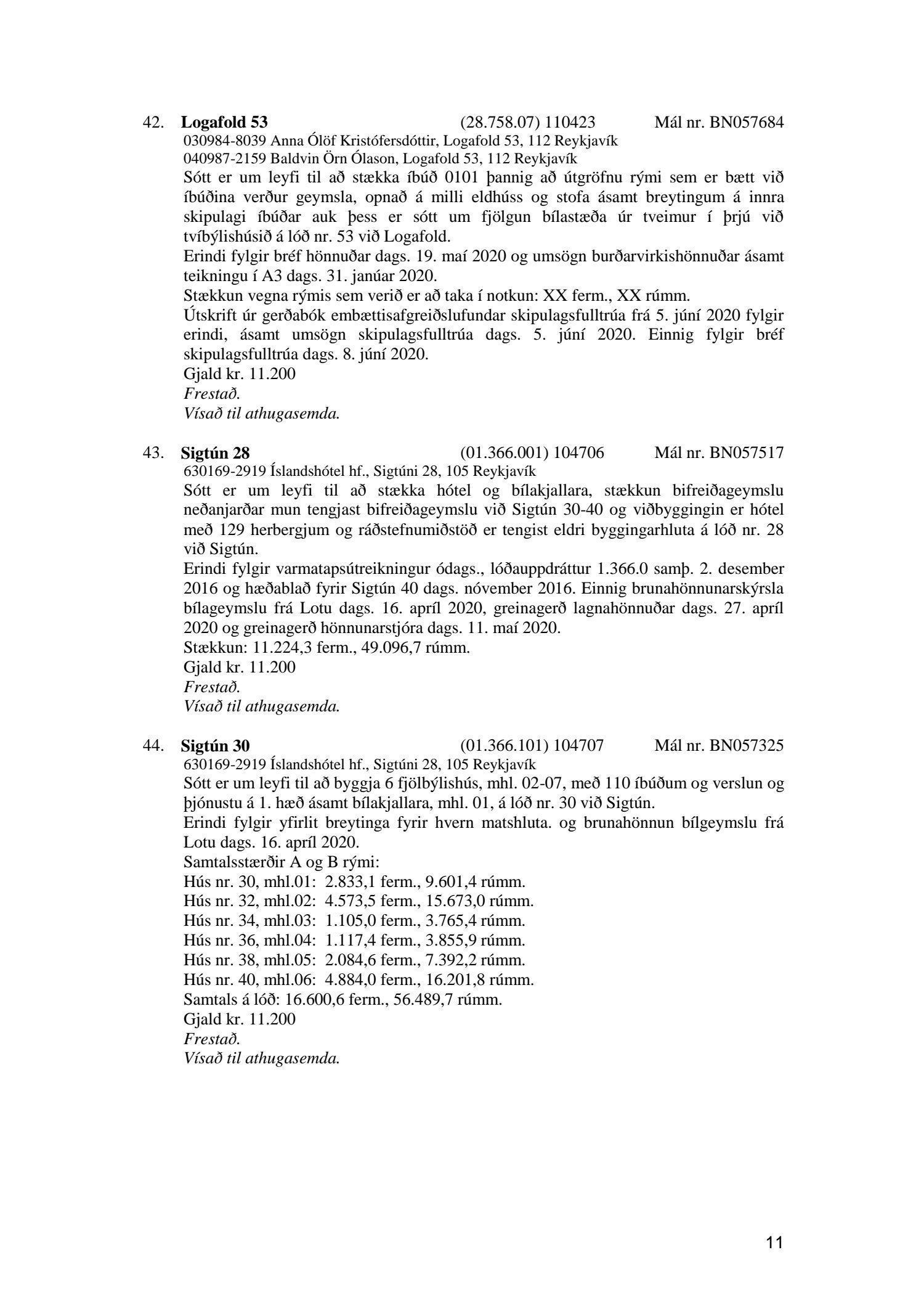 Fylgiskjal með fundargerð þessari er fundargerð afgreiðslufundar byggingarfulltrúa nr. 1071 frá 9. júní 2020, nr. 1072 frá 16. júní 2020 og nr. 1073 frá 23. júní 2020.