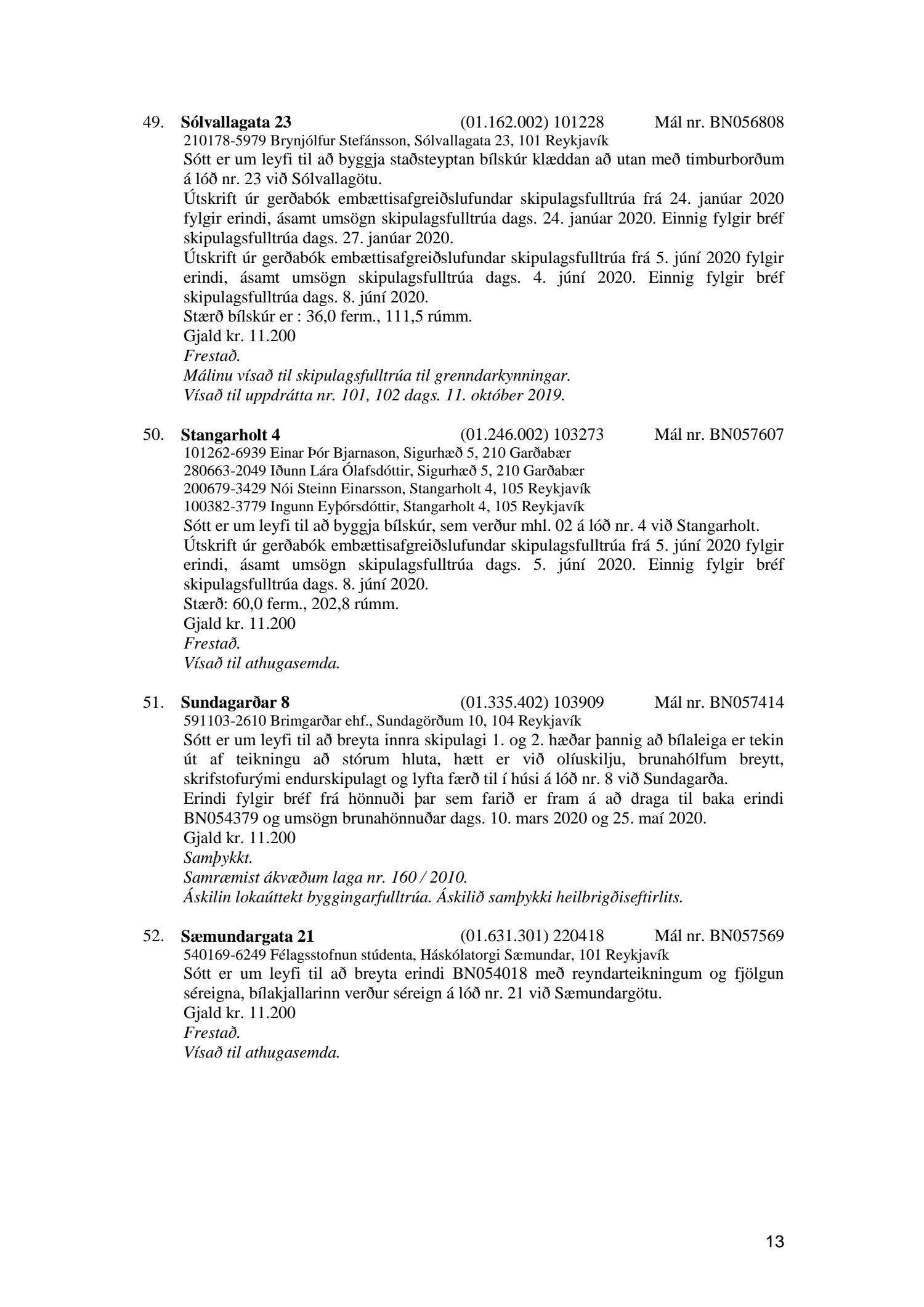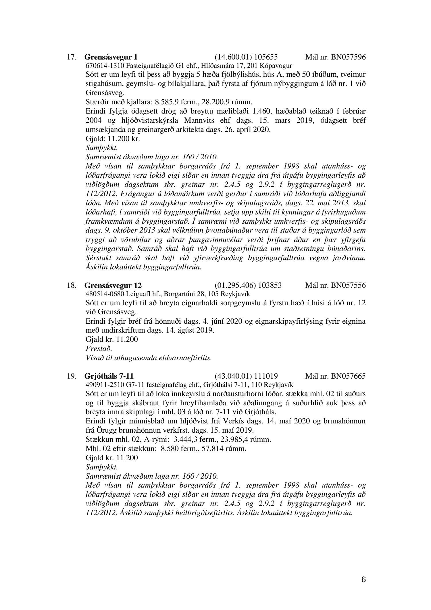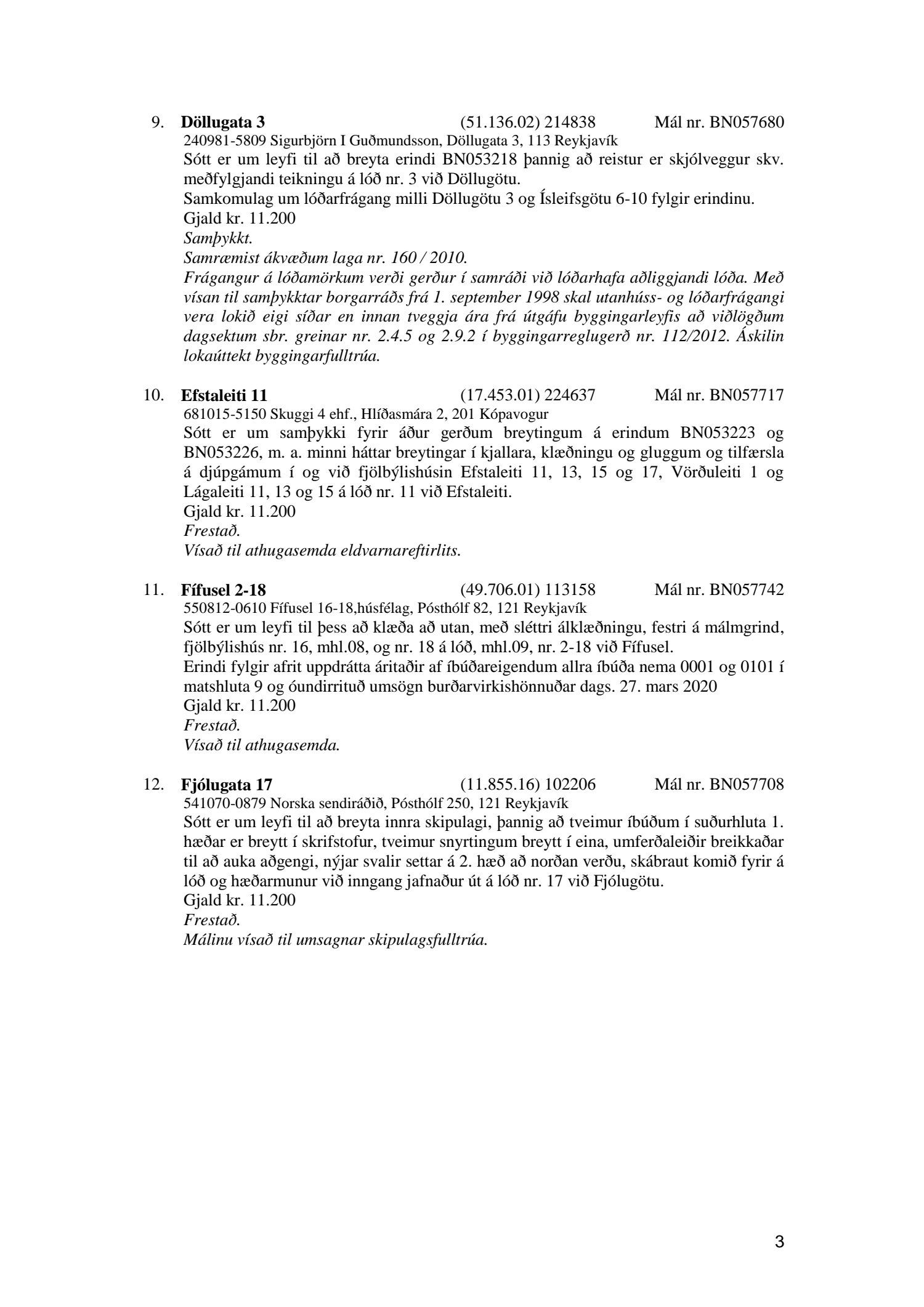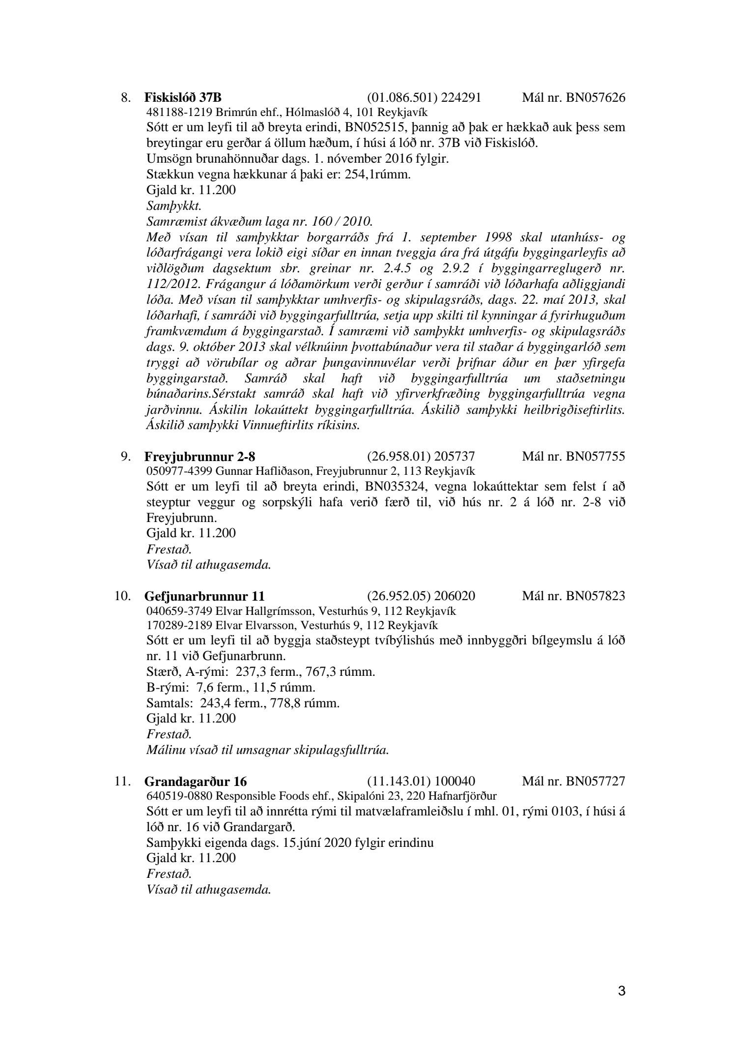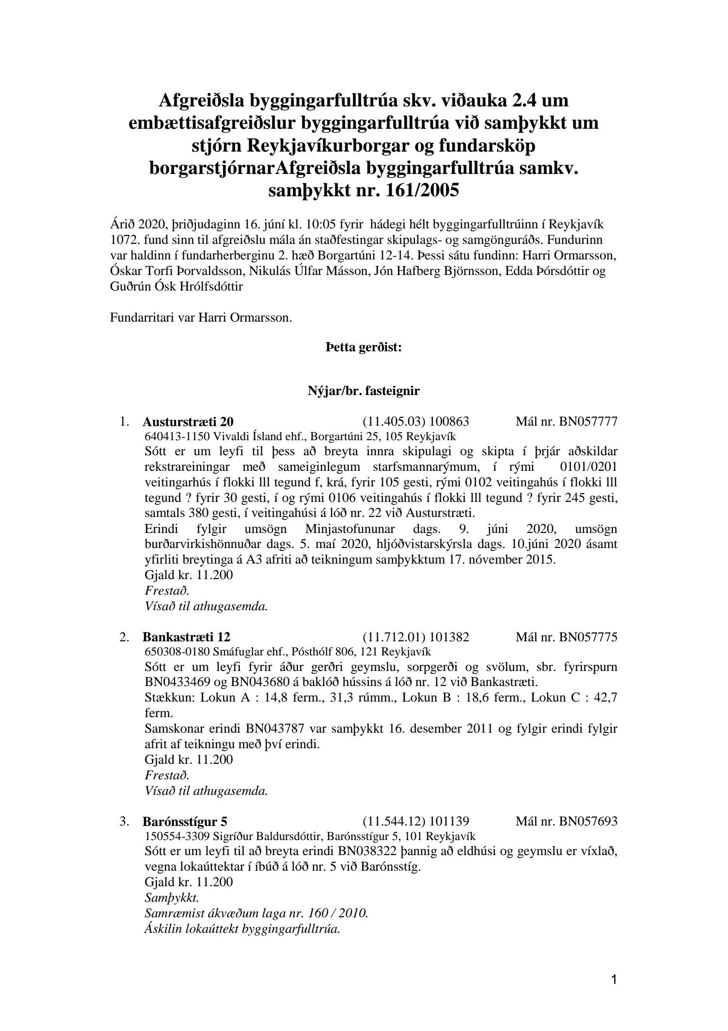 Fylgiskjal með fundargerð þessari er fundargerð afgreiðslufundar byggingarfulltrúa nr. 1071 frá 9. júní 2020, nr. 1072 frá 16. júní 2020 og nr. 1073 frá 23. júní 2020.