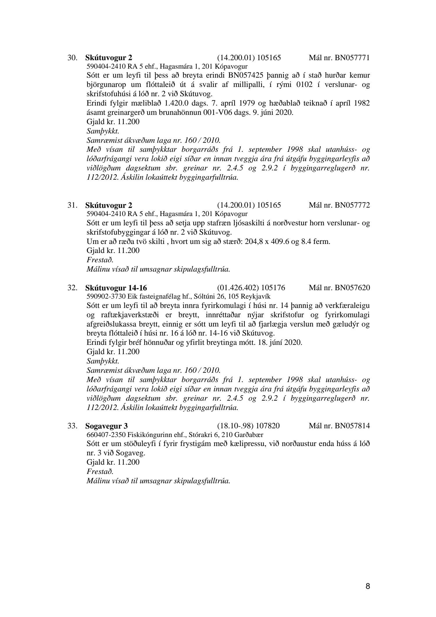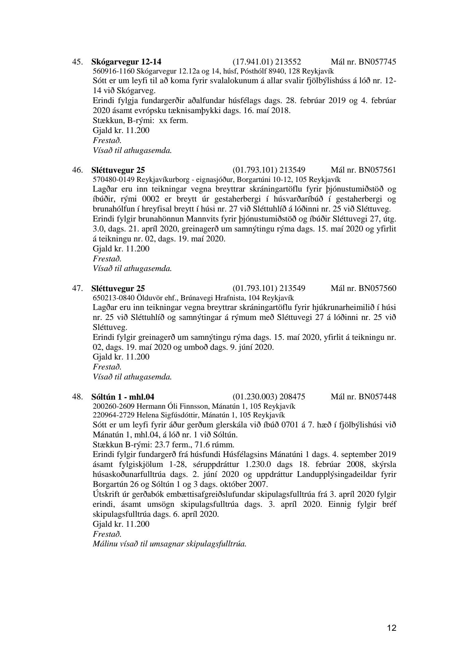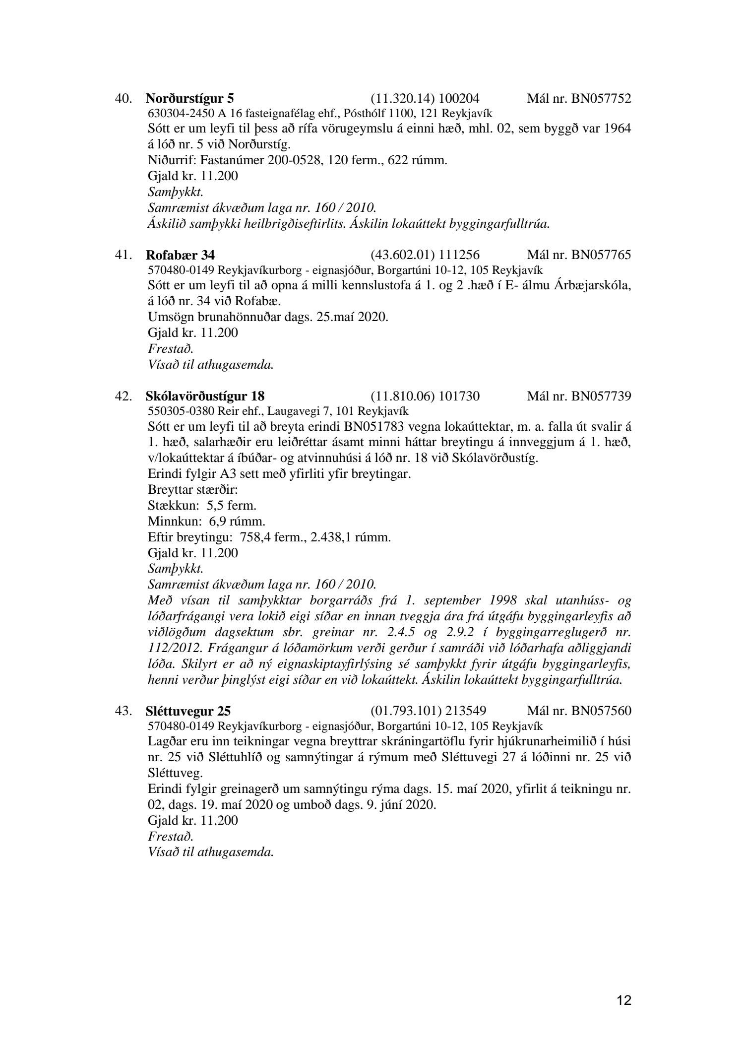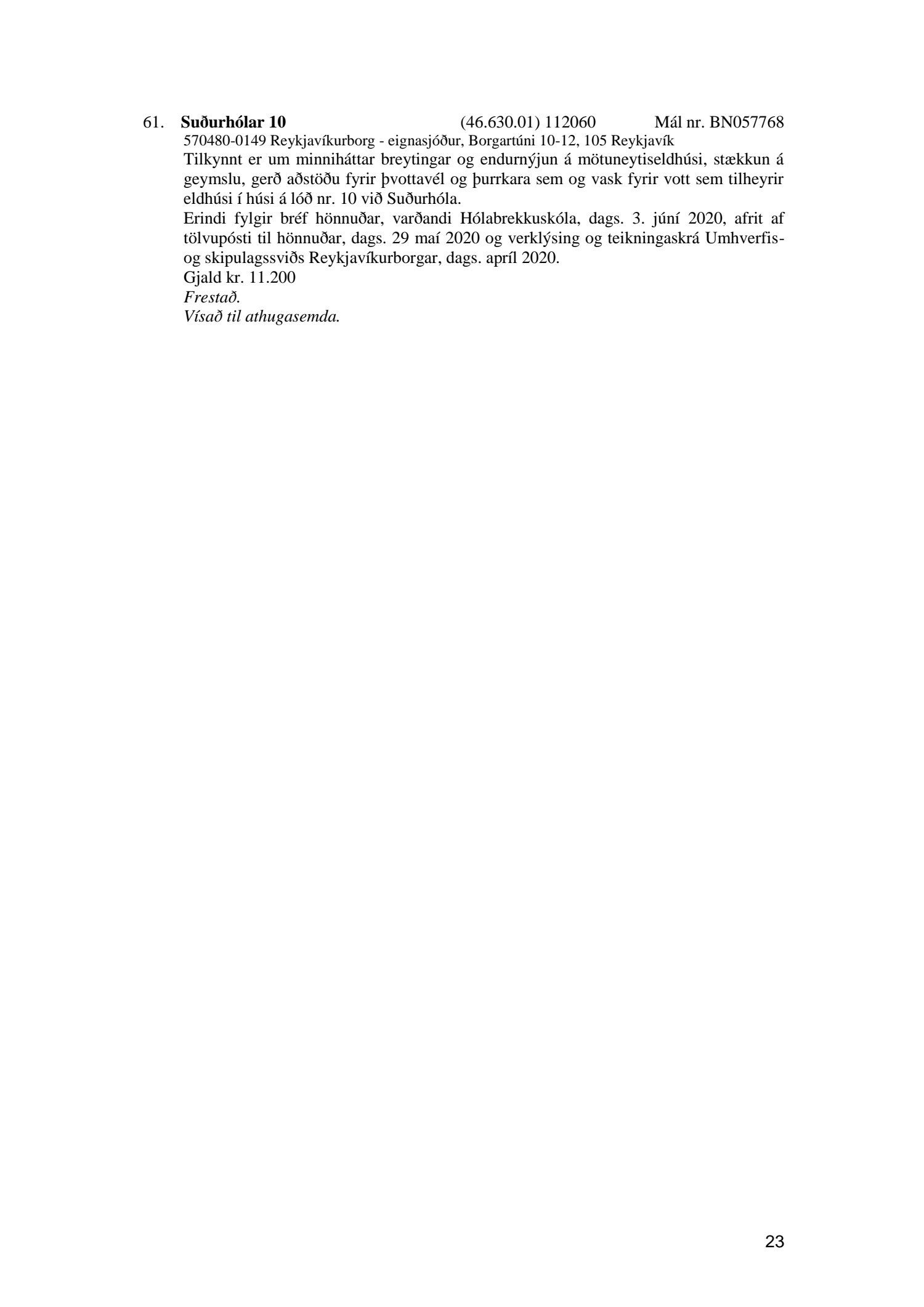 Fylgiskjal með fundargerð þessari er fundargerð afgreiðslufundar byggingarfulltrúa nr. 1071 frá 9. júní 2020, nr. 1072 frá 16. júní 2020 og nr. 1073 frá 23. júní 2020.