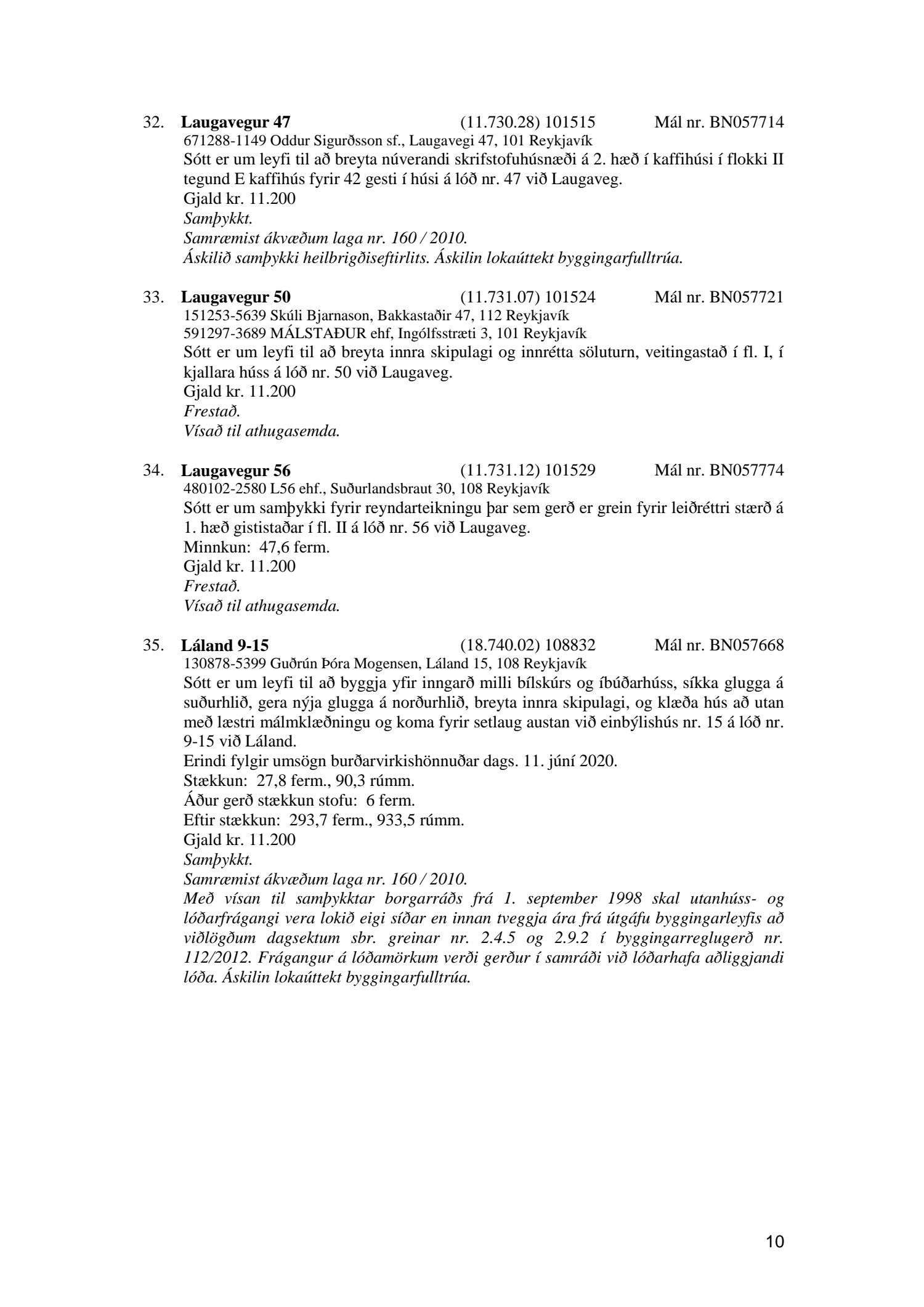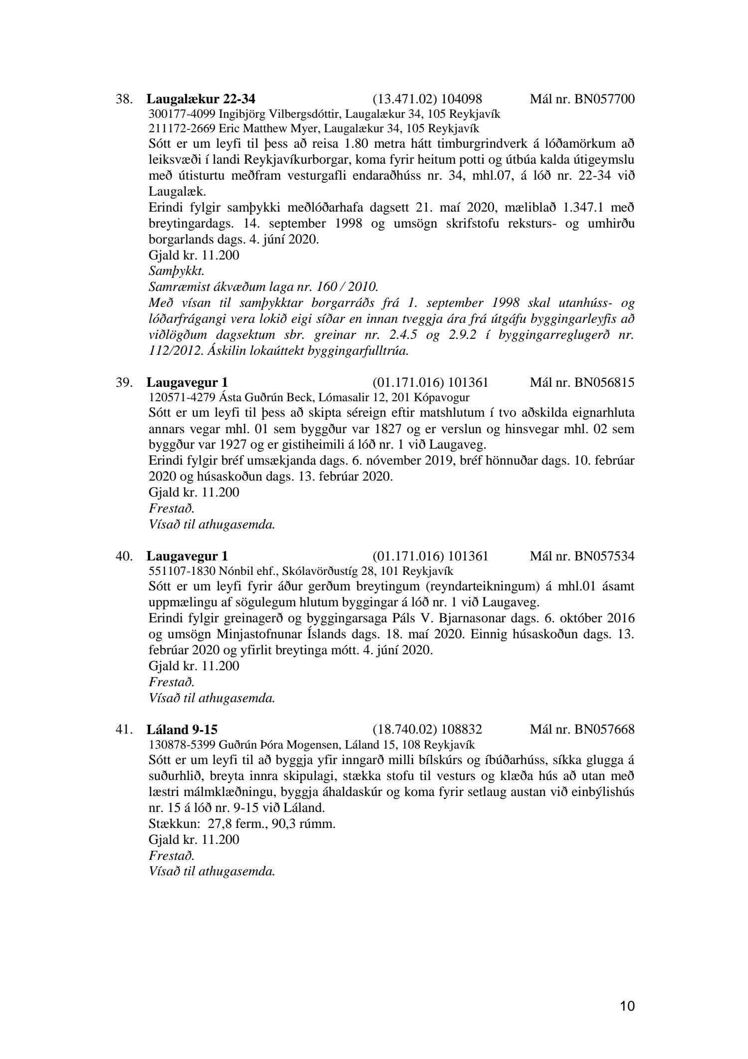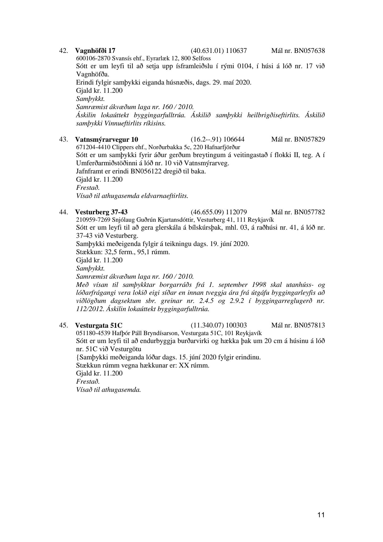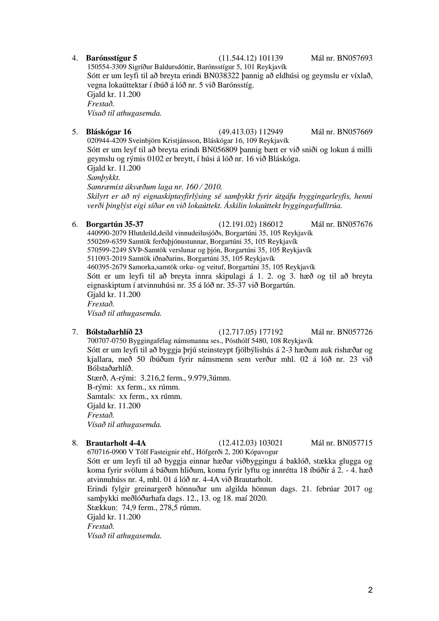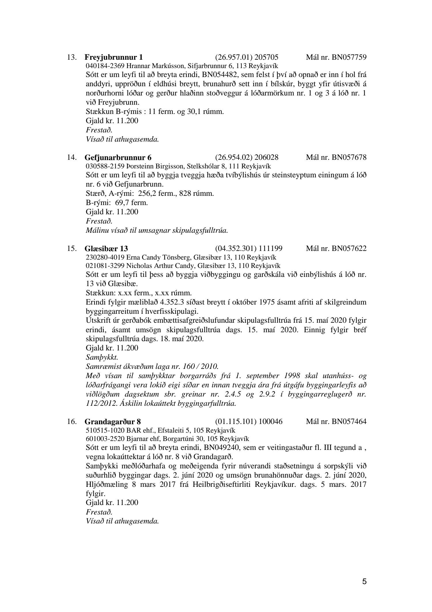 Fylgiskjal með fundargerð þessari er fundargerð afgreiðslufundar byggingarfulltrúa nr. 1071 frá 9. júní 2020, nr. 1072 frá 16. júní 2020 og nr. 1073 frá 23. júní 2020.