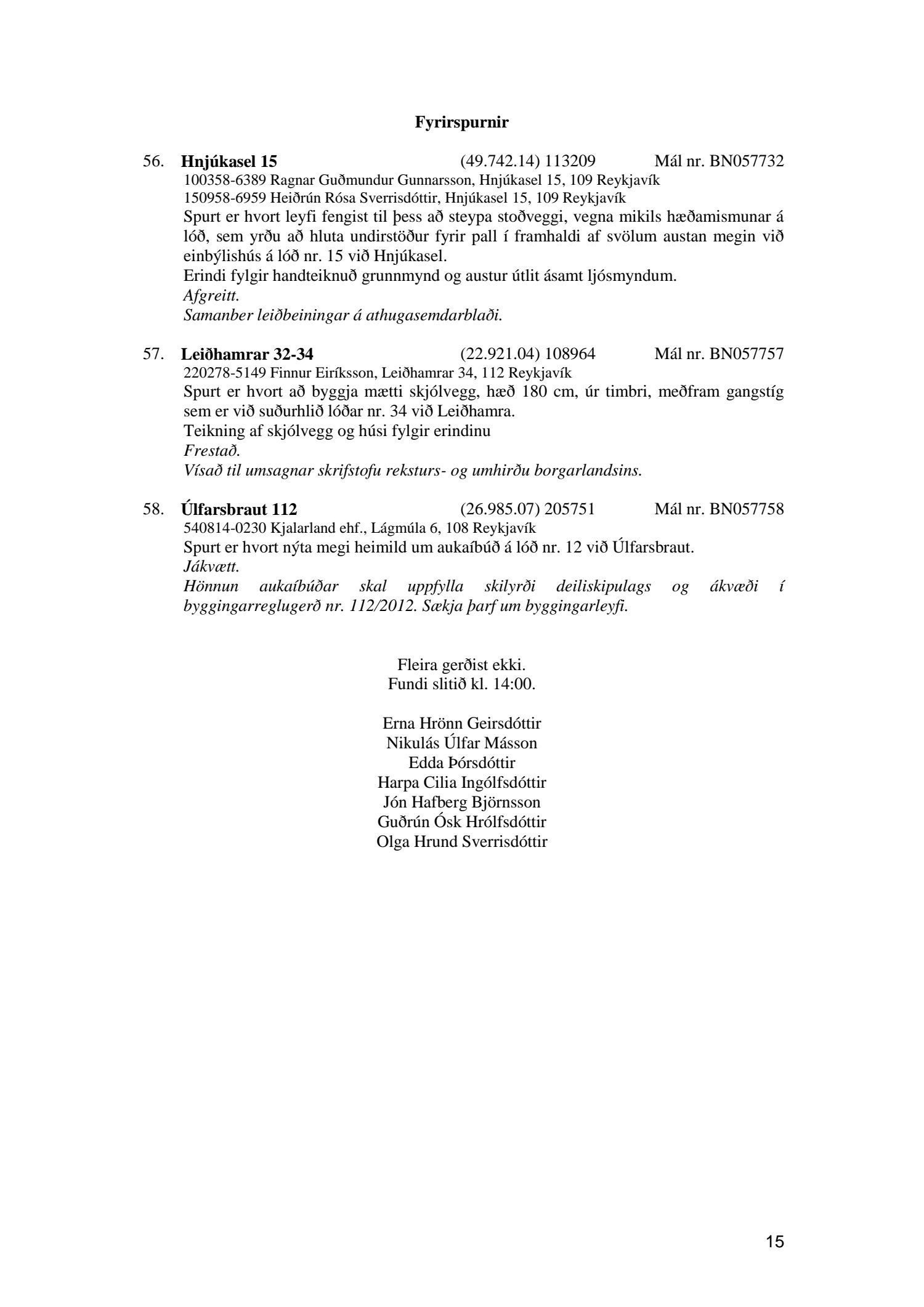 Umhverfis- og skipulagsráð nr. 57