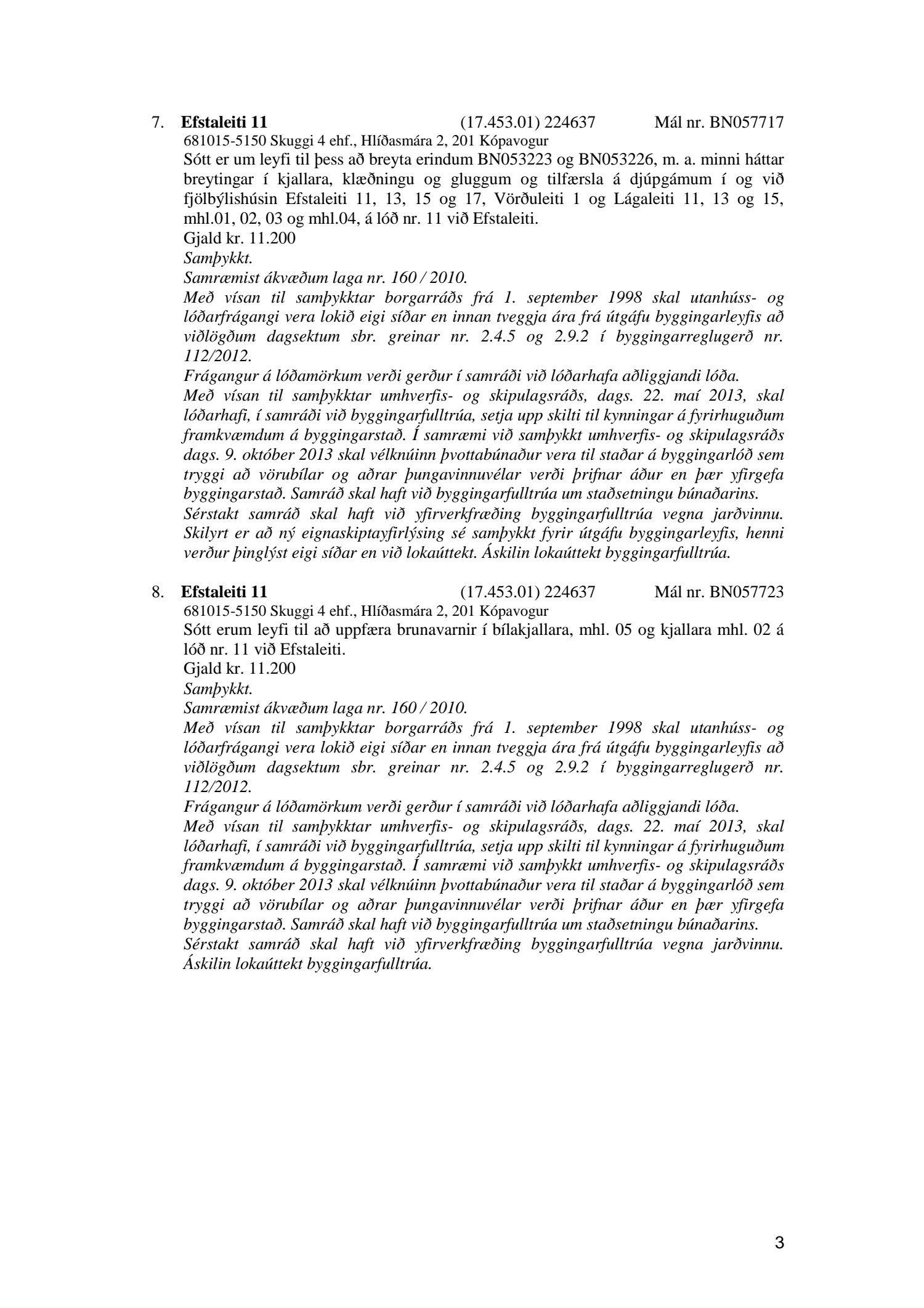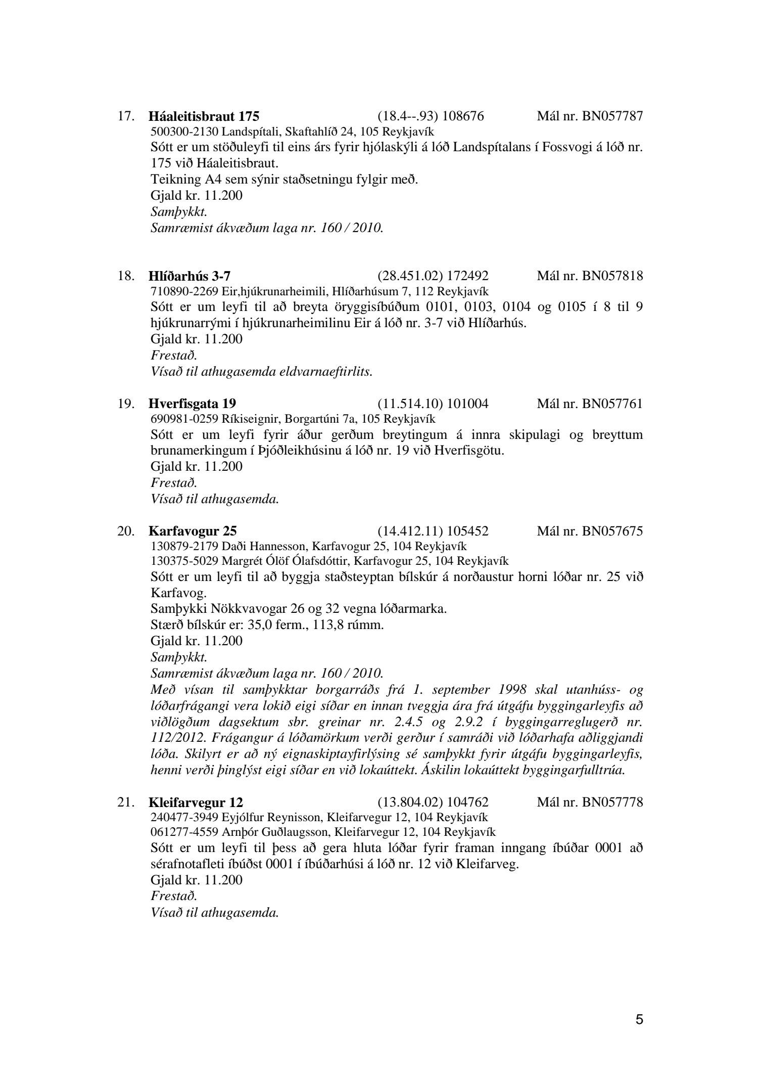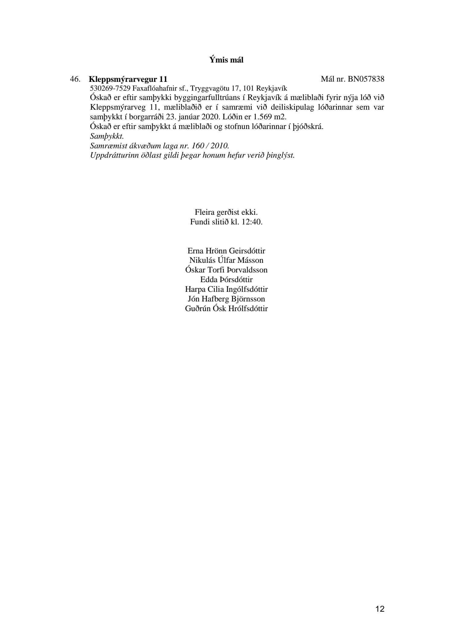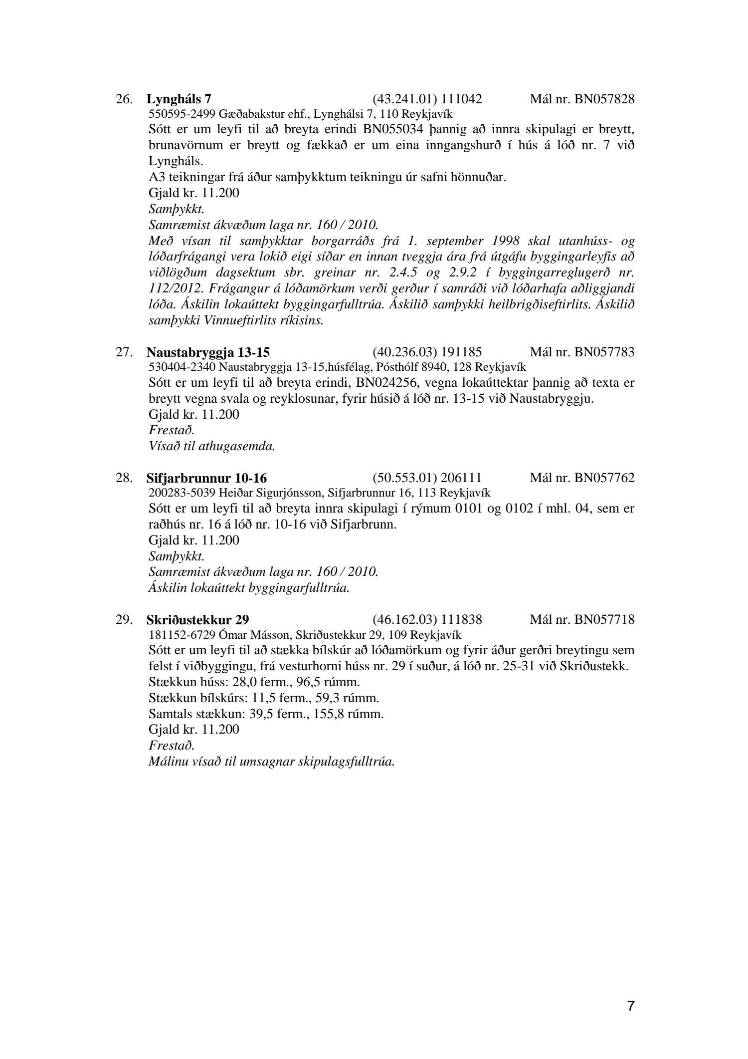 Afgreiðslufundur byggingarfulltrúa, fundargerð