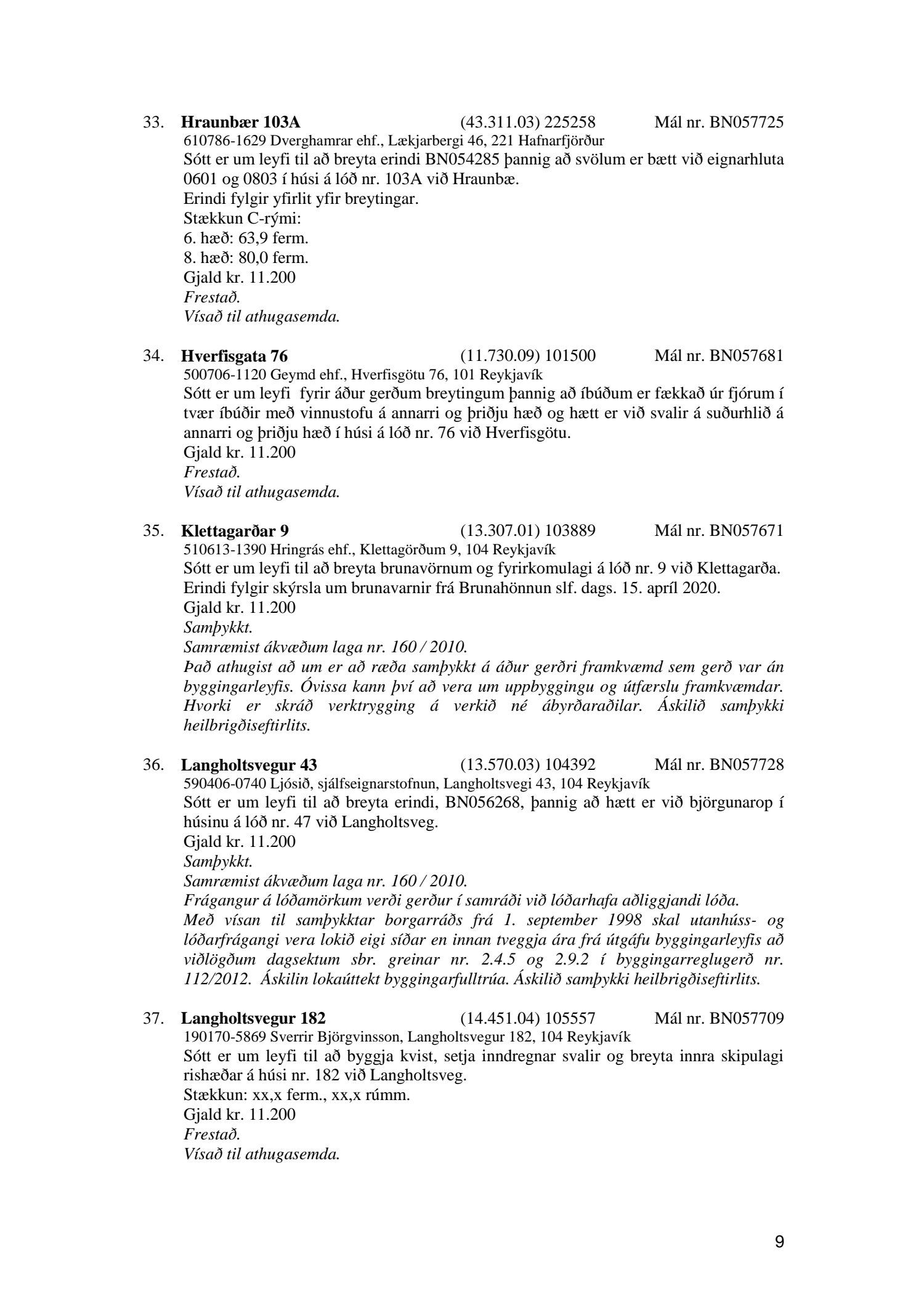 Afgreiðslufundur byggingarfulltrúa dags. 9. júní 2020