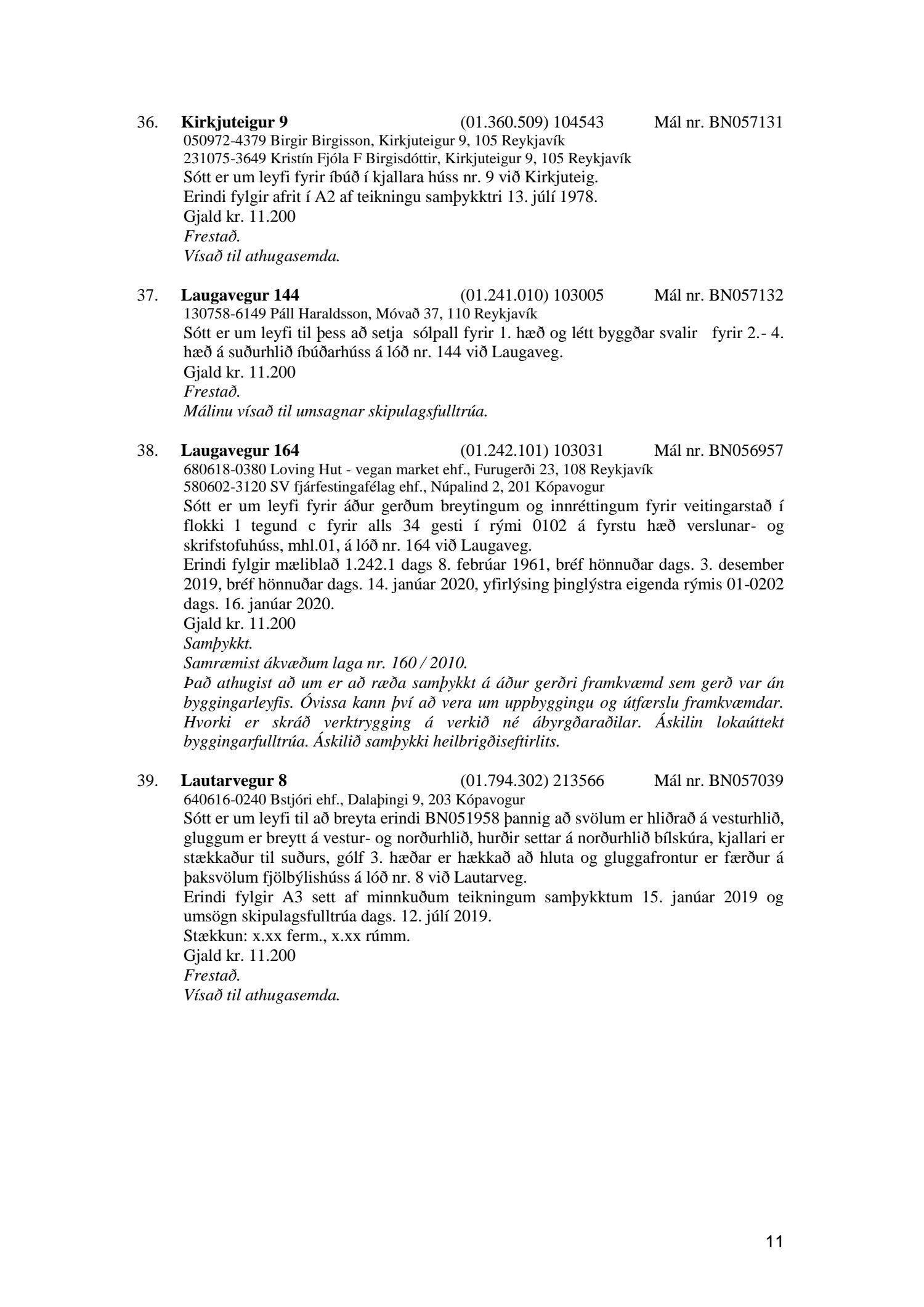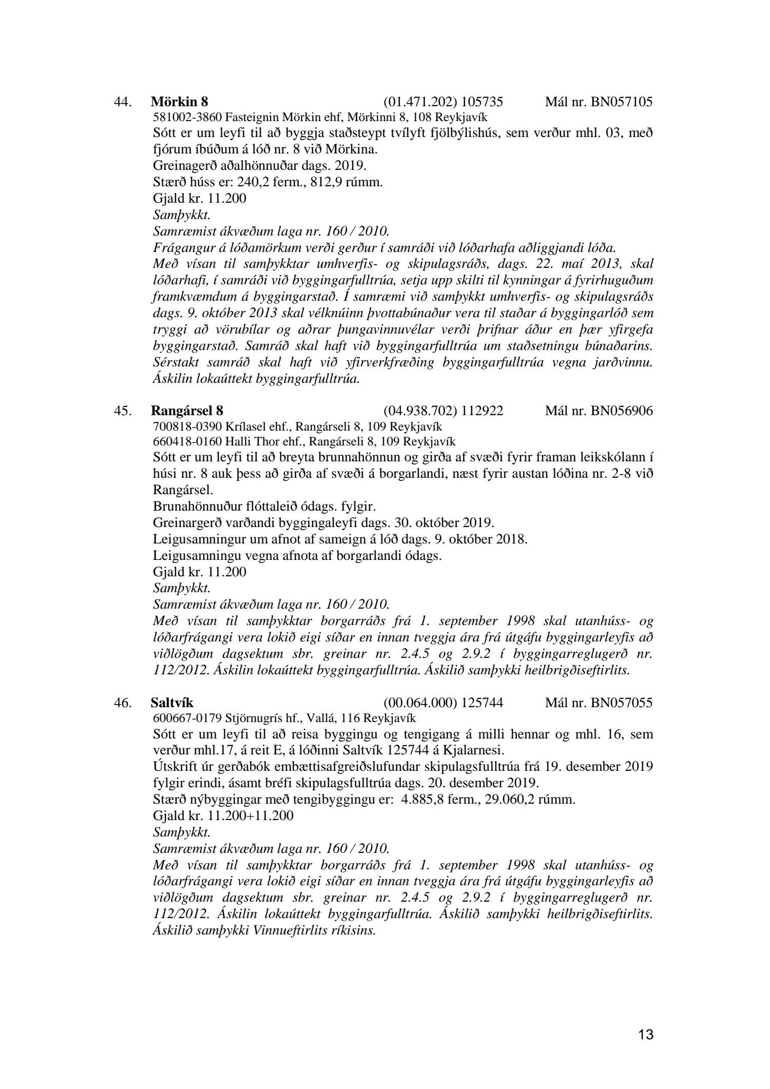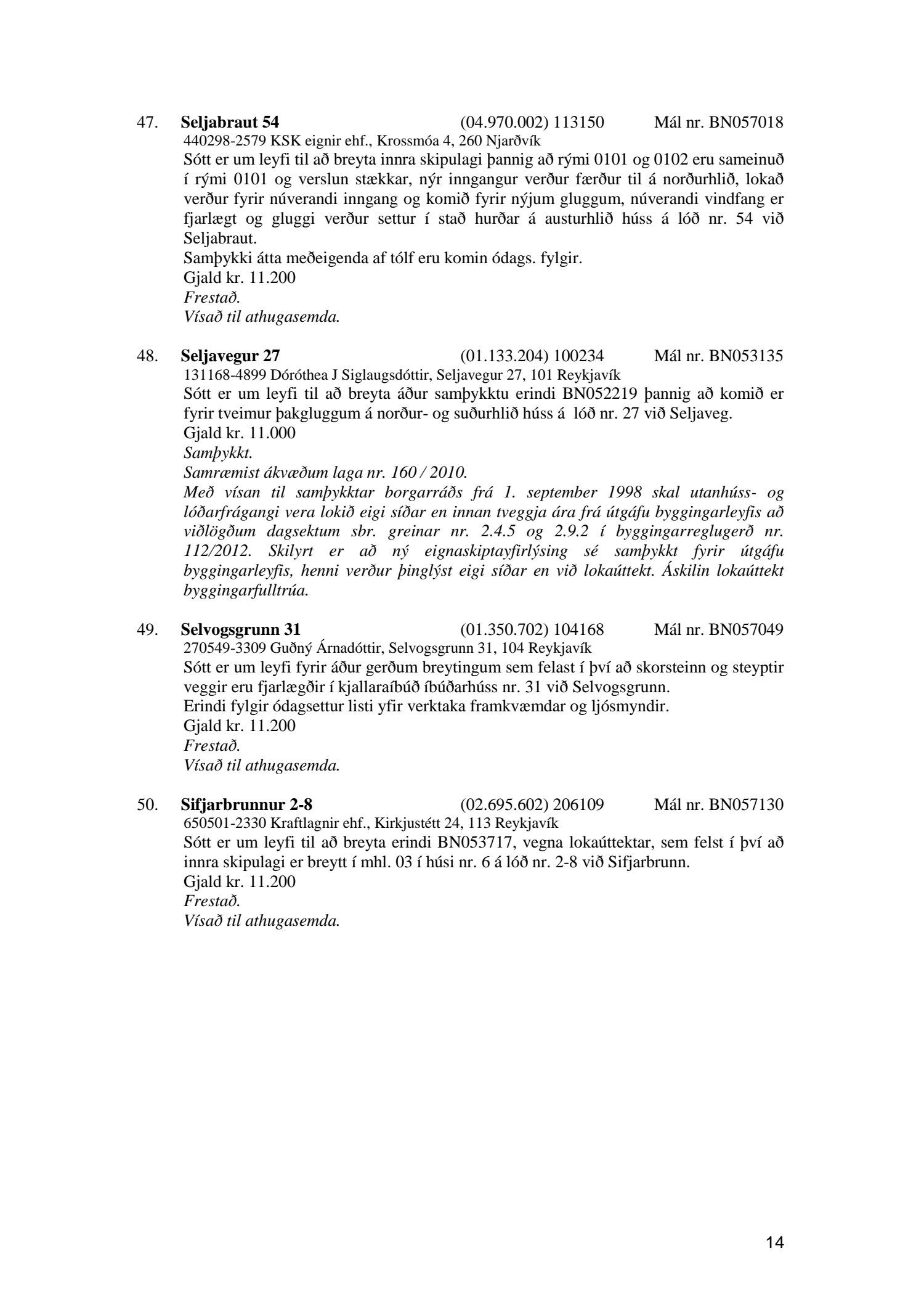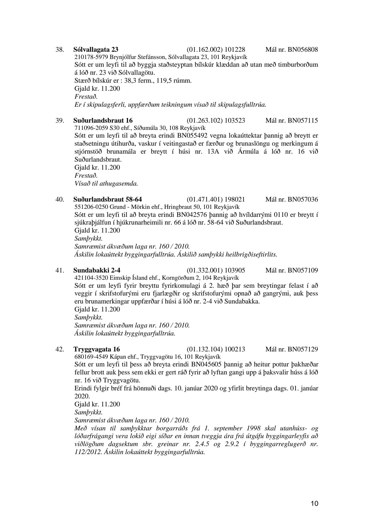 Afgreiðslufundur byggingarfulltrúa, fundargerð