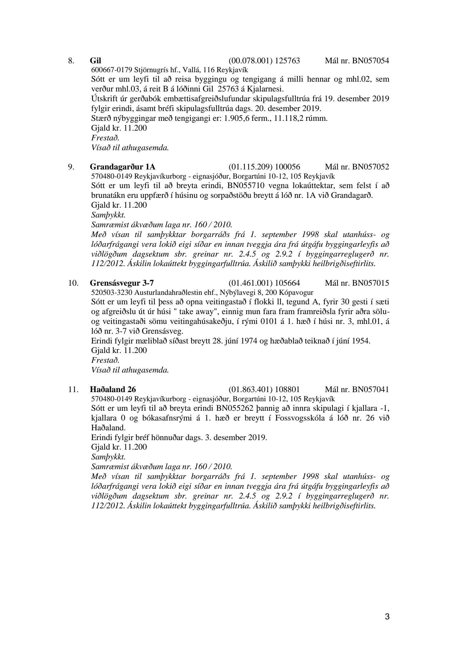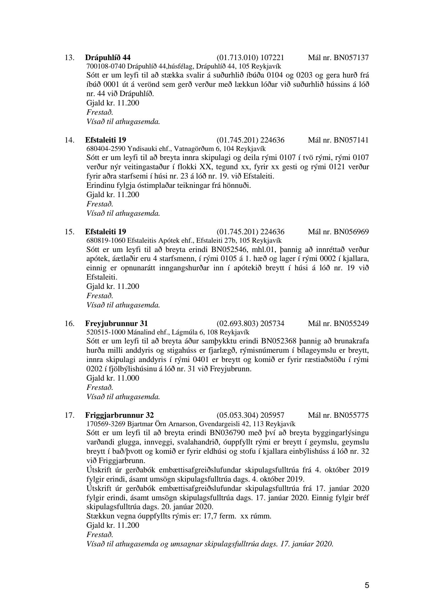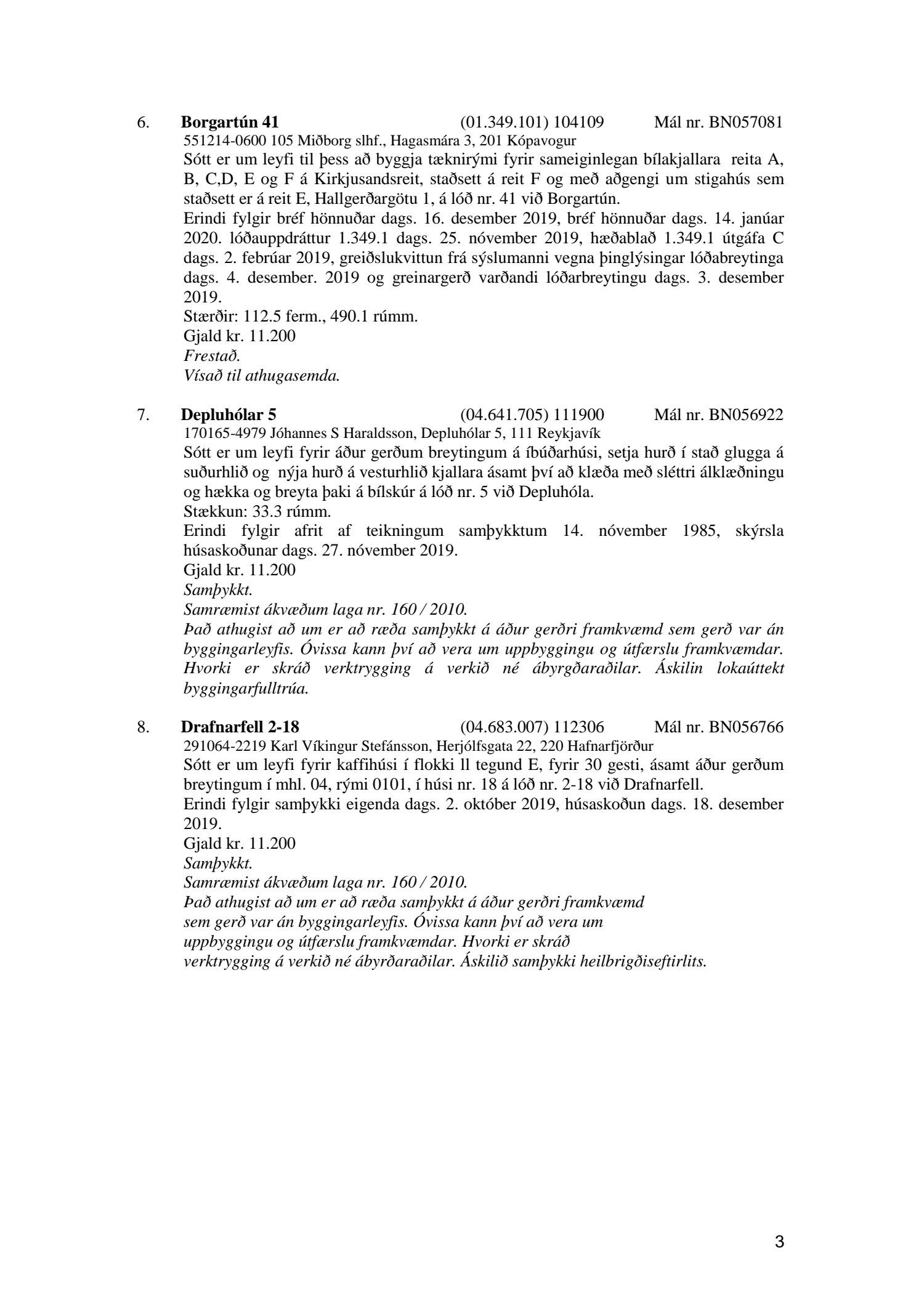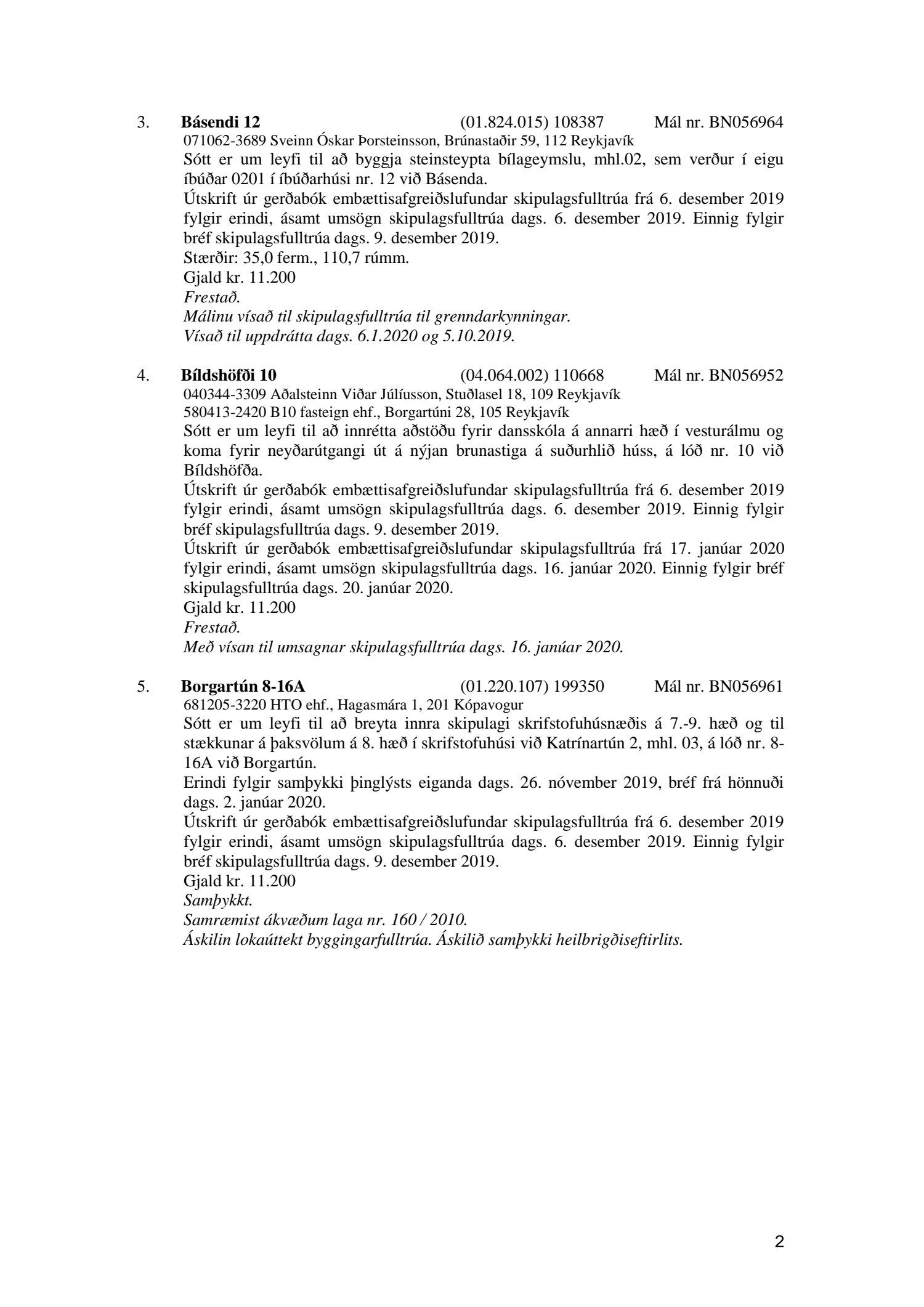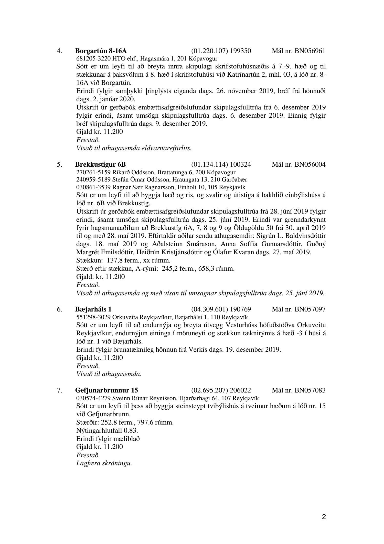 Fylgiskjal með fundargerð þessari er fundargerð afgreiðslufundar byggingarfulltrúa nr. 1051 frá 14. janúar 2020 og fundargerð afgreiðslufundar byggingarfulltrúa nr. 1052 frá 21. janúar 2020.