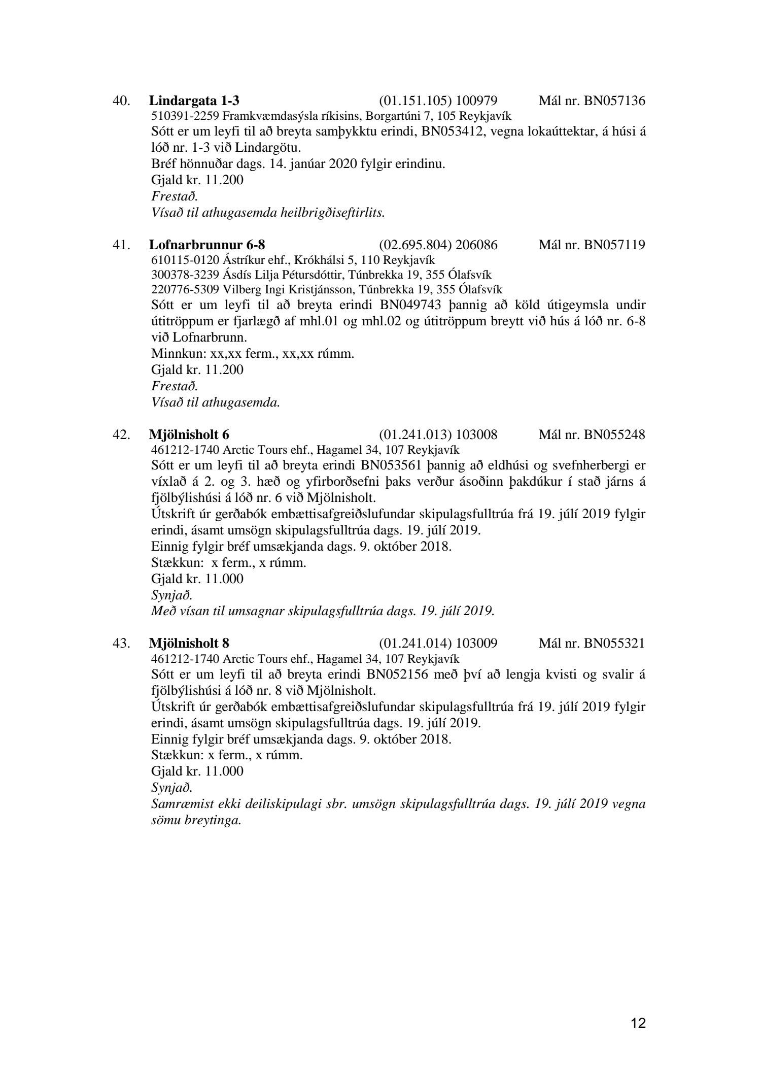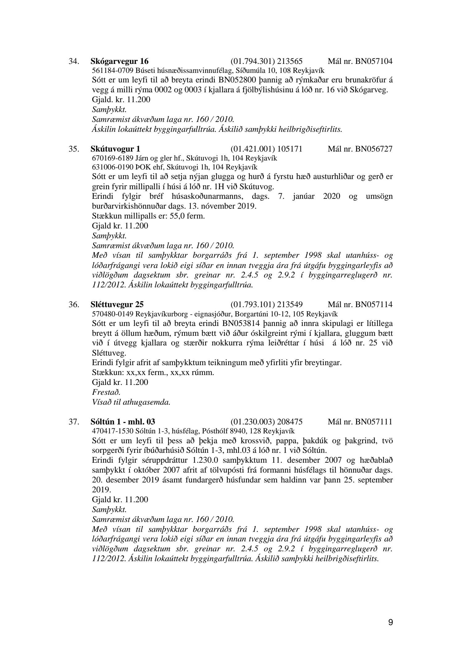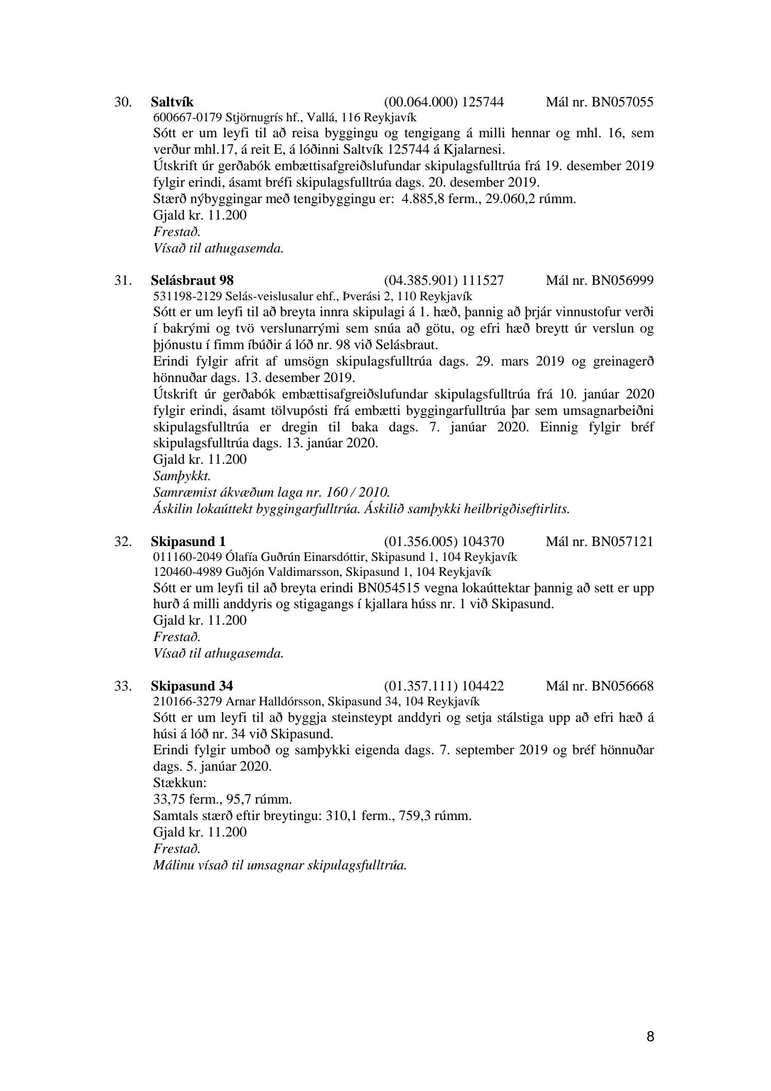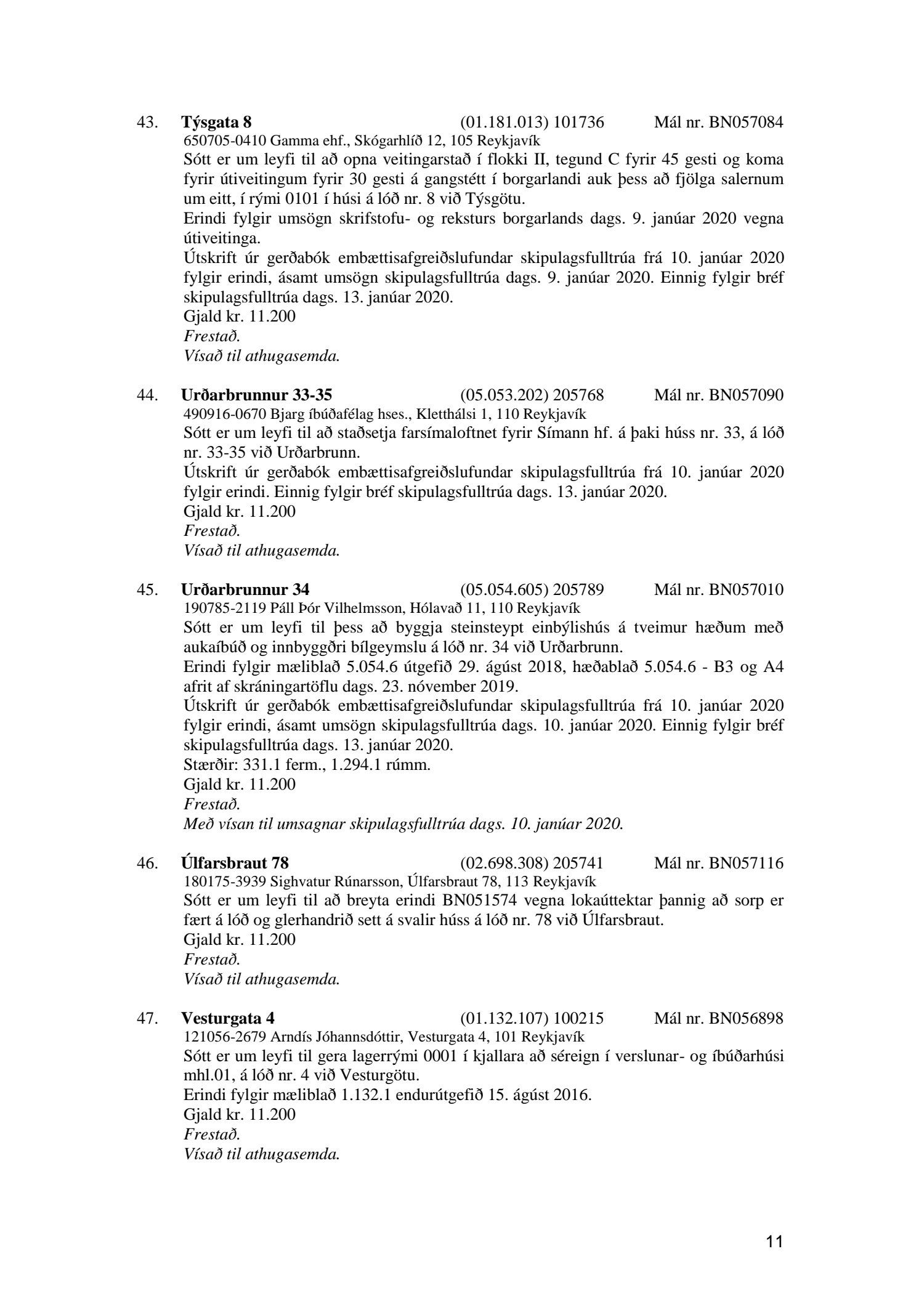Fylgiskjal með fundargerð þessari er fundargerð afgreiðslufundar byggingarfulltrúa nr. 1051 frá 14. janúar 2020 og fundargerð afgreiðslufundar byggingarfulltrúa nr. 1052 frá 21. janúar 2020.