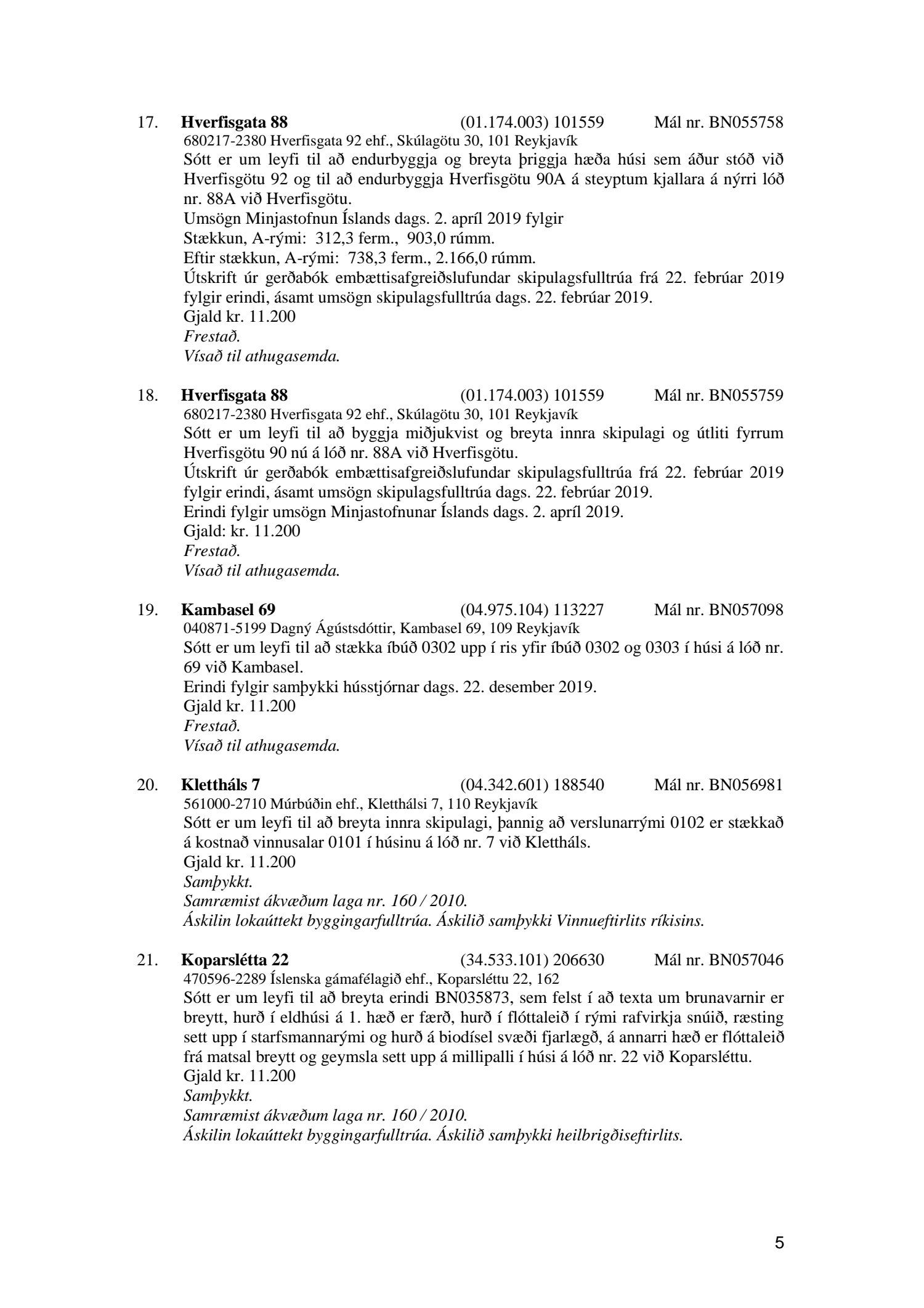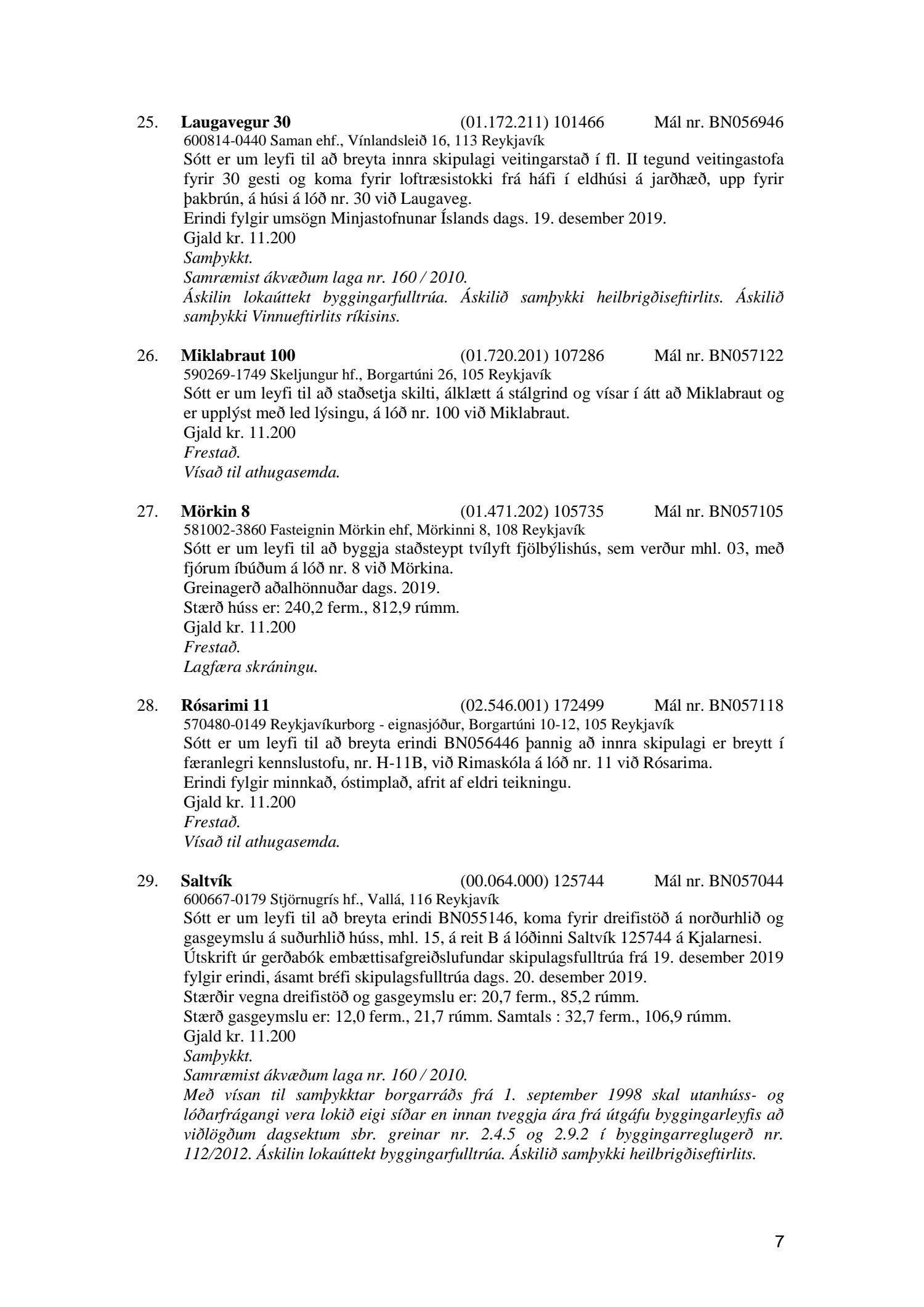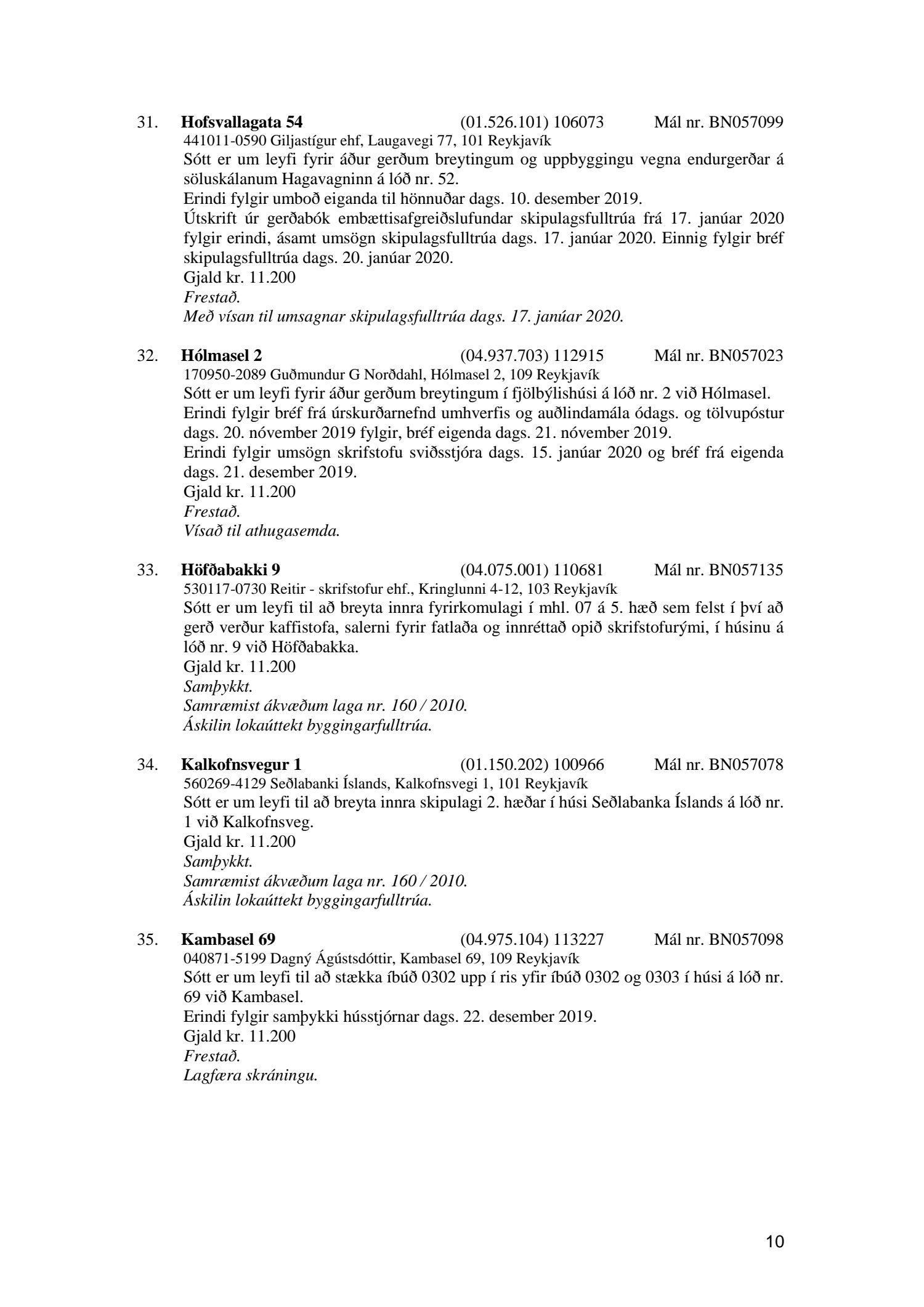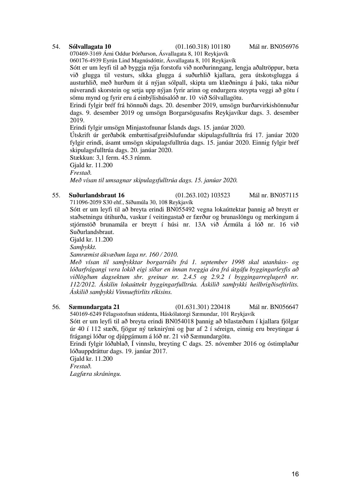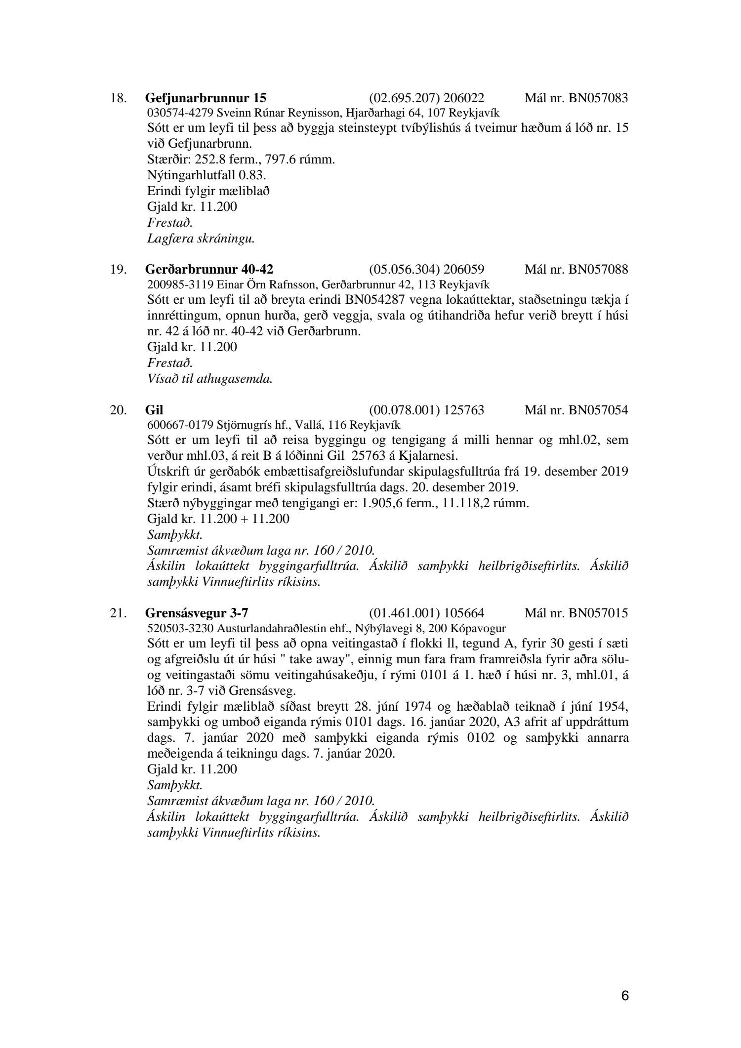 Fylgiskjal með fundargerð þessari er fundargerð afgreiðslufundar byggingarfulltrúa nr. 1051 frá 14. janúar 2020 og fundargerð afgreiðslufundar byggingarfulltrúa nr. 1052 frá 21. janúar 2020.