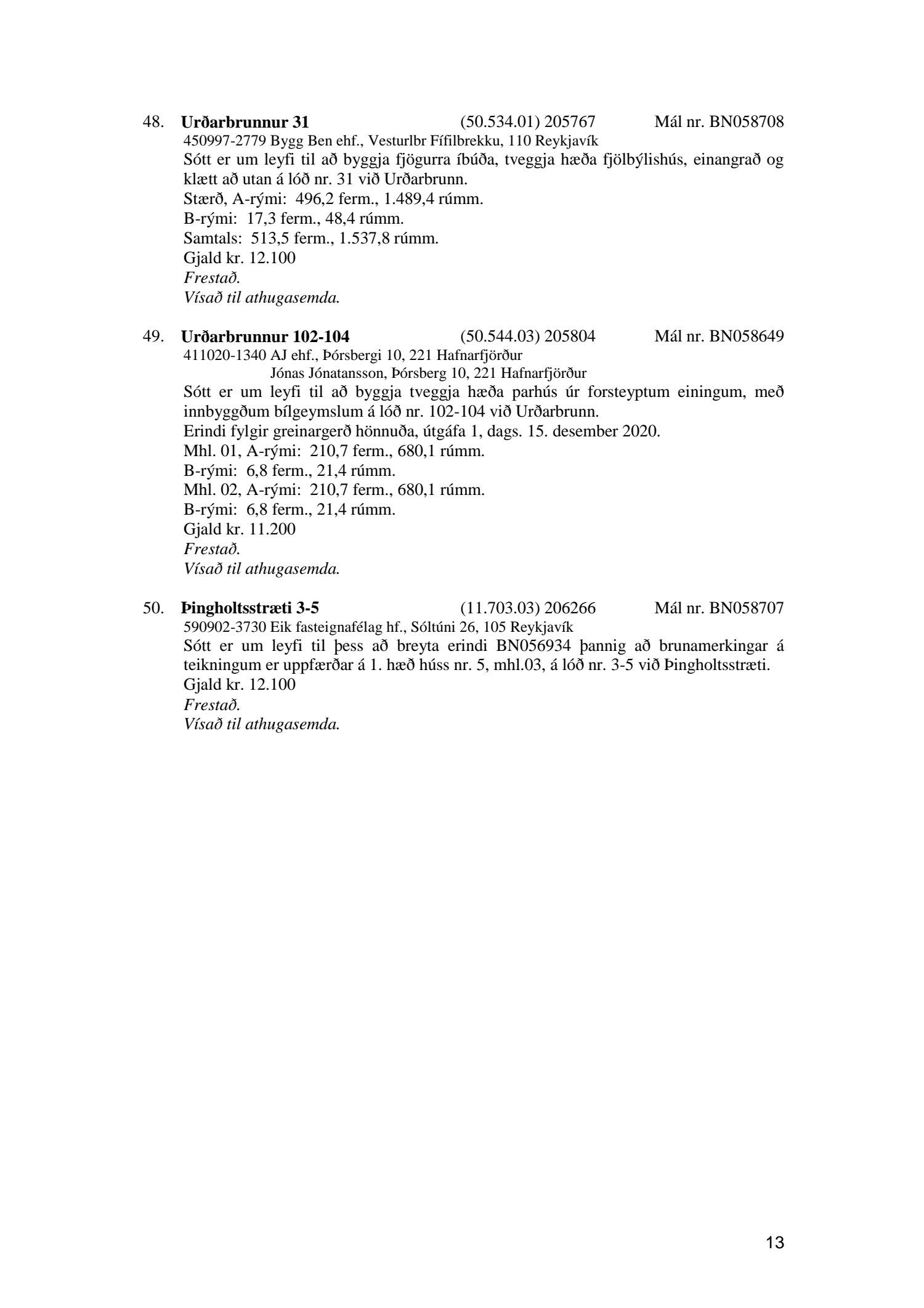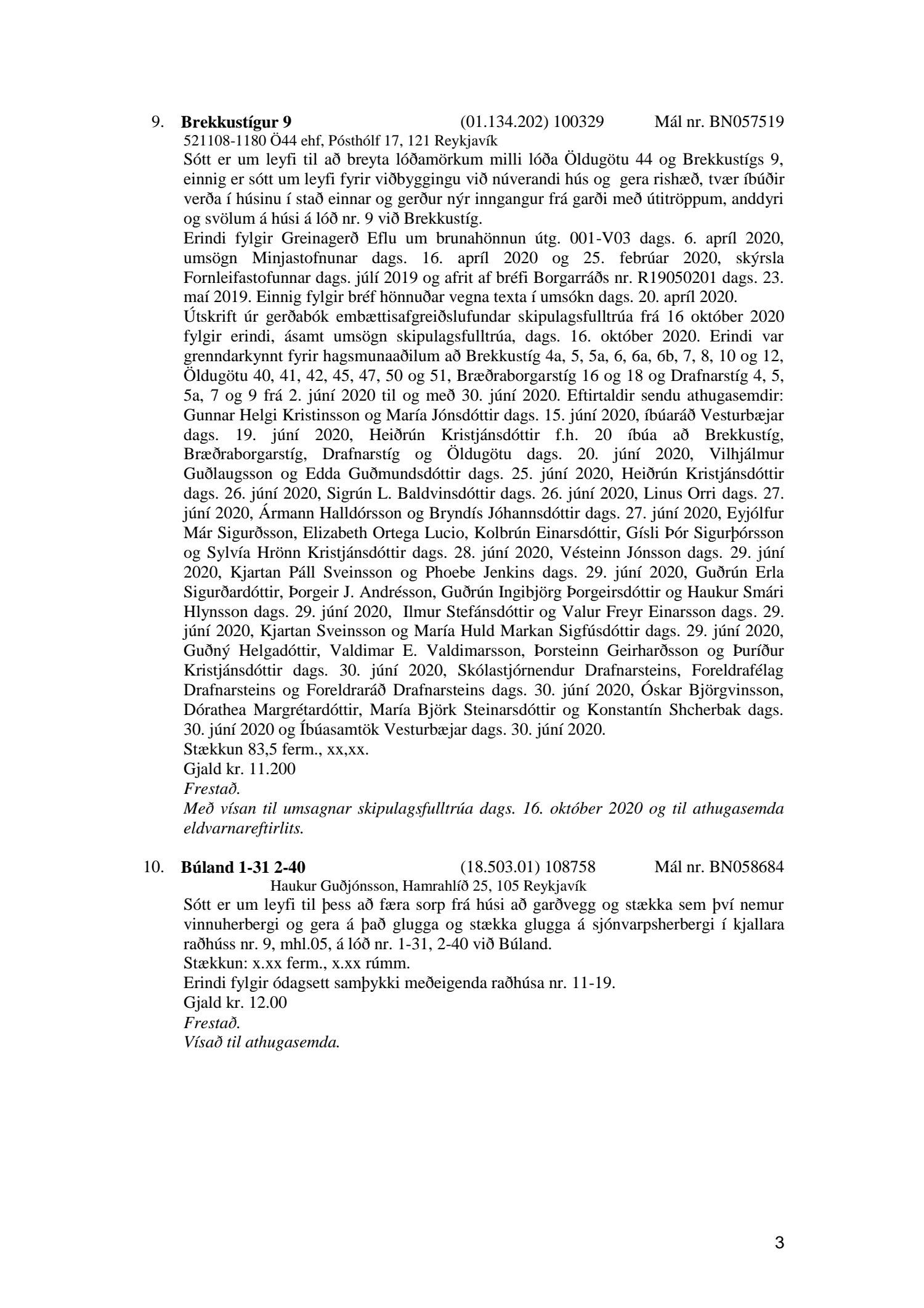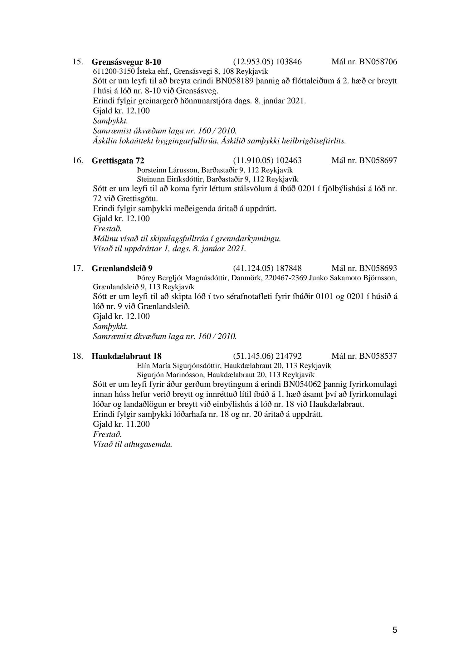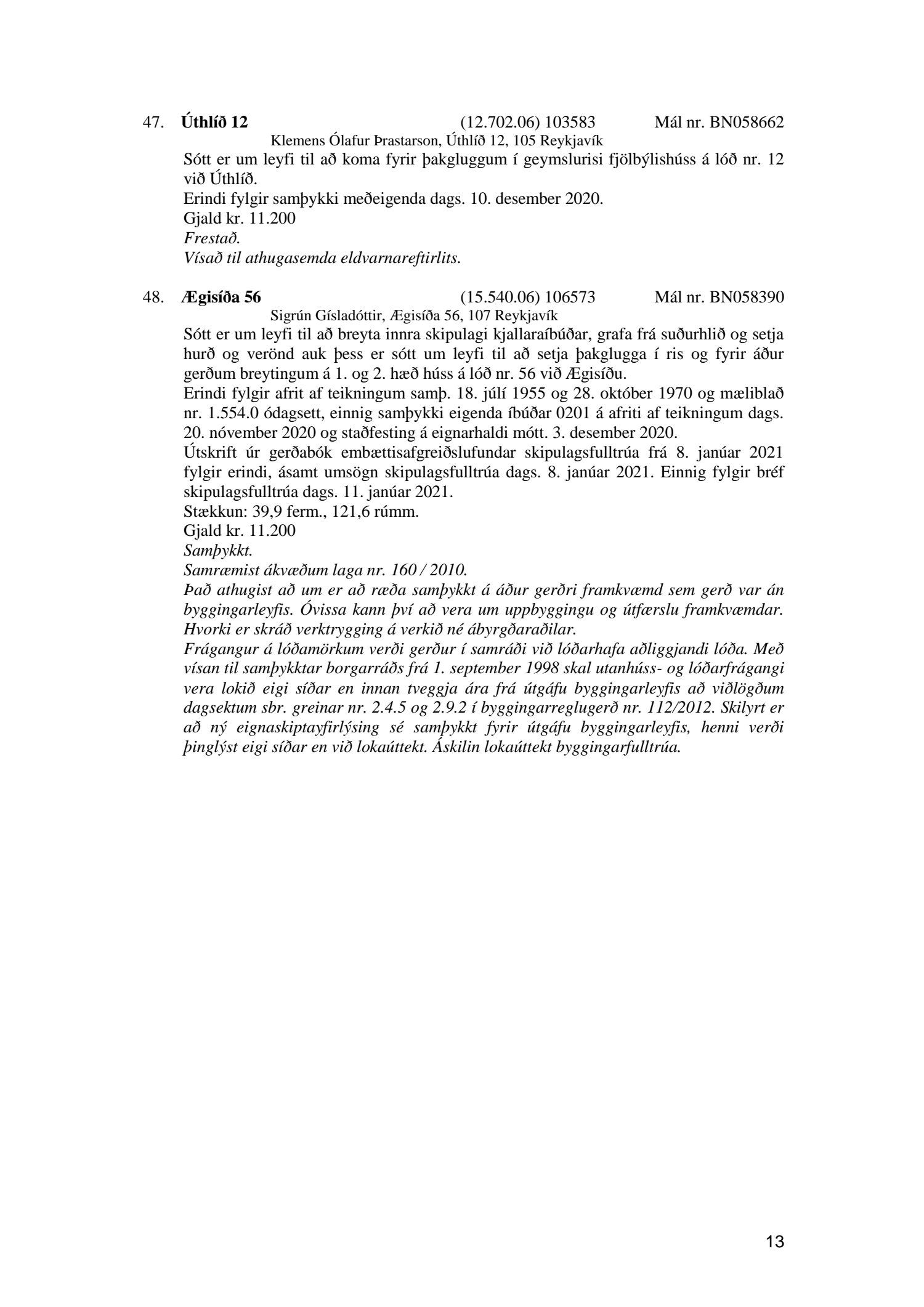 Fylgiskjal með fundargerð þessari eru fundargerðir afgreiðslufundar byggingarfulltrúa nr. 1098 frá 12. janúar 2021 og nr. 1099 frá 19. janúar 2021.
