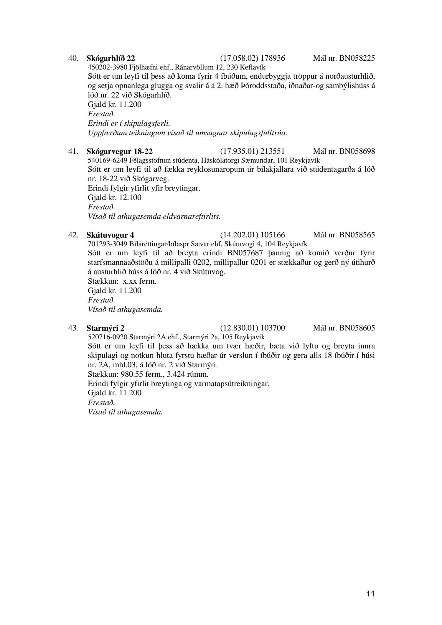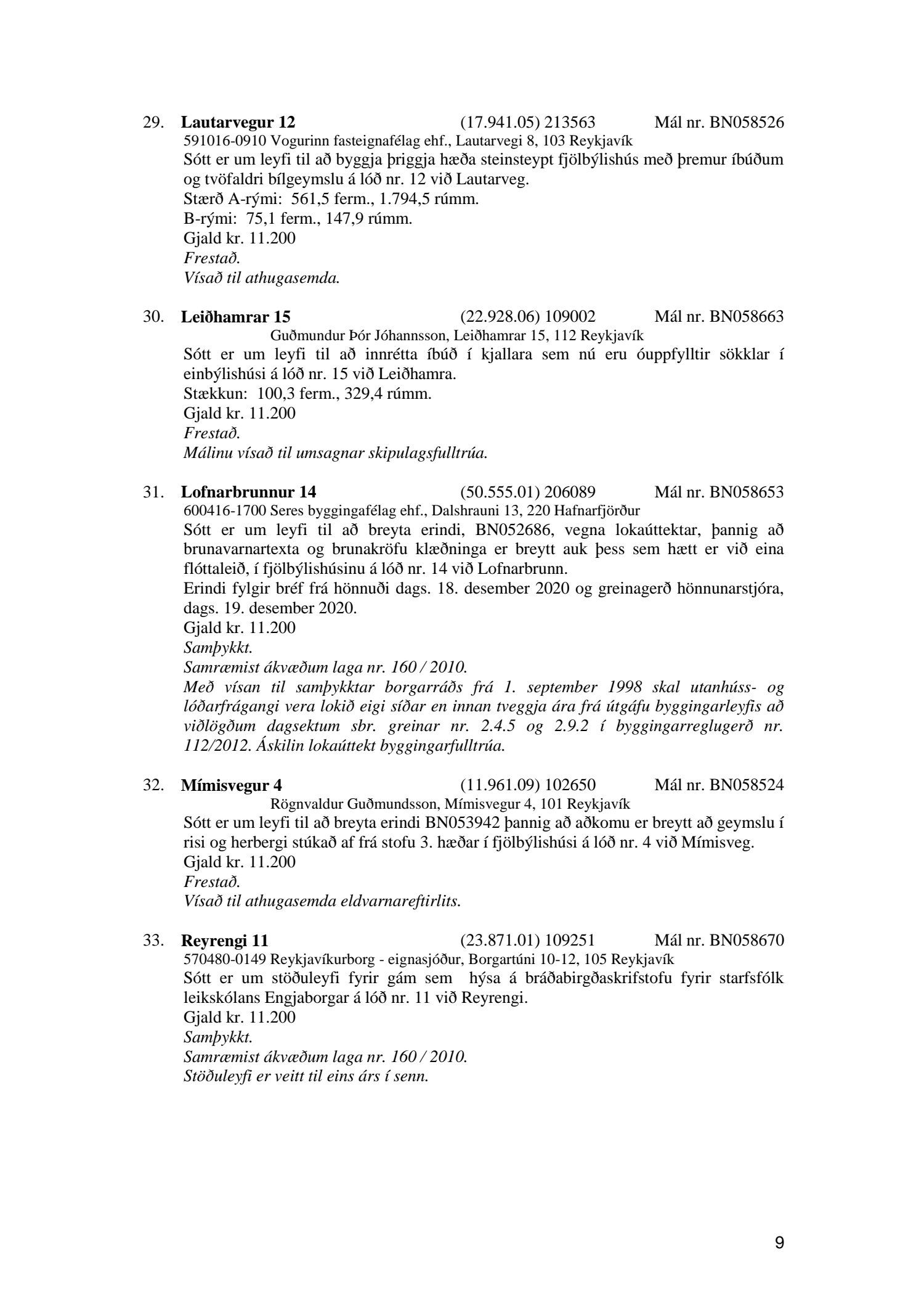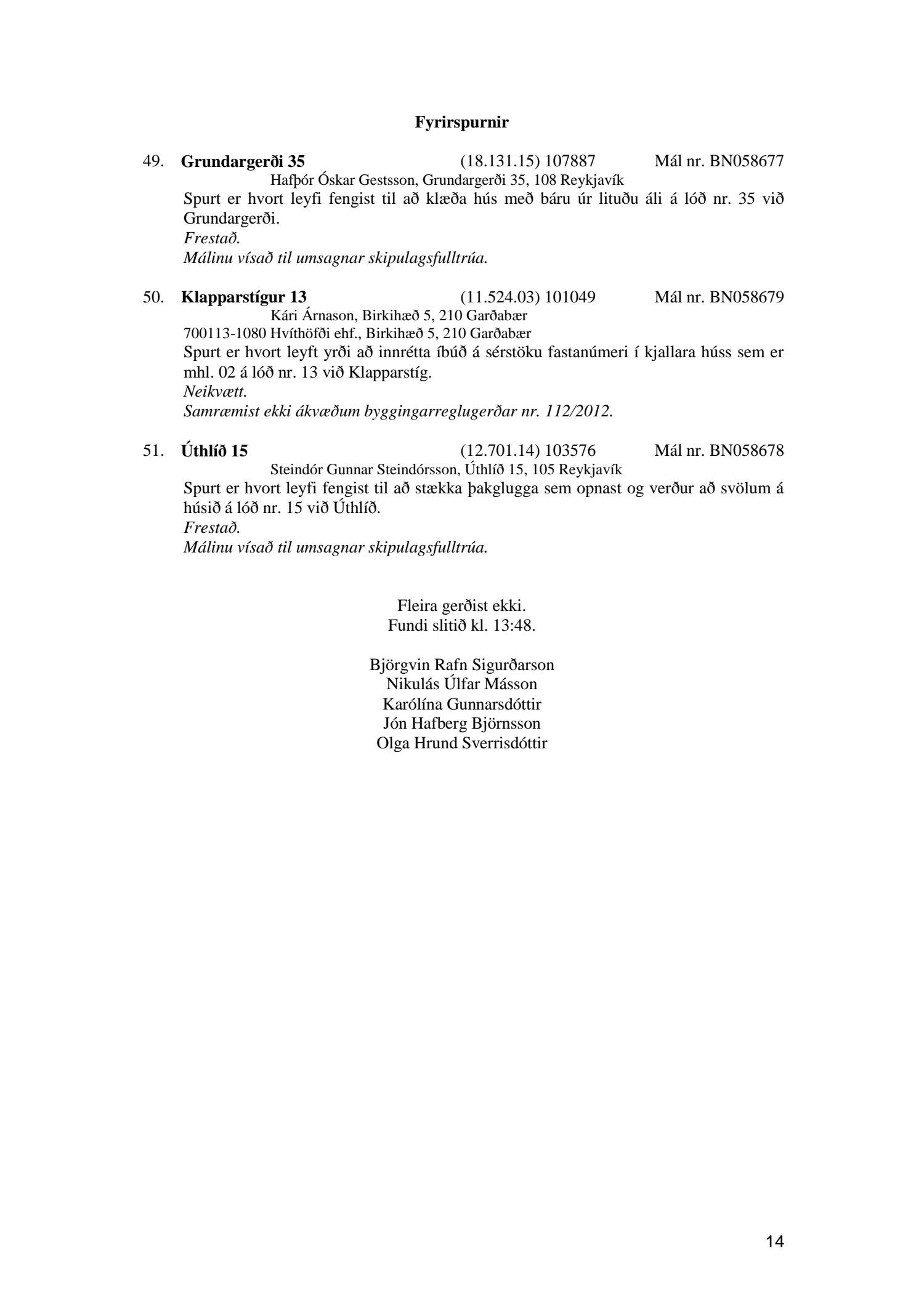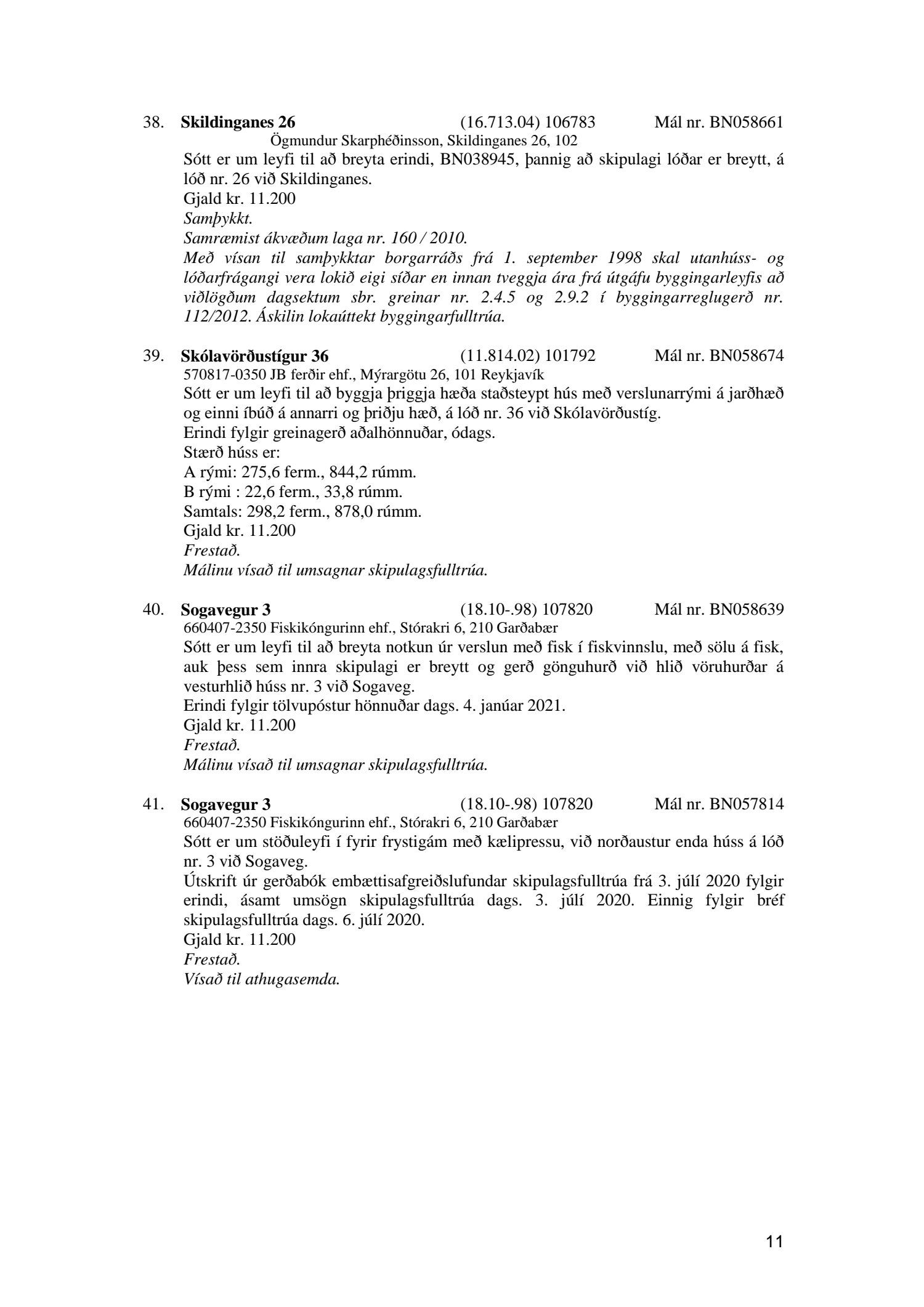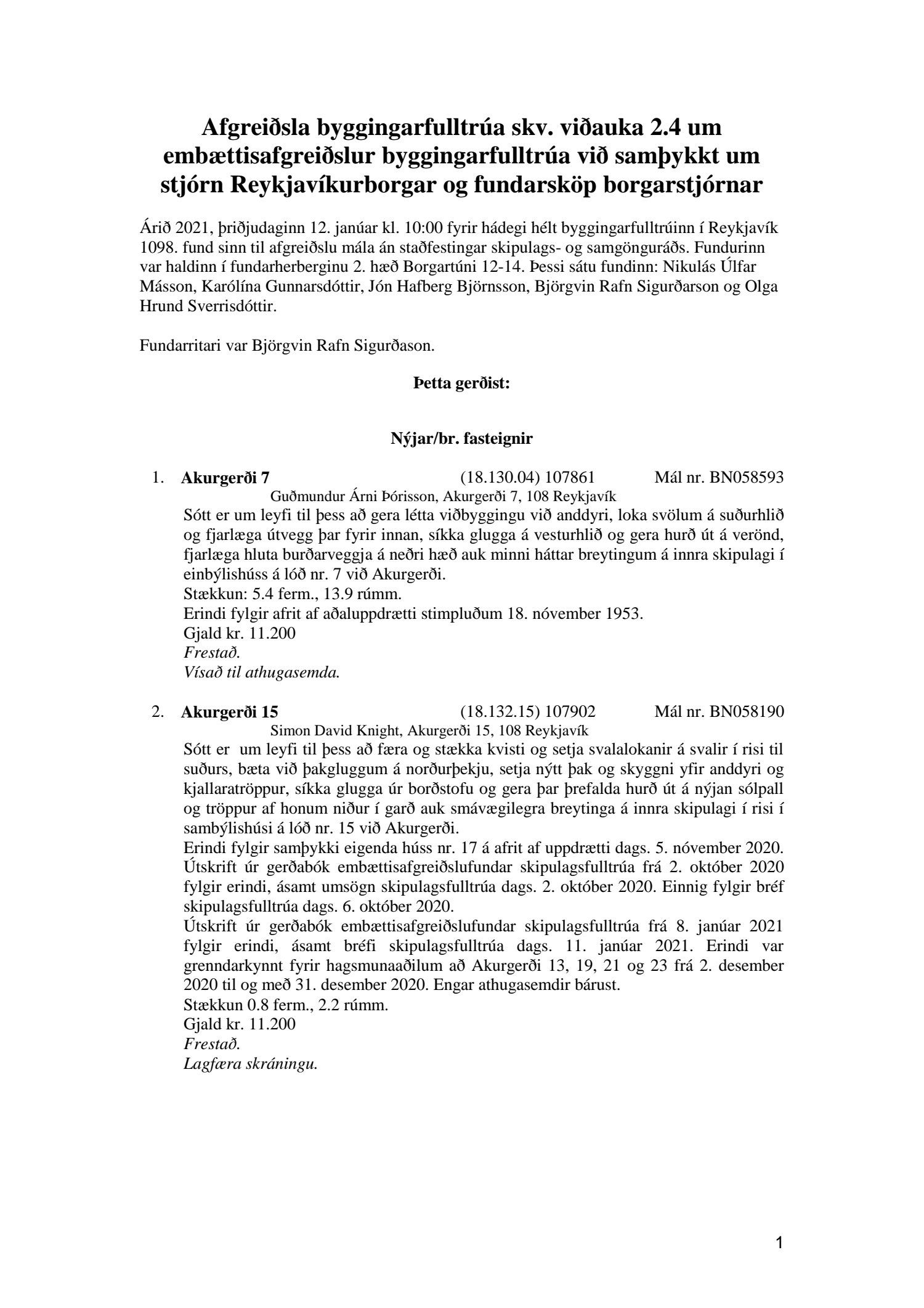 Afgreiðslufundur byggingarfulltrúa, fundargerð