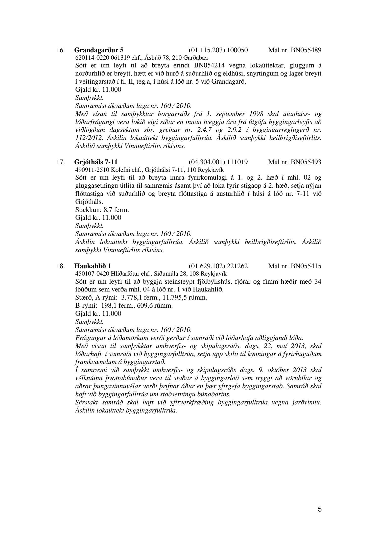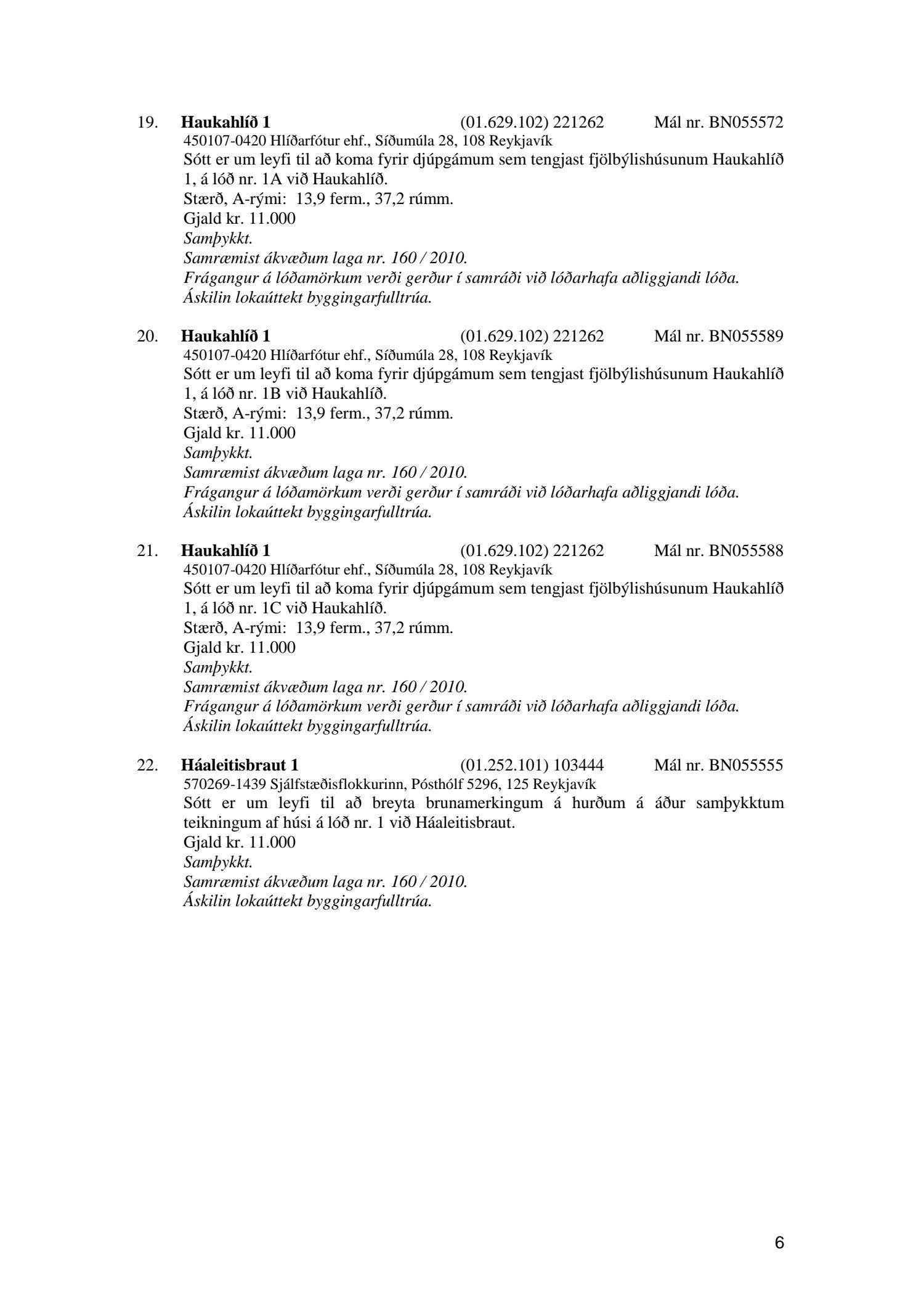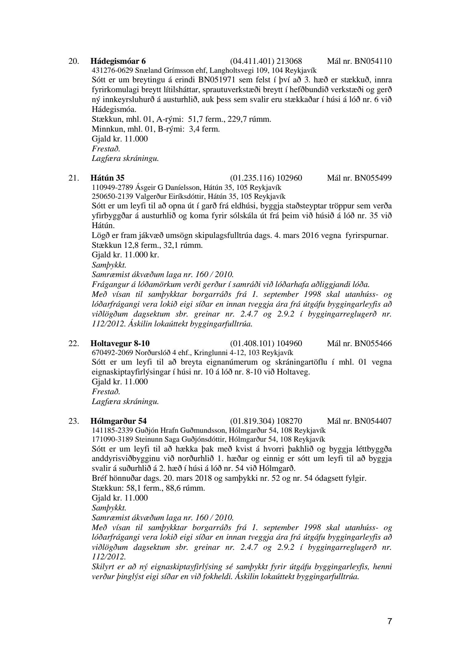 Afgreiðslufundur byggingarfulltrúa, fundargerð