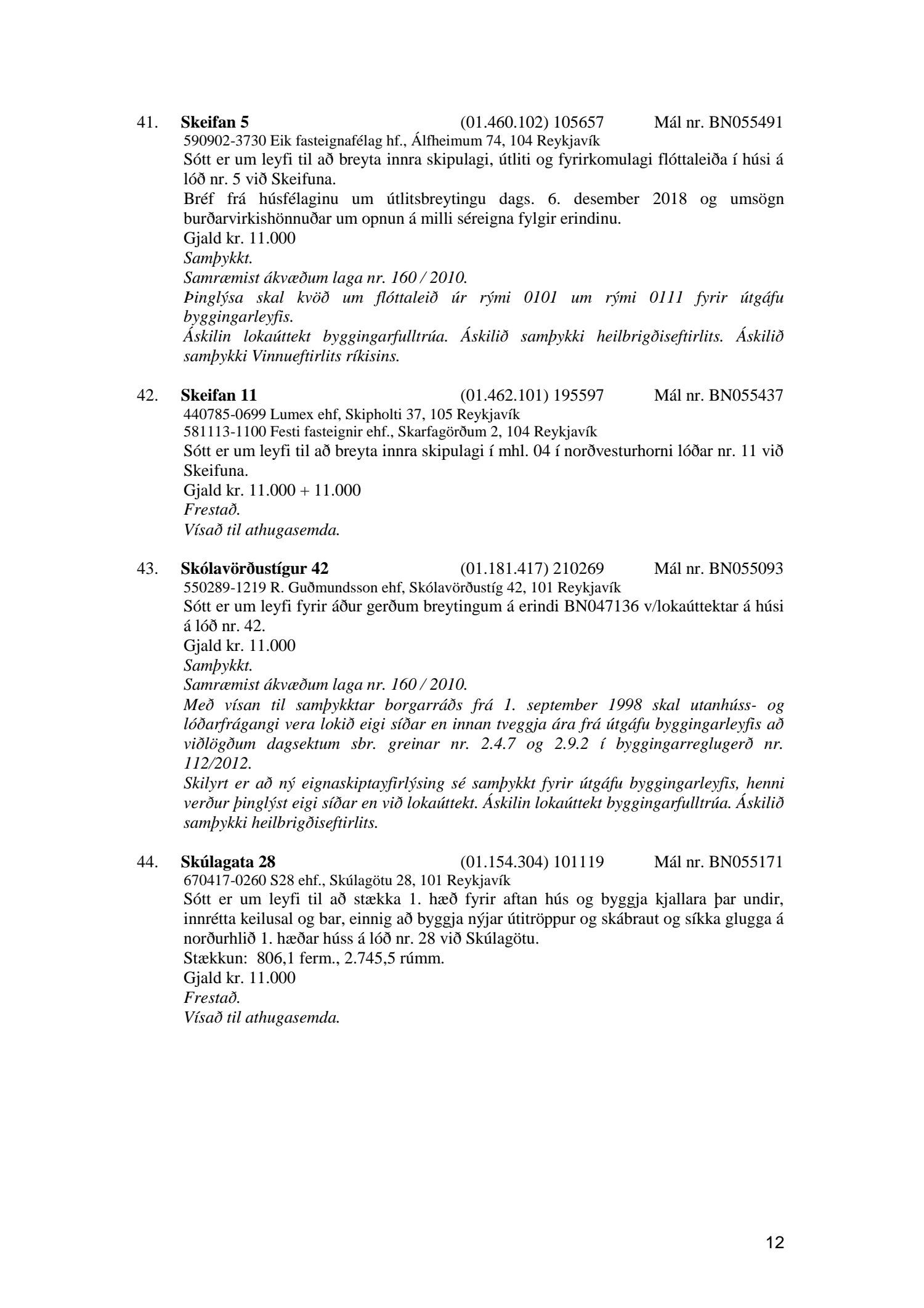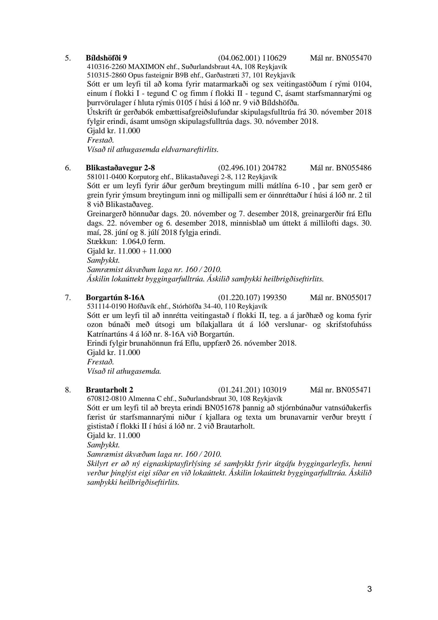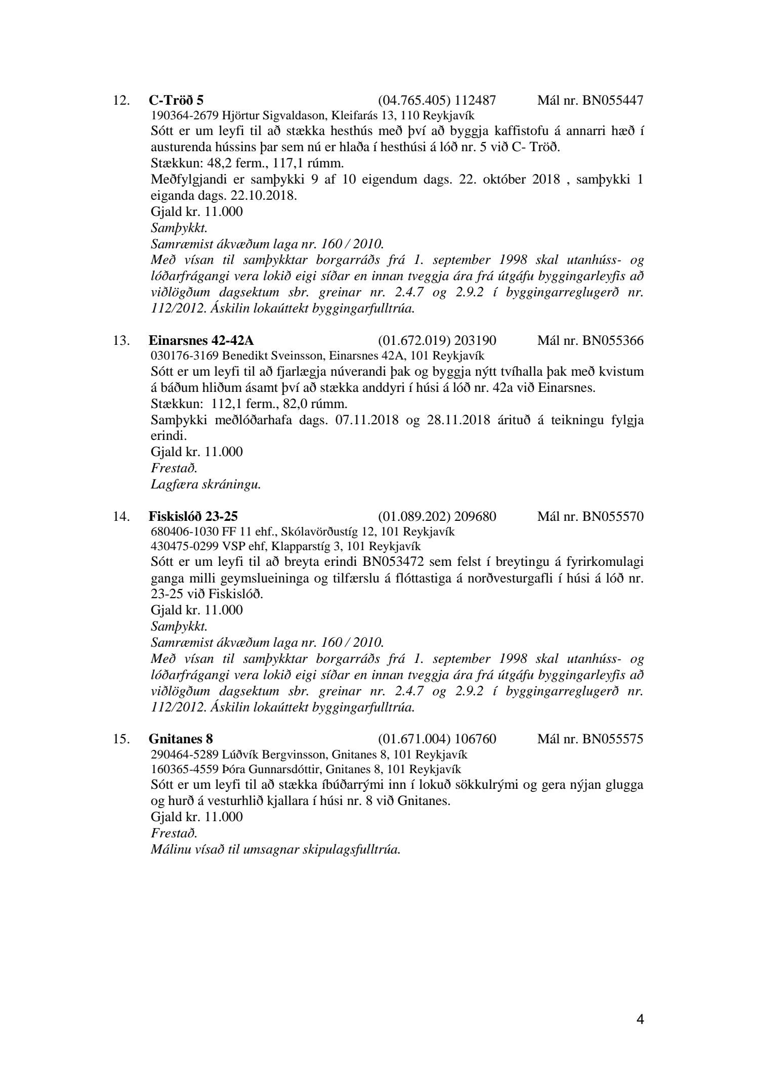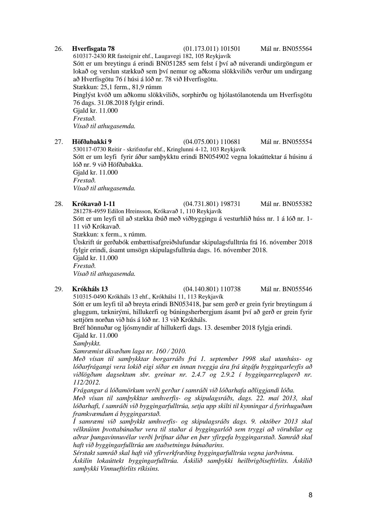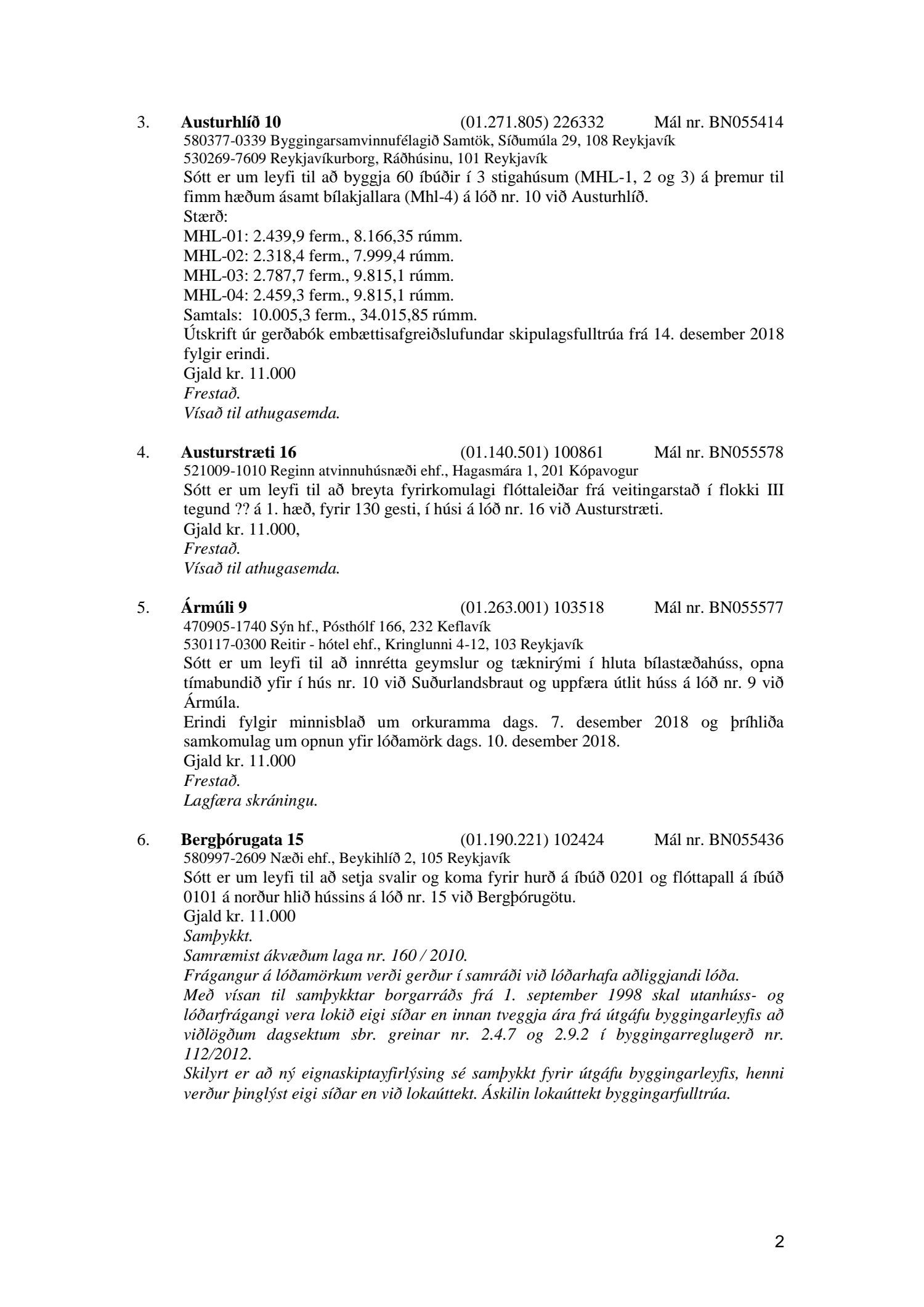 Afgreiðslufundir byggingarfulltrúa 11. og 18. desember 2018