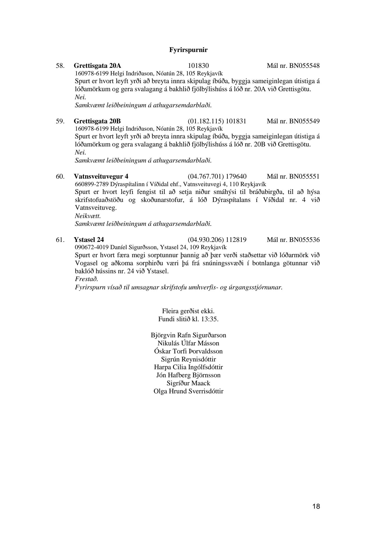 Umhverfis- og skipulagsráð nr. 61