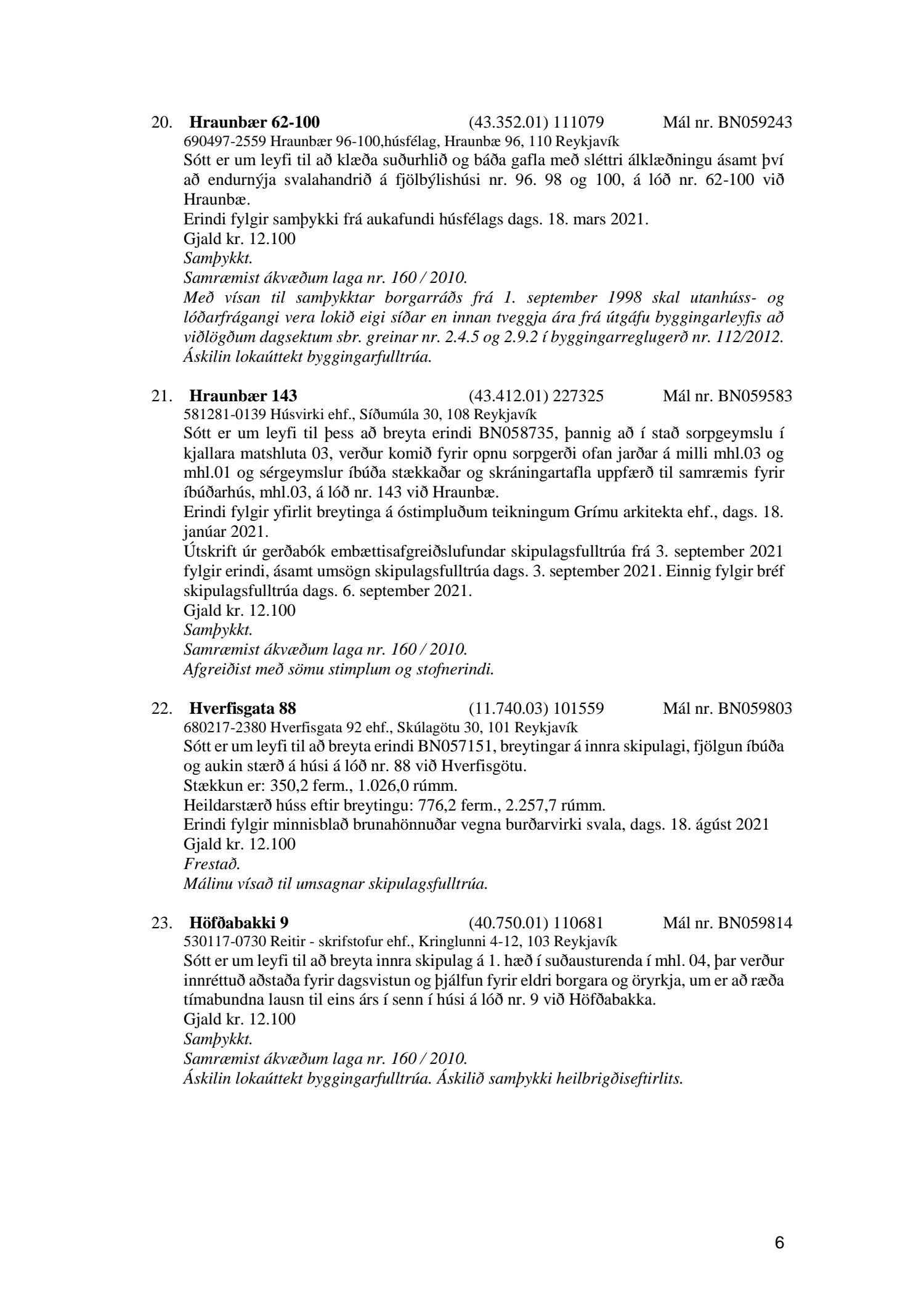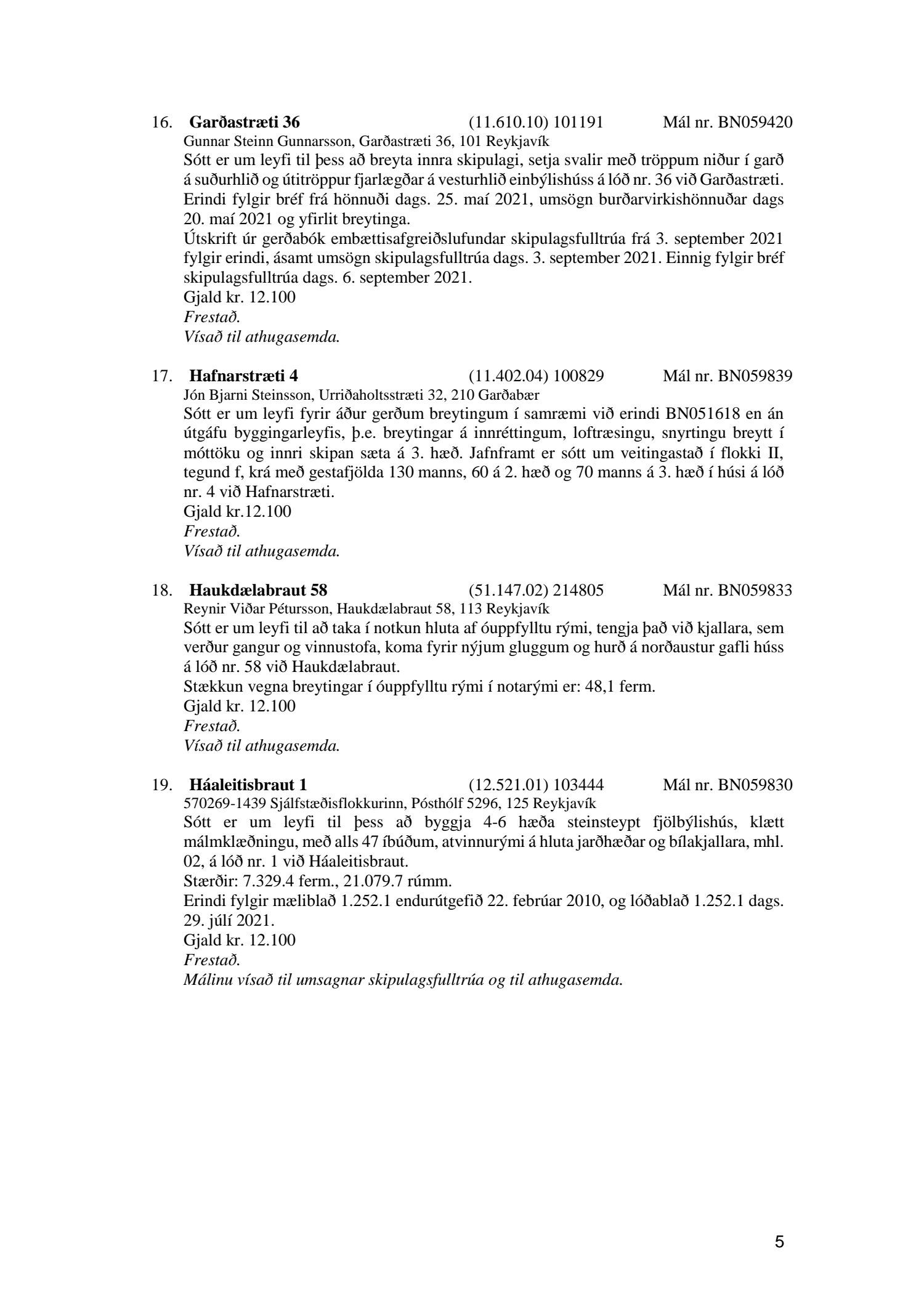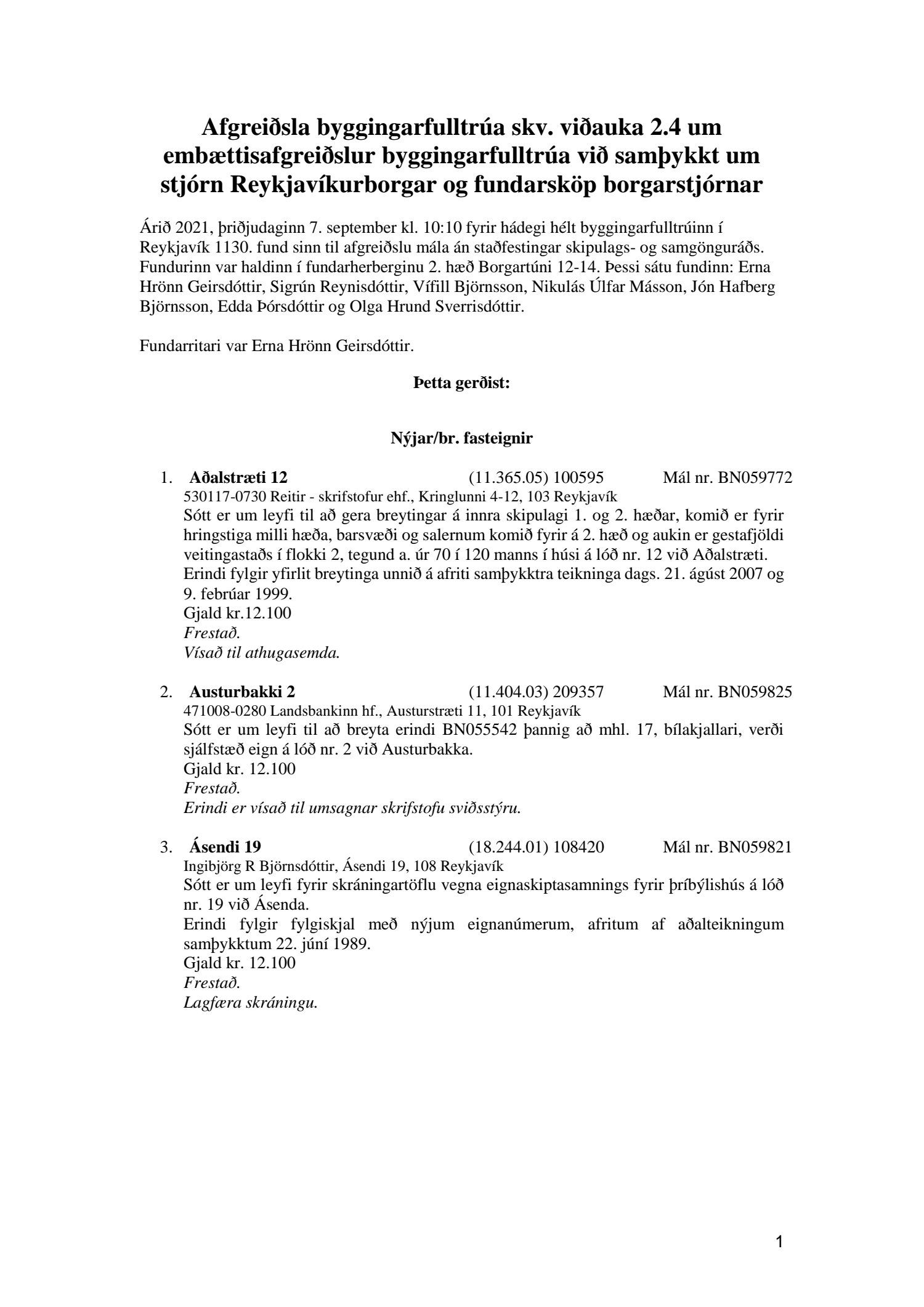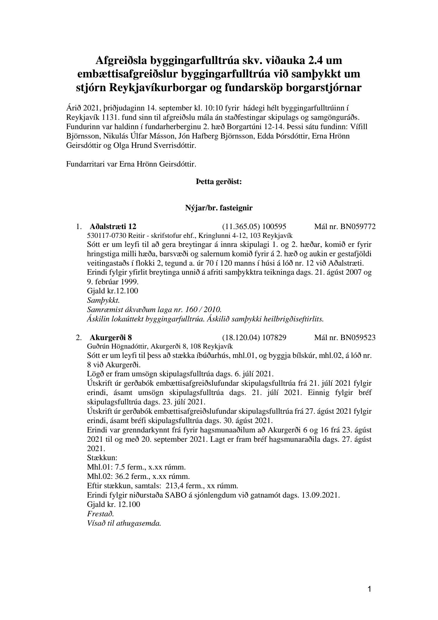Afgreiðslufundur byggingarfulltrúa, fundargerð