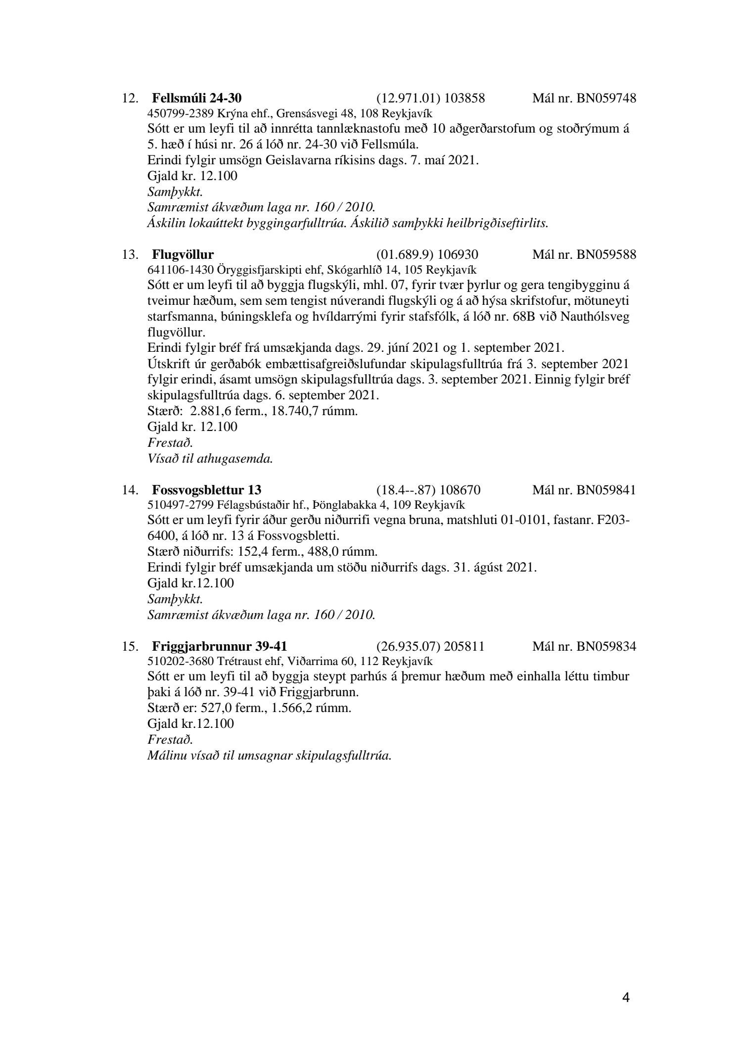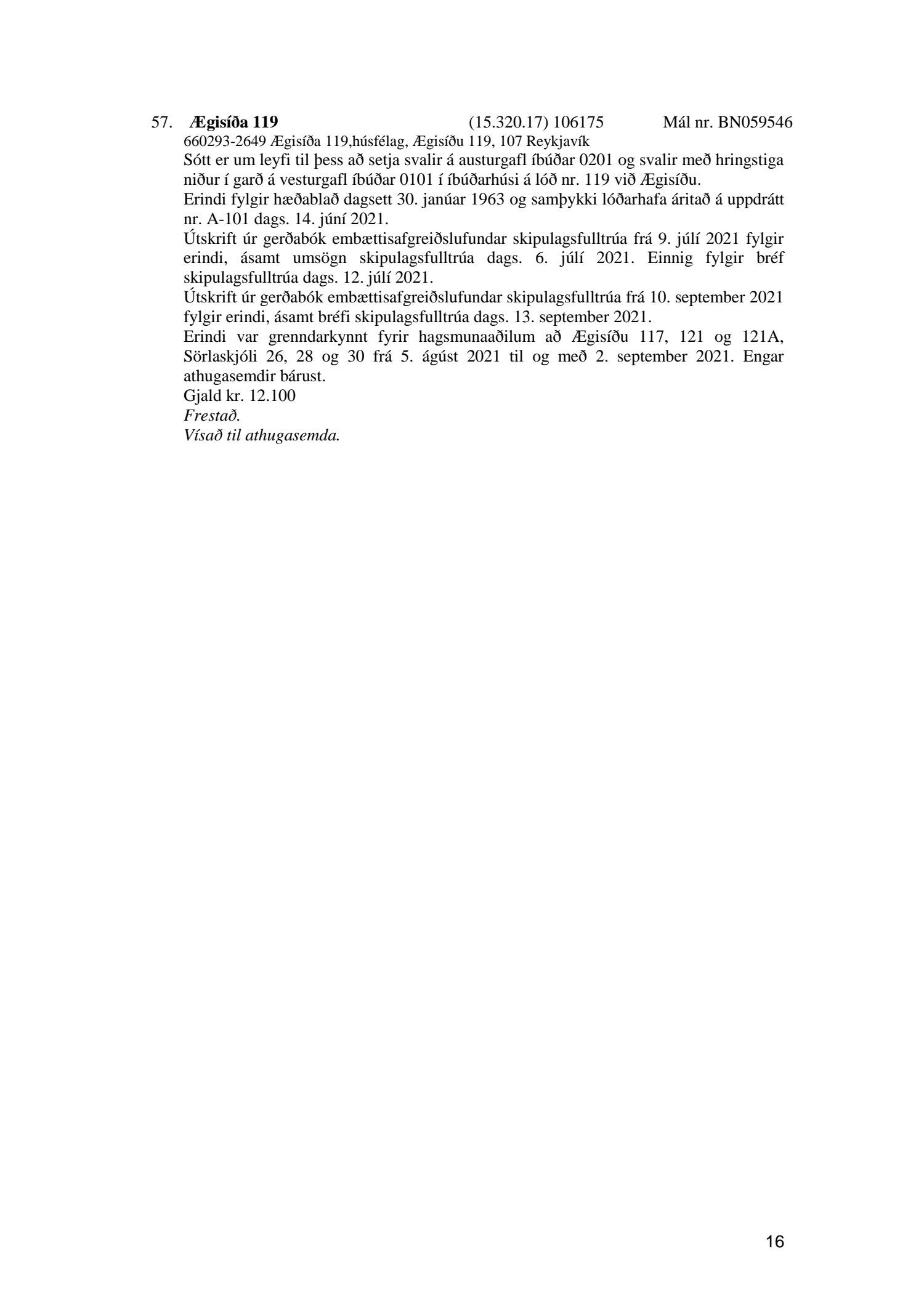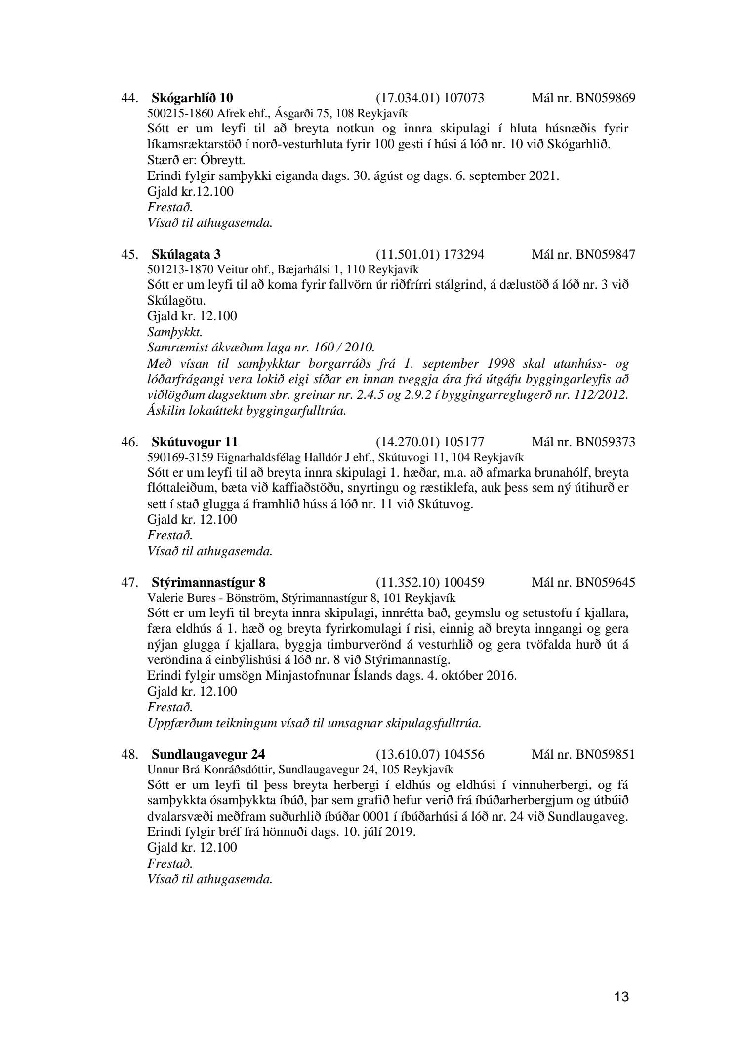 Afgreiðslufundur byggingarfulltrúa, fundargerð