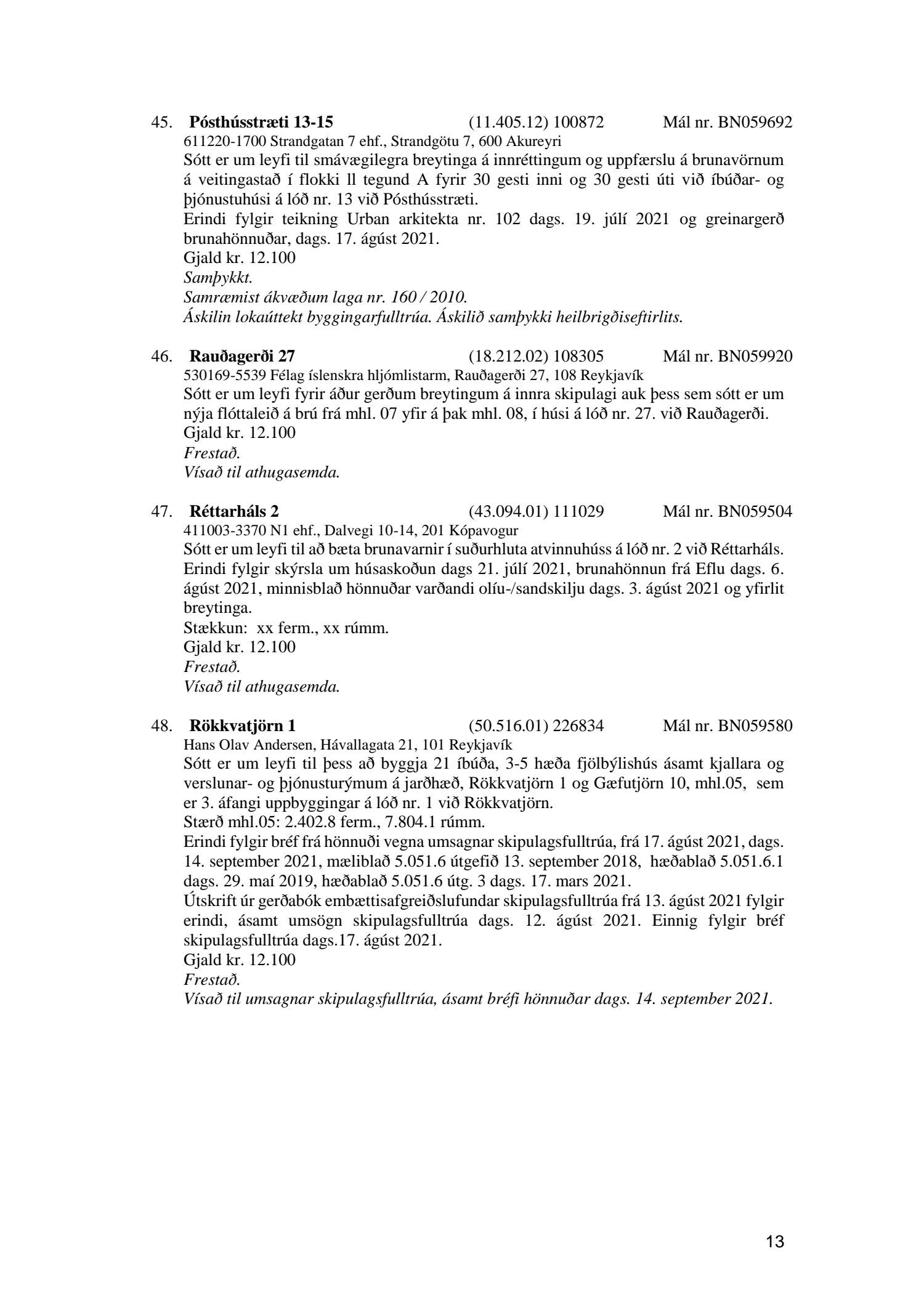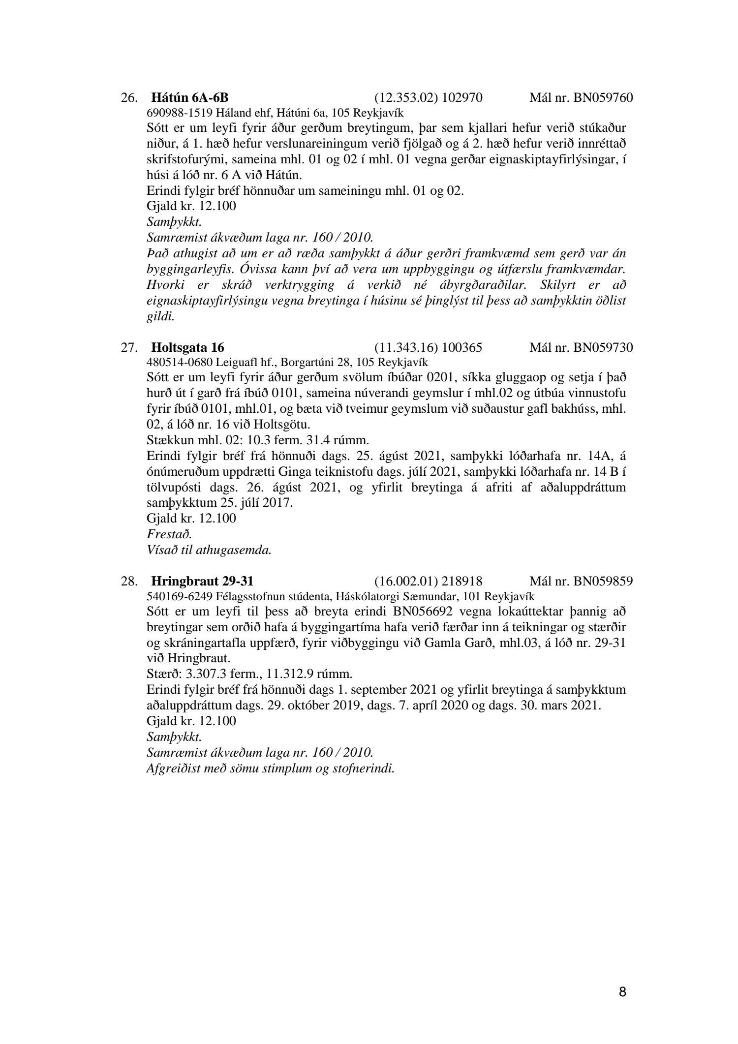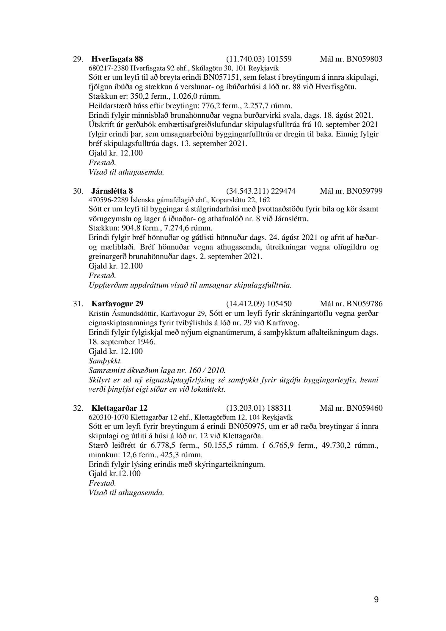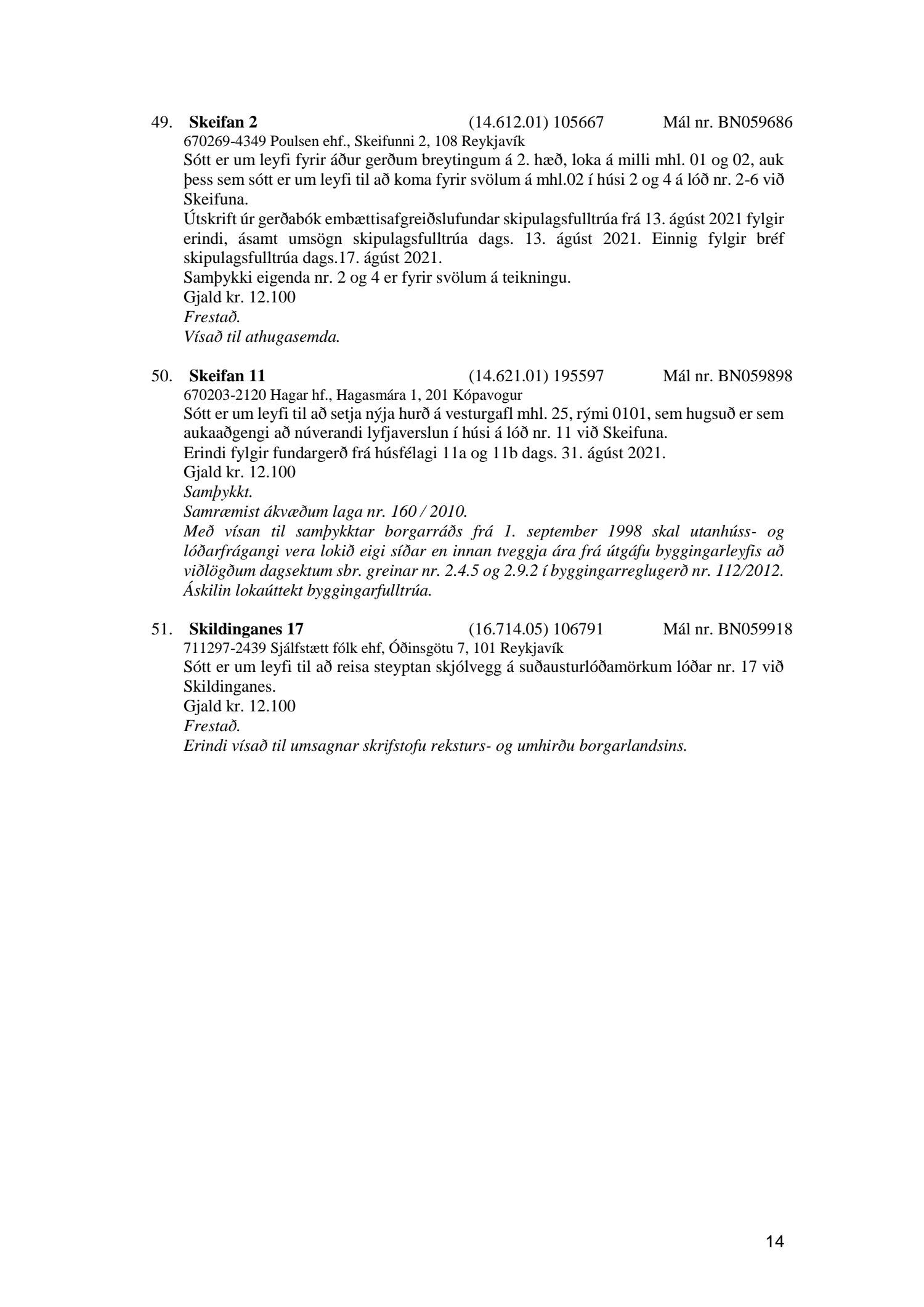 Afgreiðslufundur byggingarfulltrúa, fundargerð