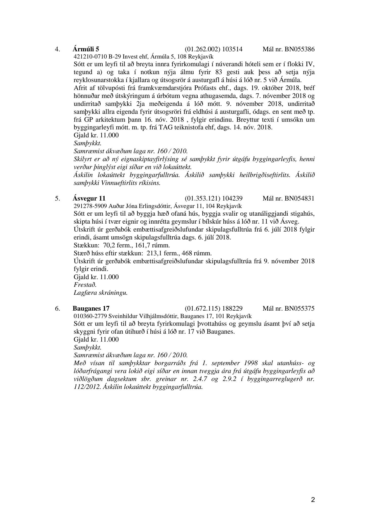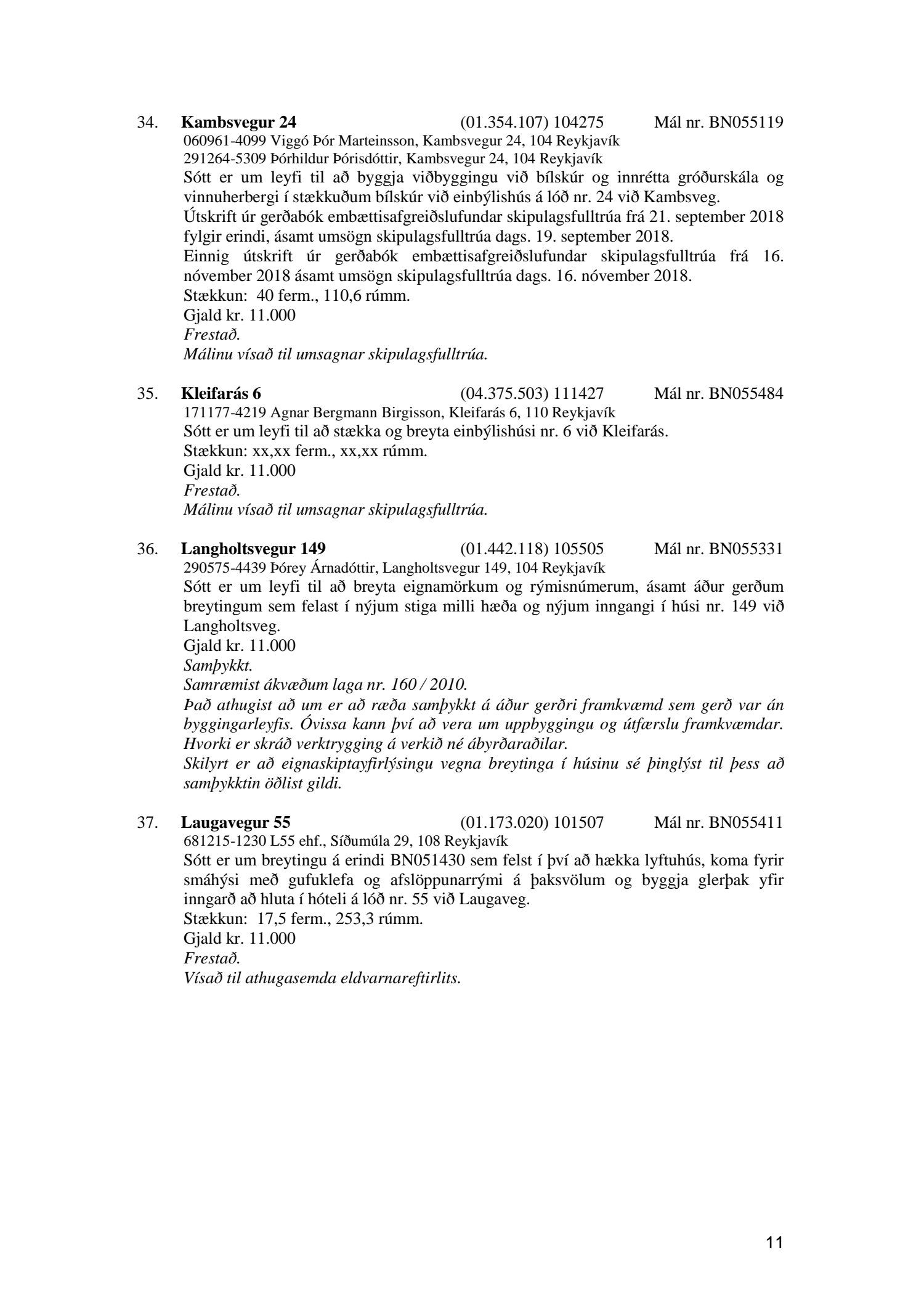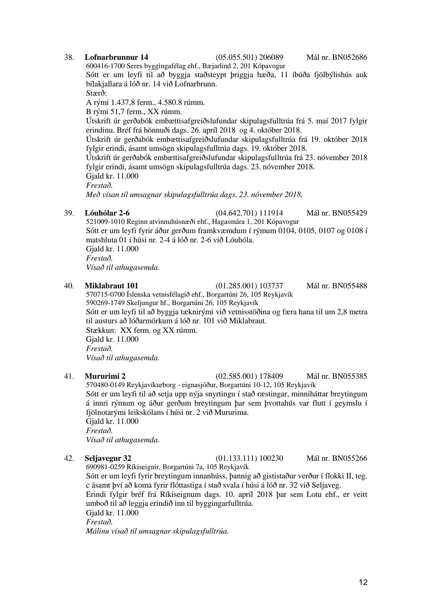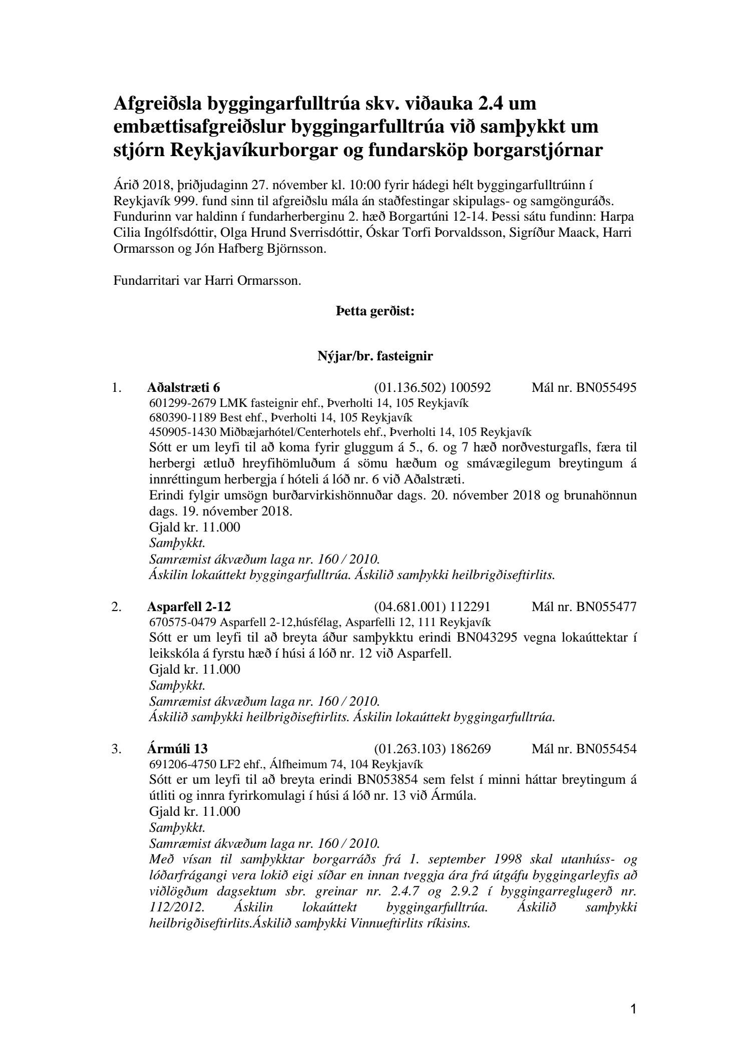 Afgreiðslufundur byggingafulltrúa 27. nóvember 2018