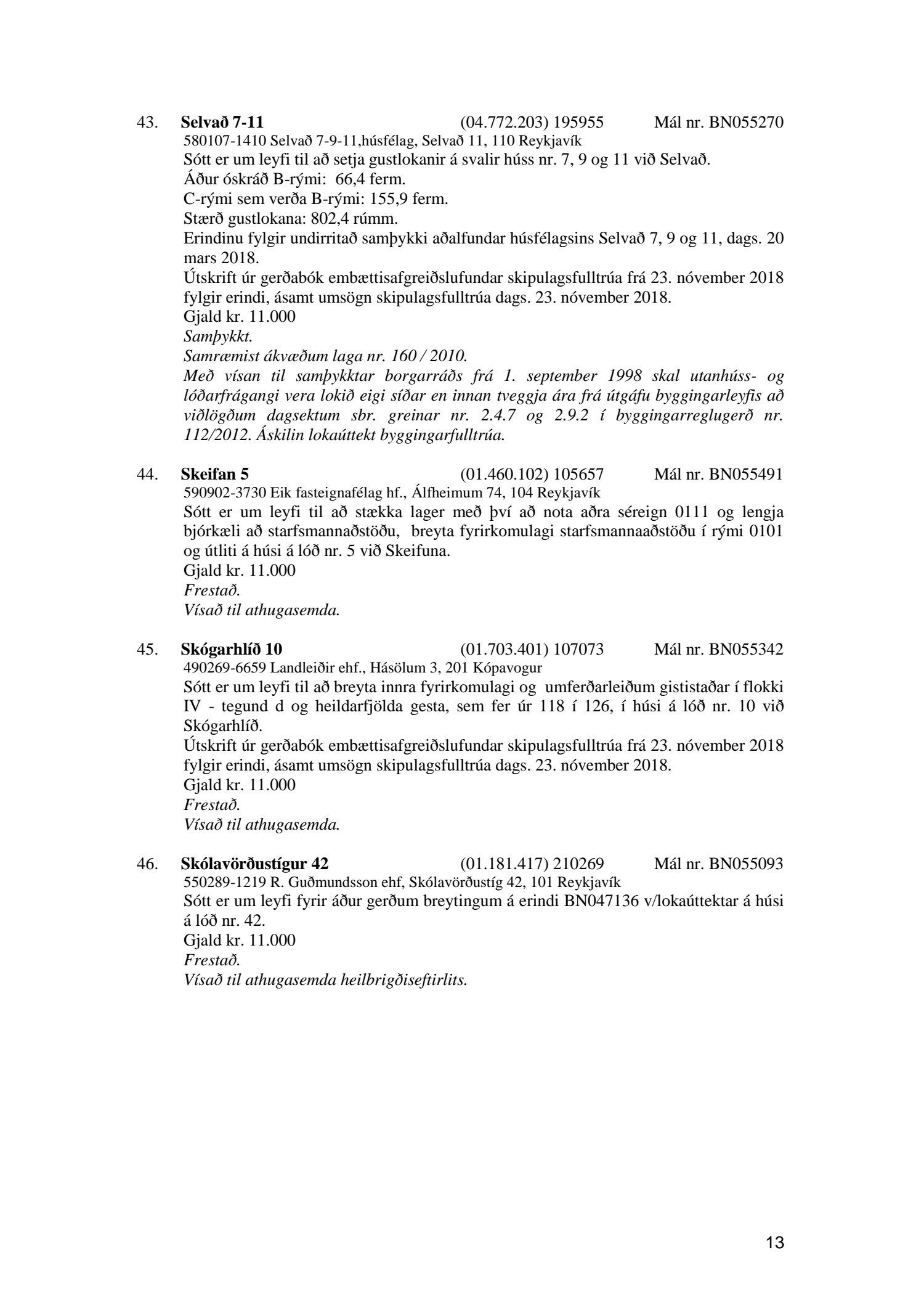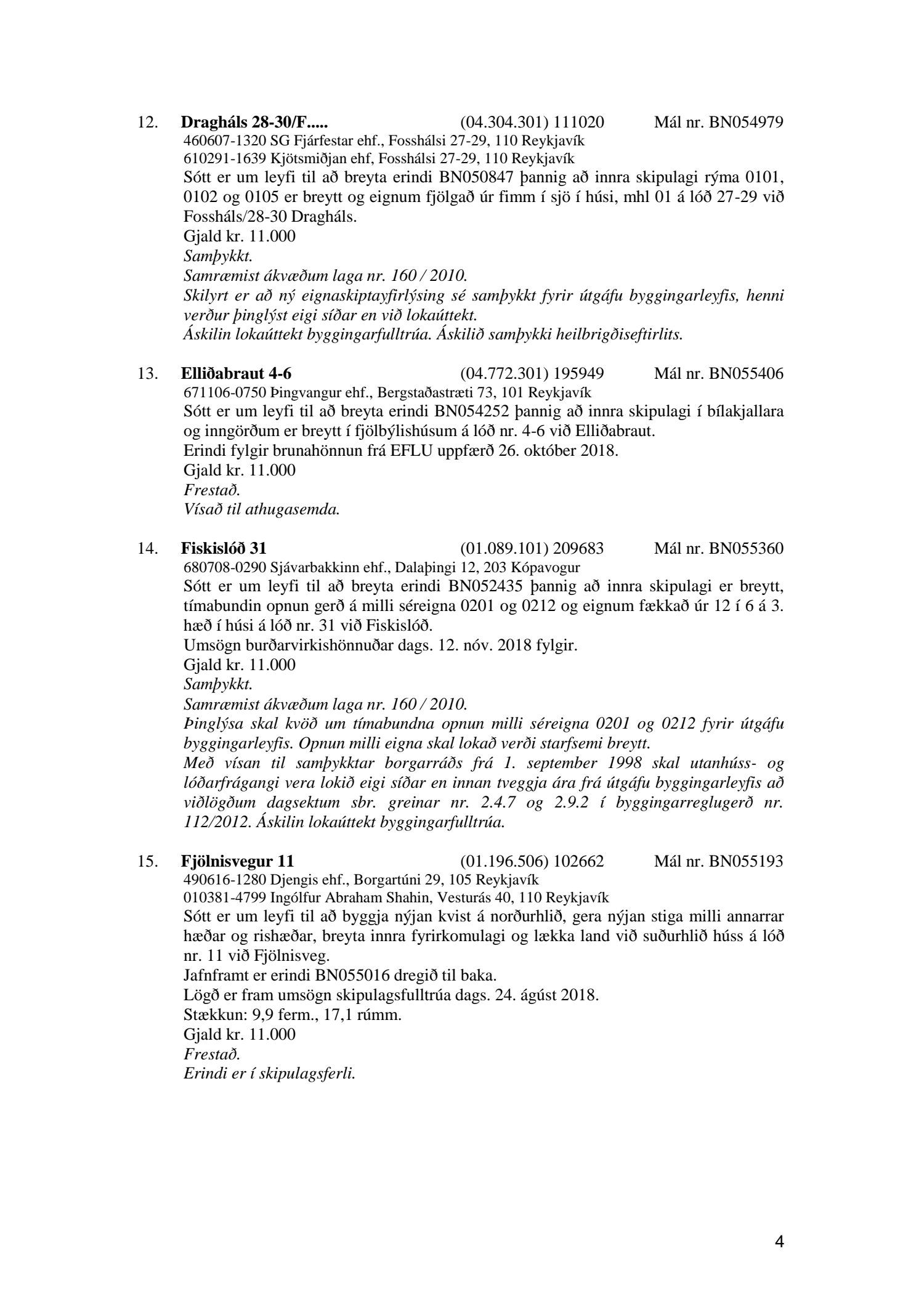 Fylgiskjal með fundargerð þessari er fundargerð afgreiðslufundar byggingarfulltrúa nr. 999 frá 27. nóvember 2018.