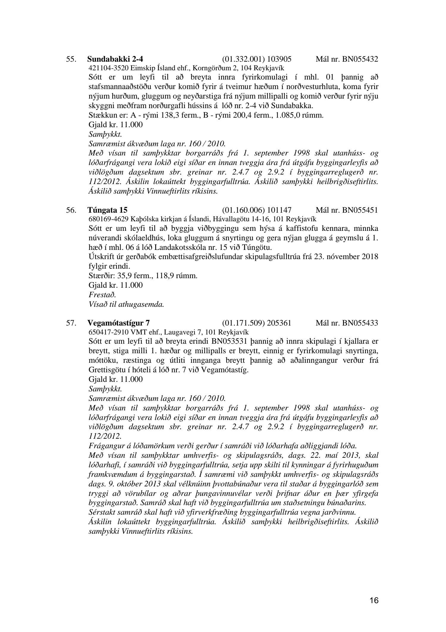 Umhverfis- og skipulagsráð nr. 55