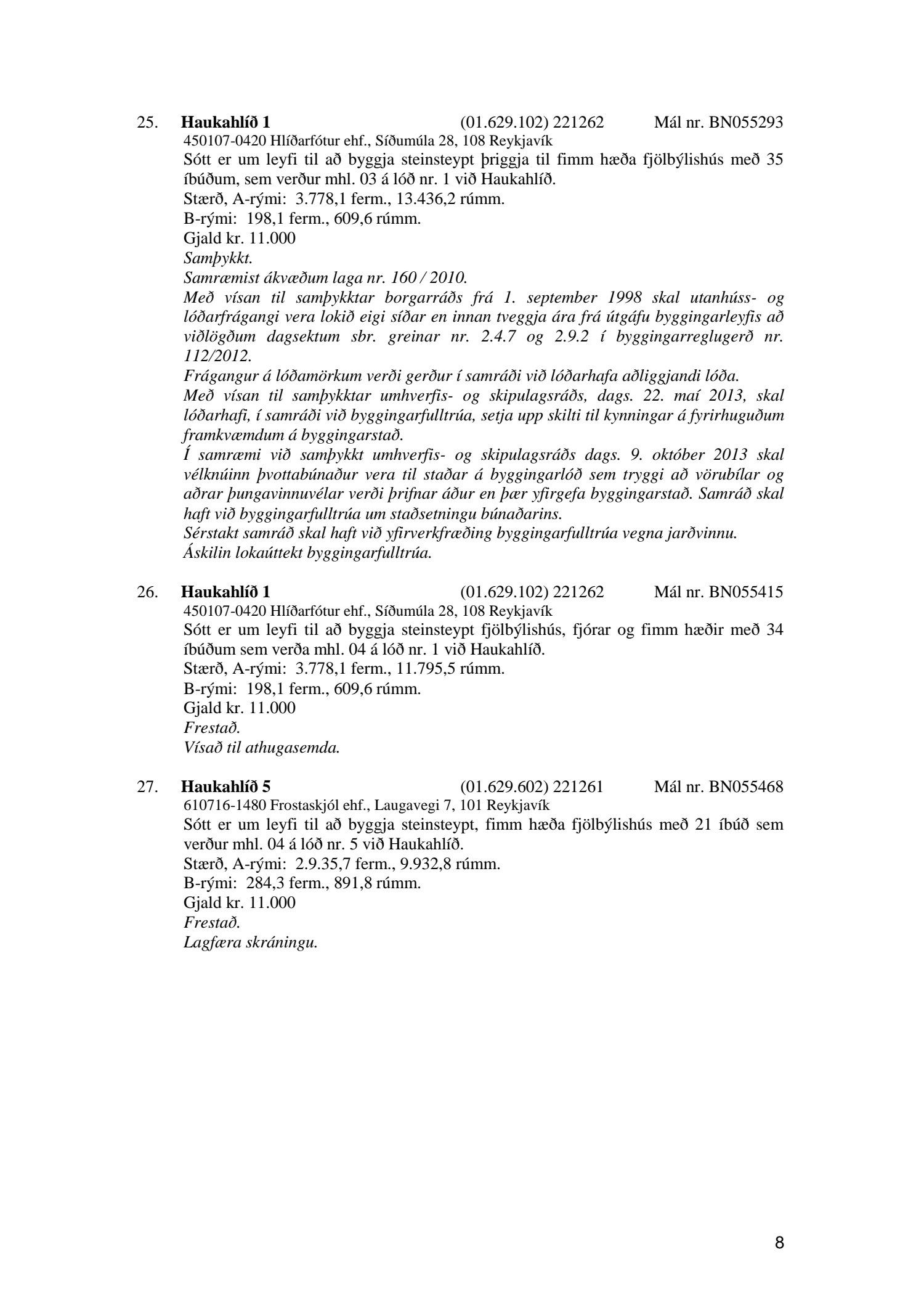 Afgreiðslufundur byggingarfulltrúa, fundargerð