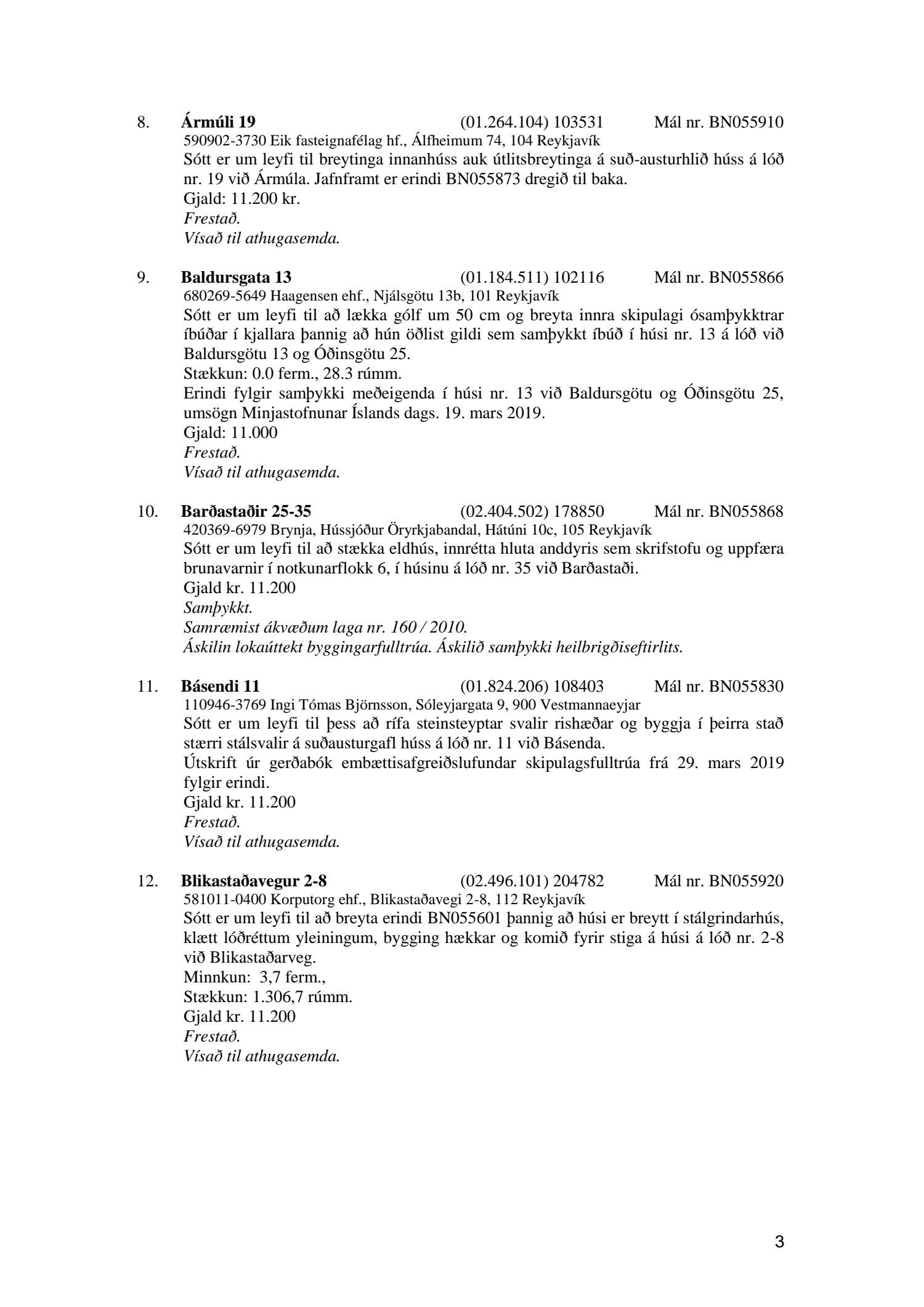 Afgreiðslufundur byggingarfulltrúa 2. apríl 2019