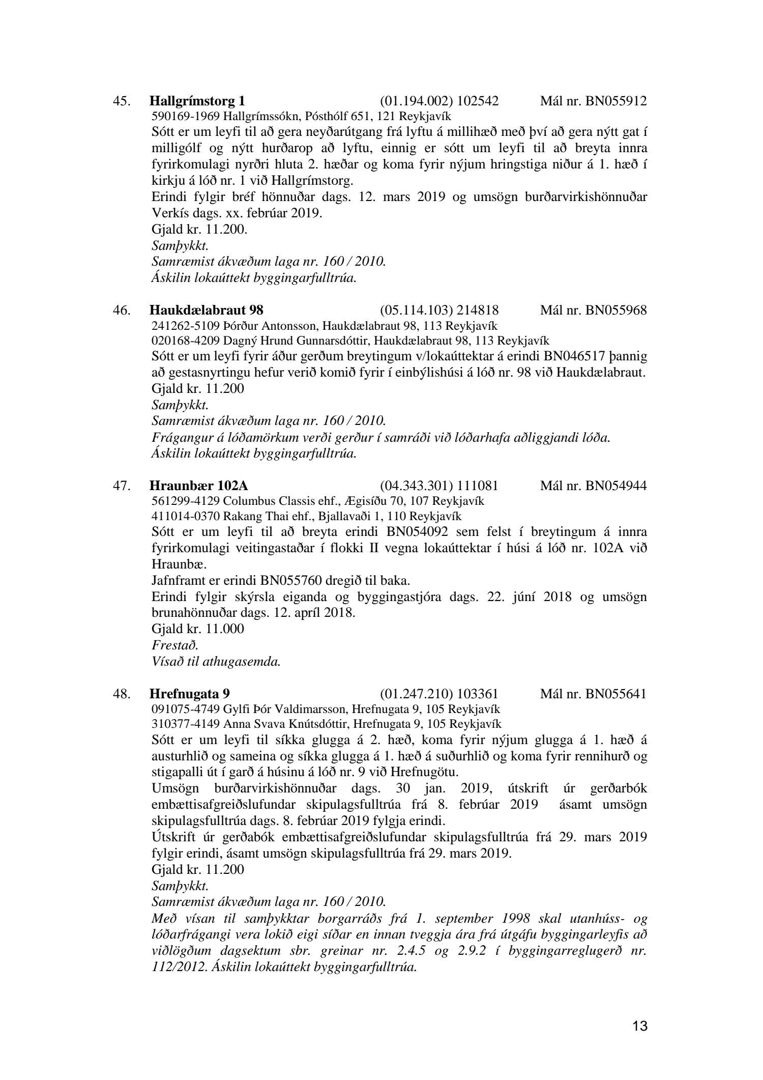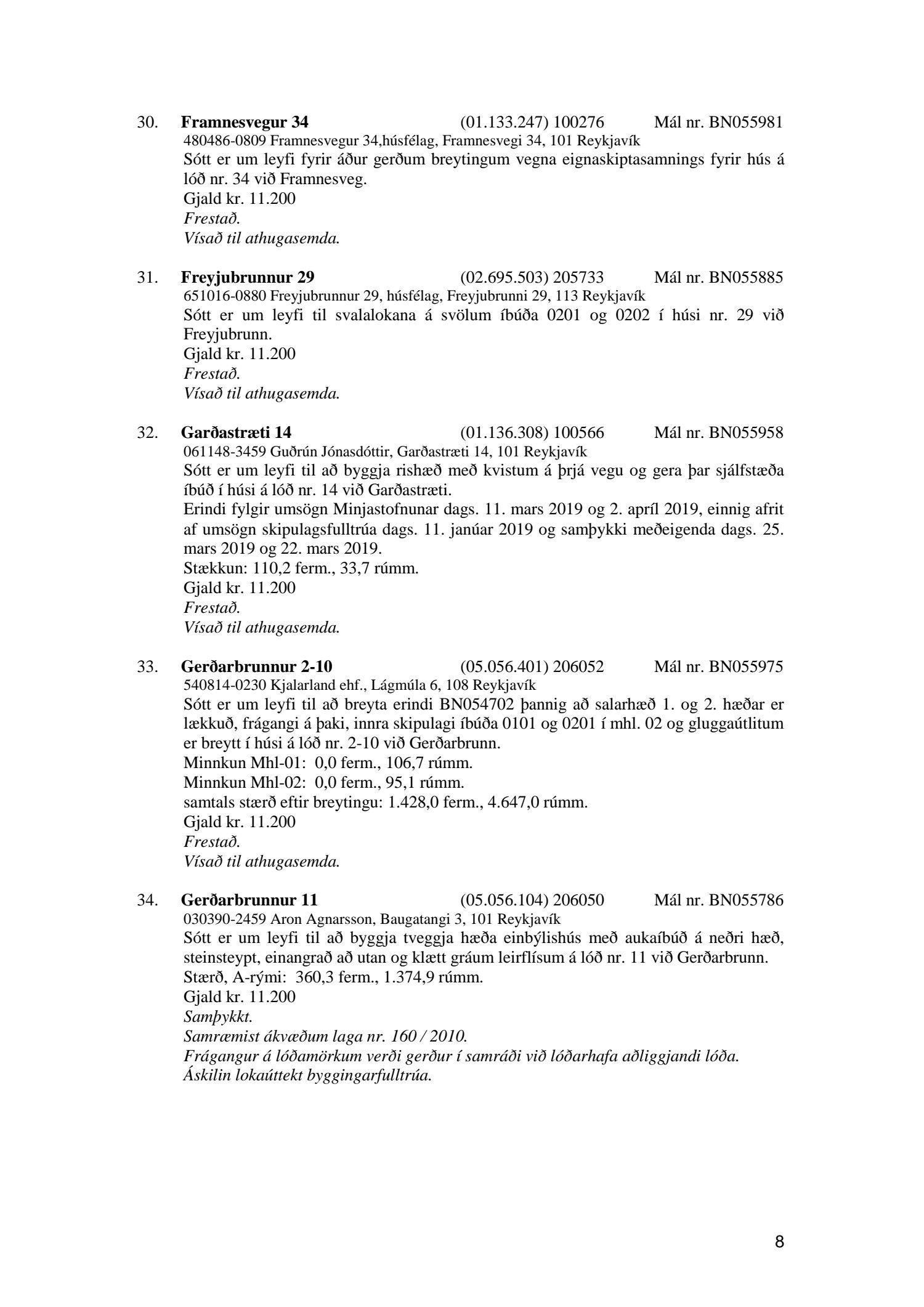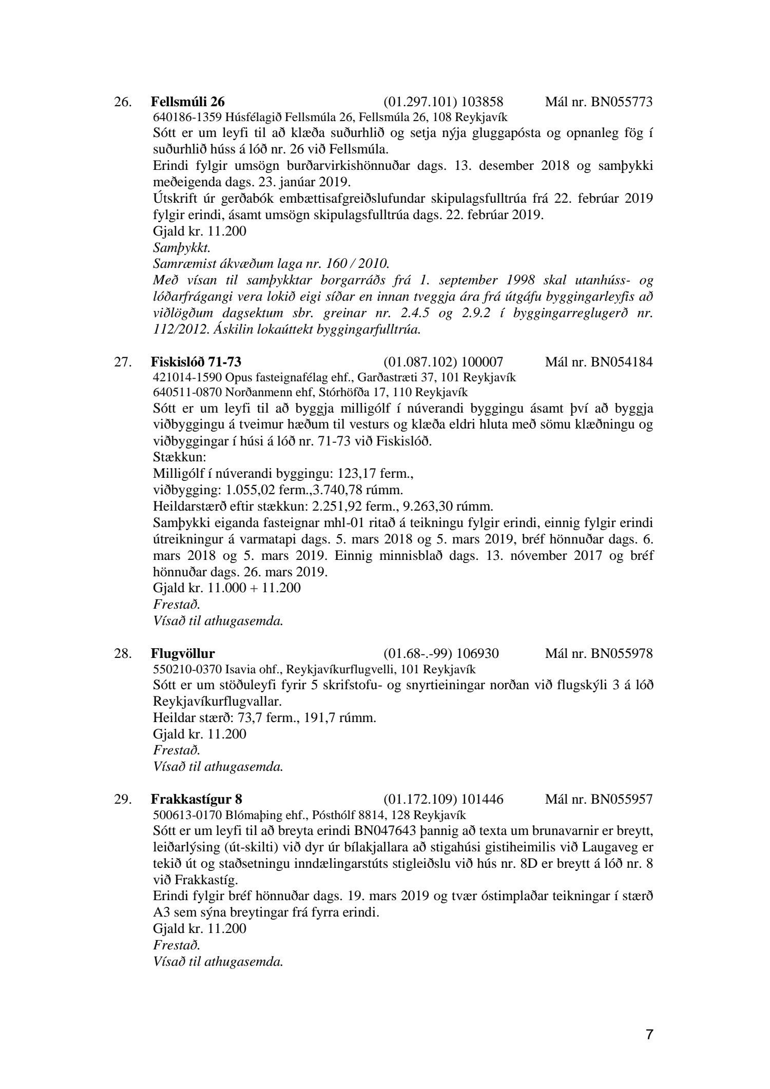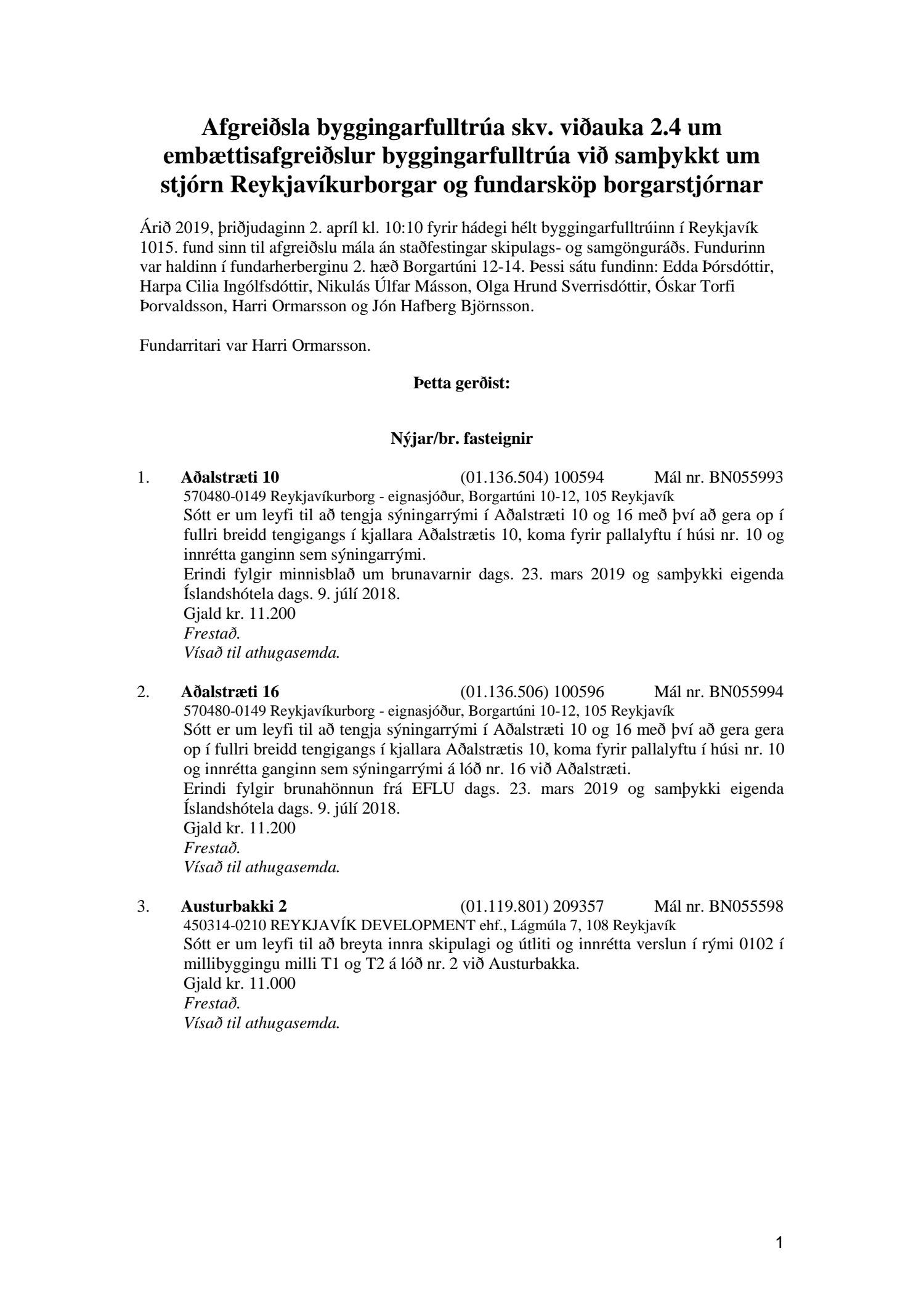 Afgreiðslufundur byggingarfulltrúa, fundargerð
