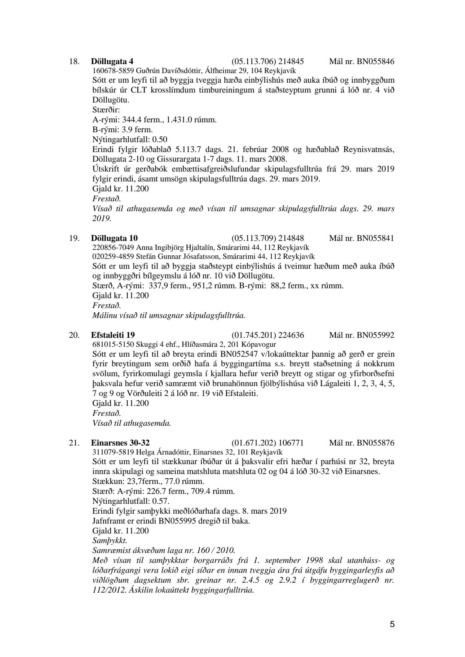 Fylgiskjal með fundargerð þessari er fundargerð afgreiðslufundar byggingarfulltrúa nr. 1015 frá 2. apríl 2019.
