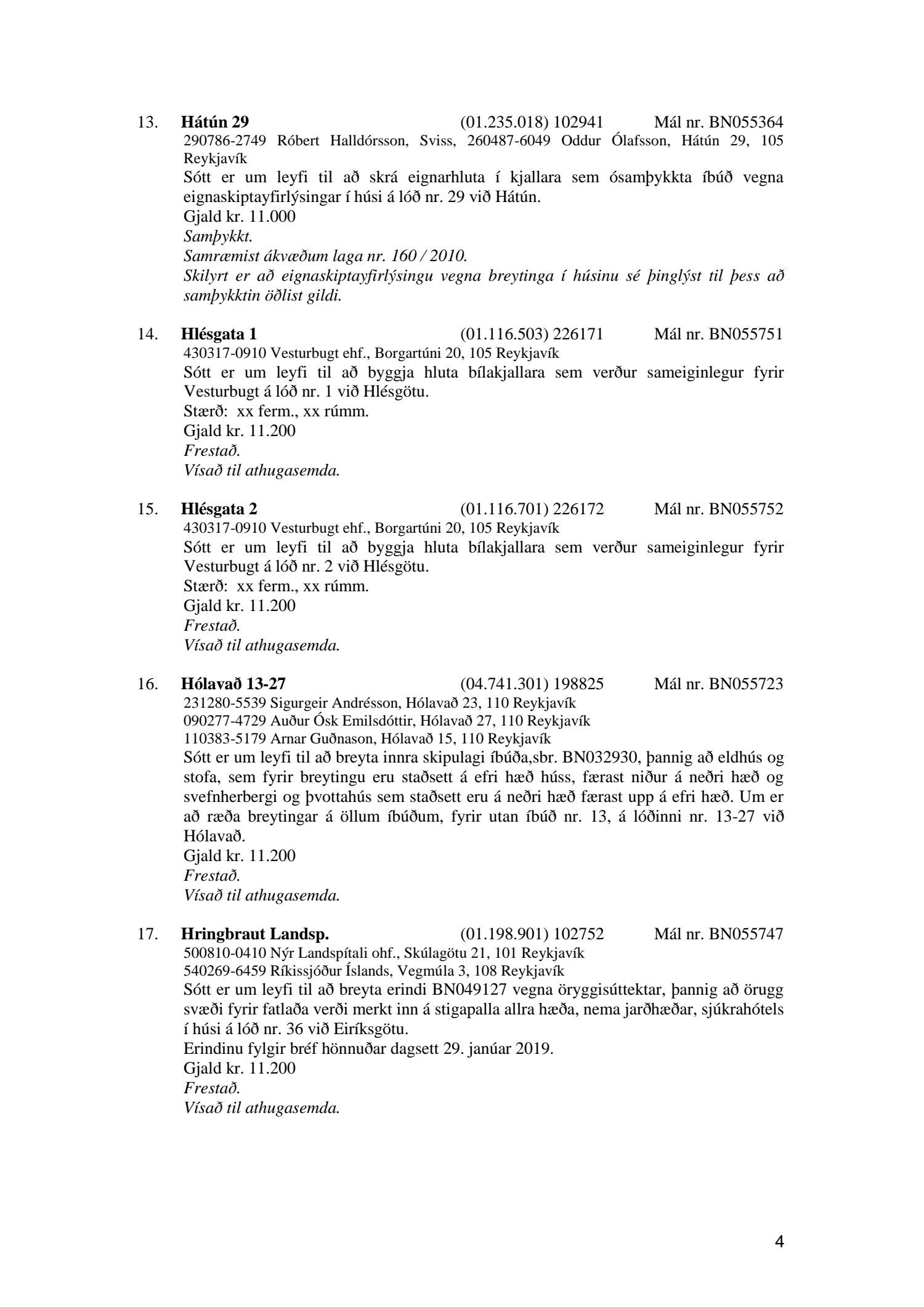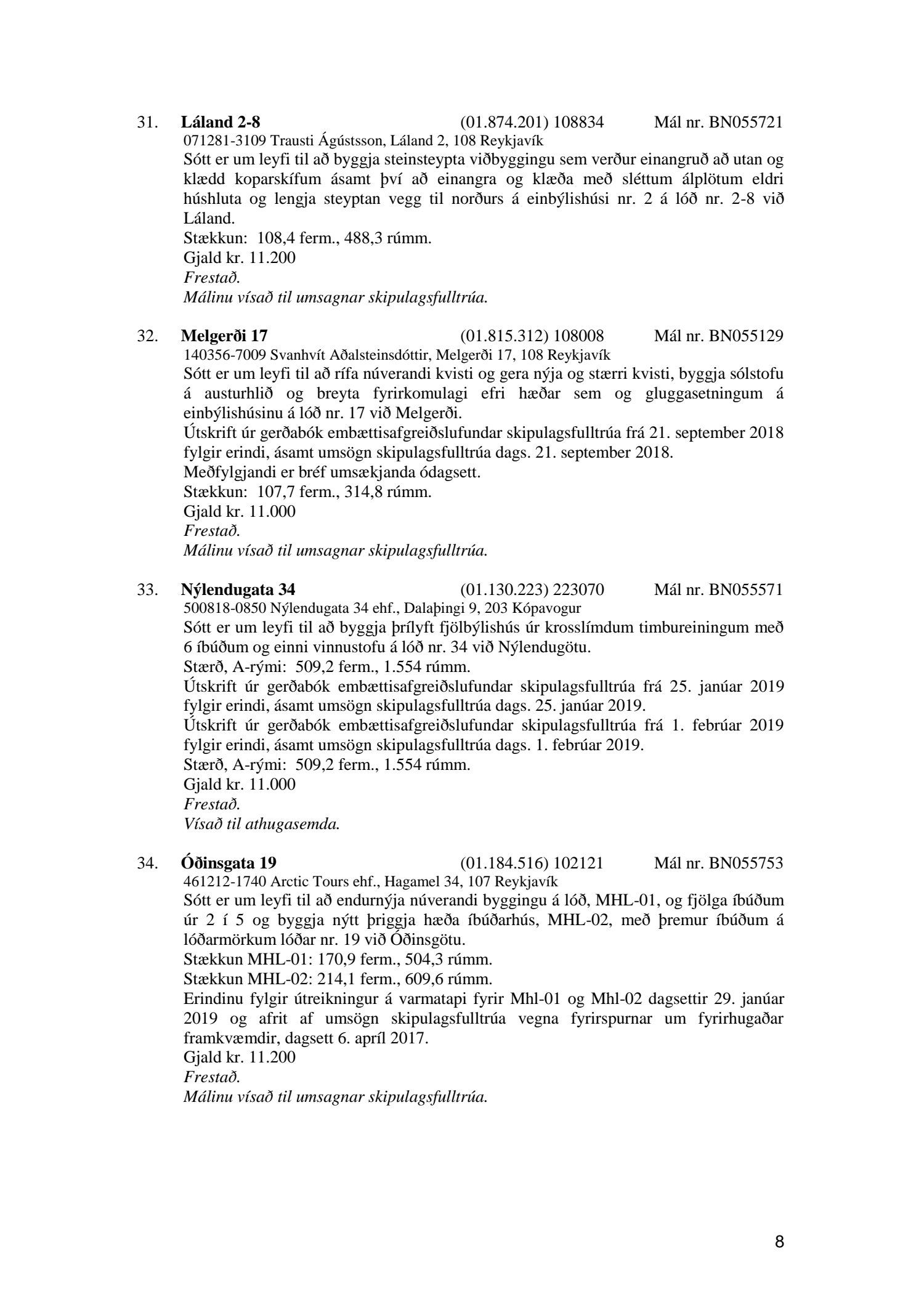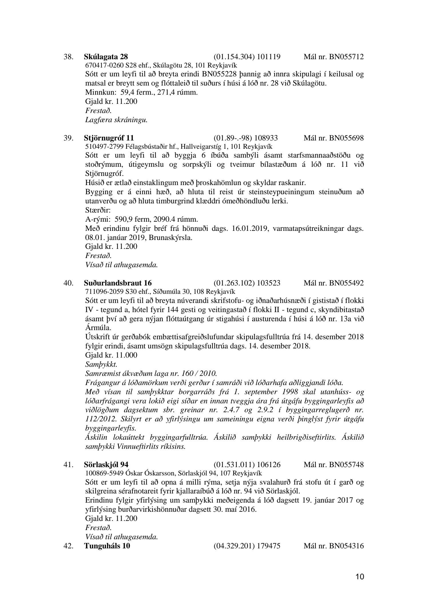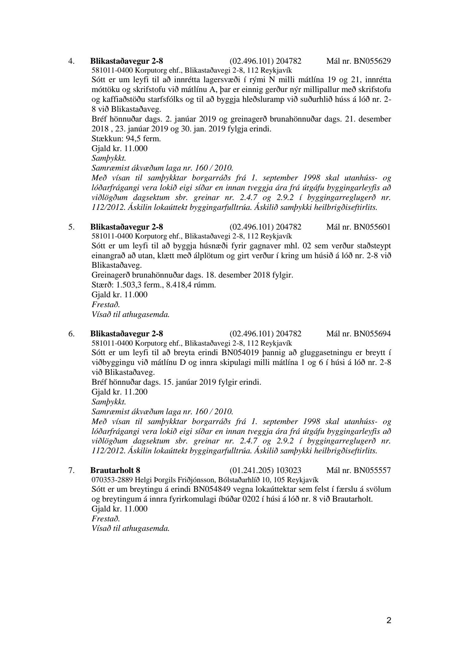 Afgreiðslufundur byggingarfulltrúa 5. febrúar 2019