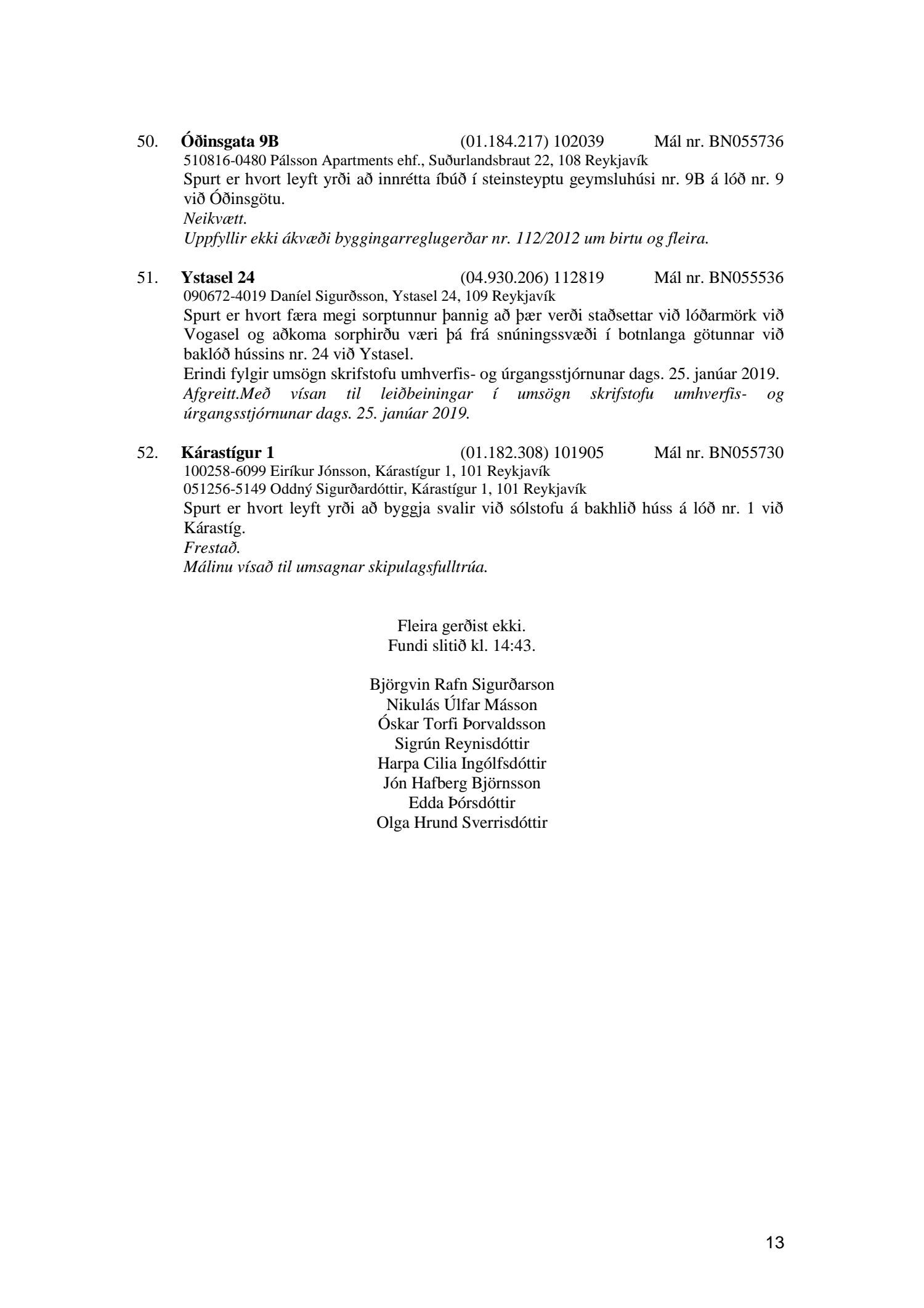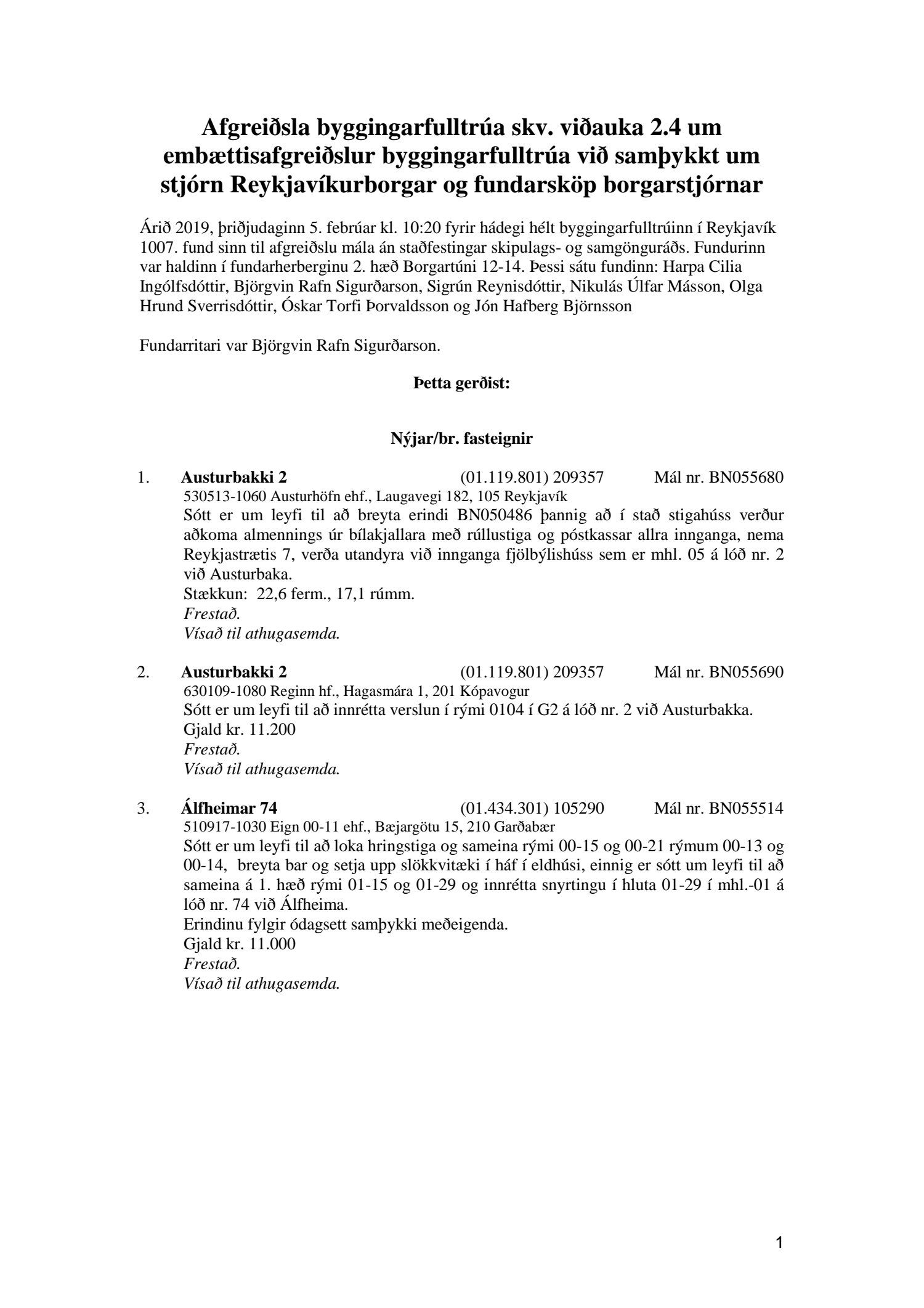 Fylgiskjal með fundargerð þessari er fundargerð afgreiðslufundar byggingarfulltrúa nr.1007 frá 5. febrúar 2019.