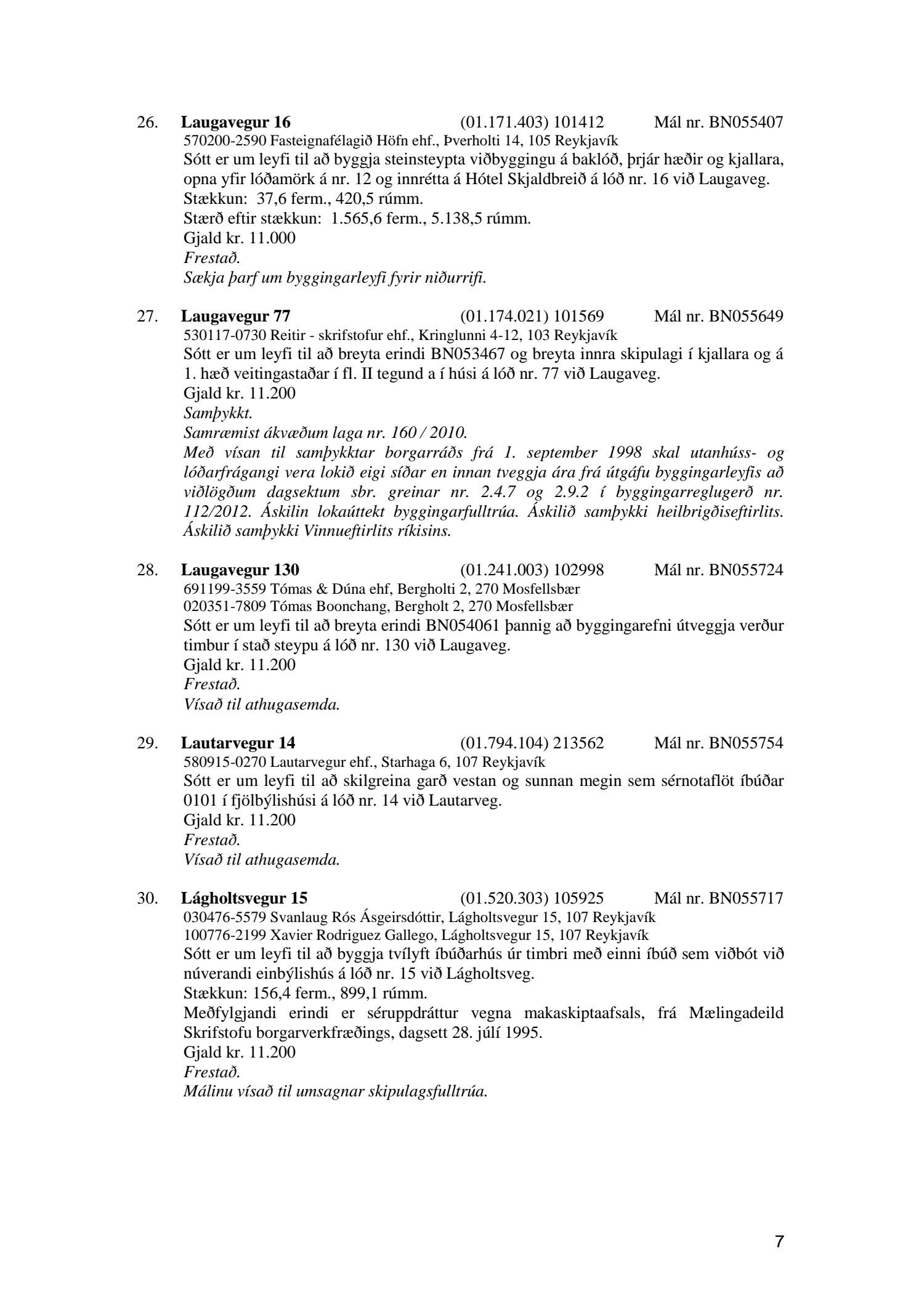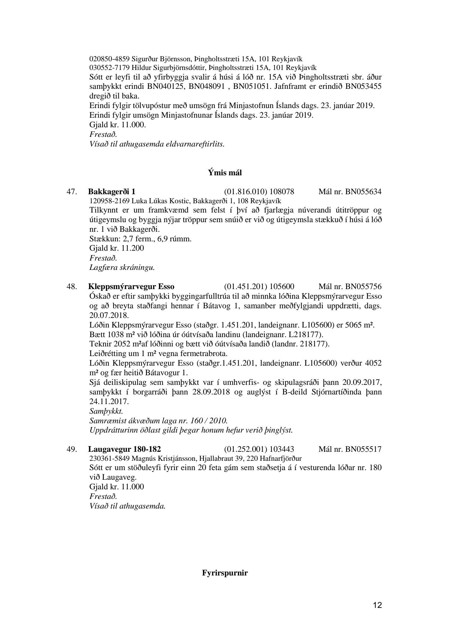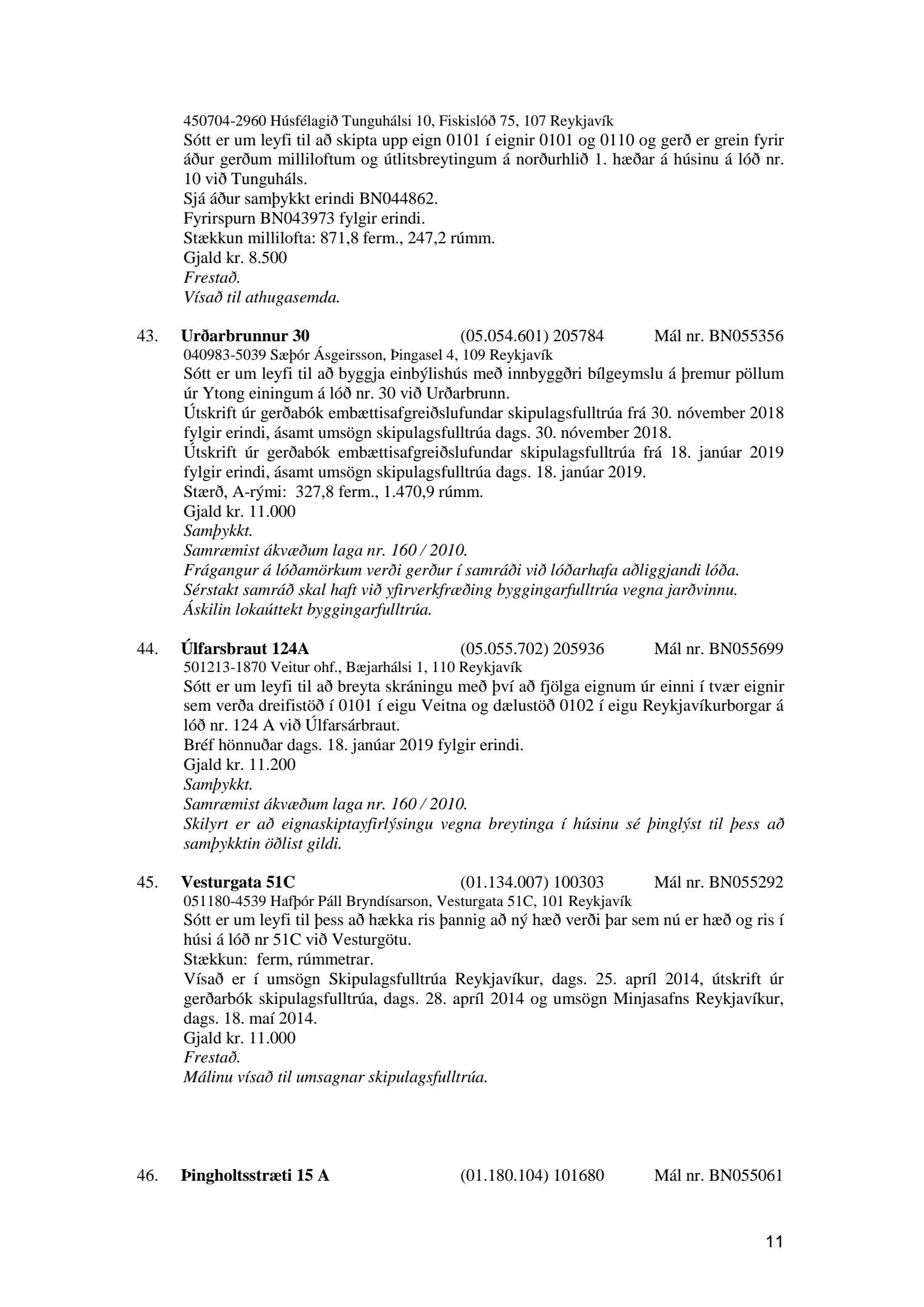 Afgreiðslufundur byggingarfulltrúa, fundargerð