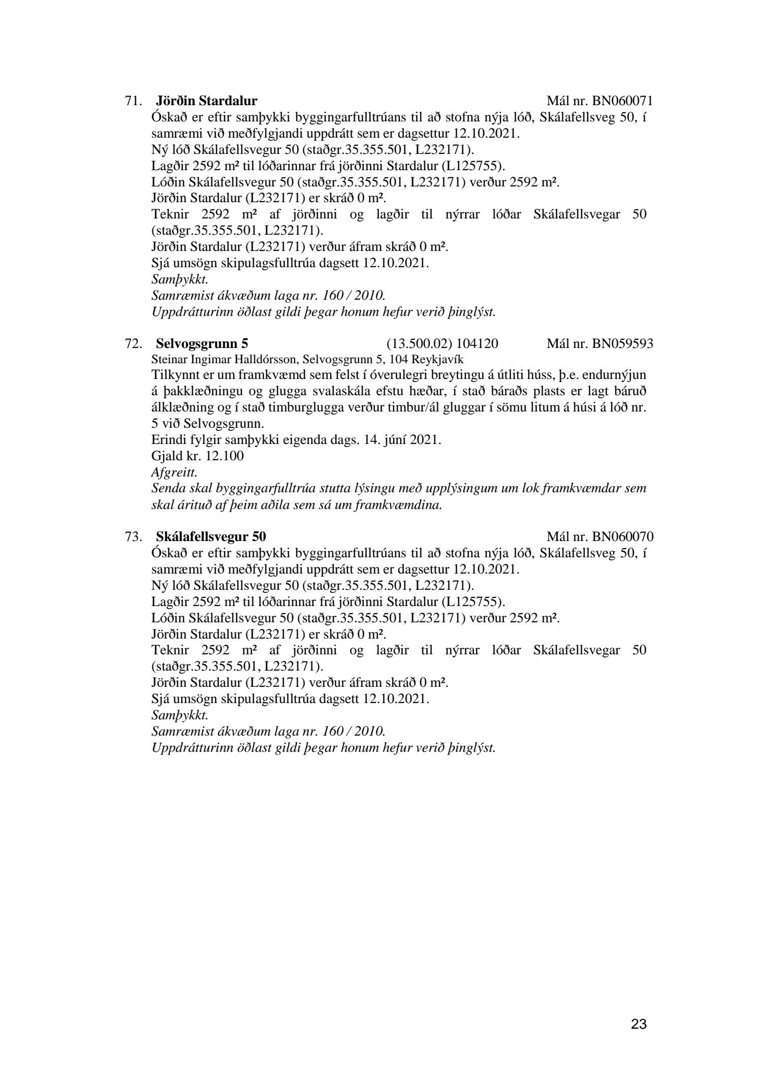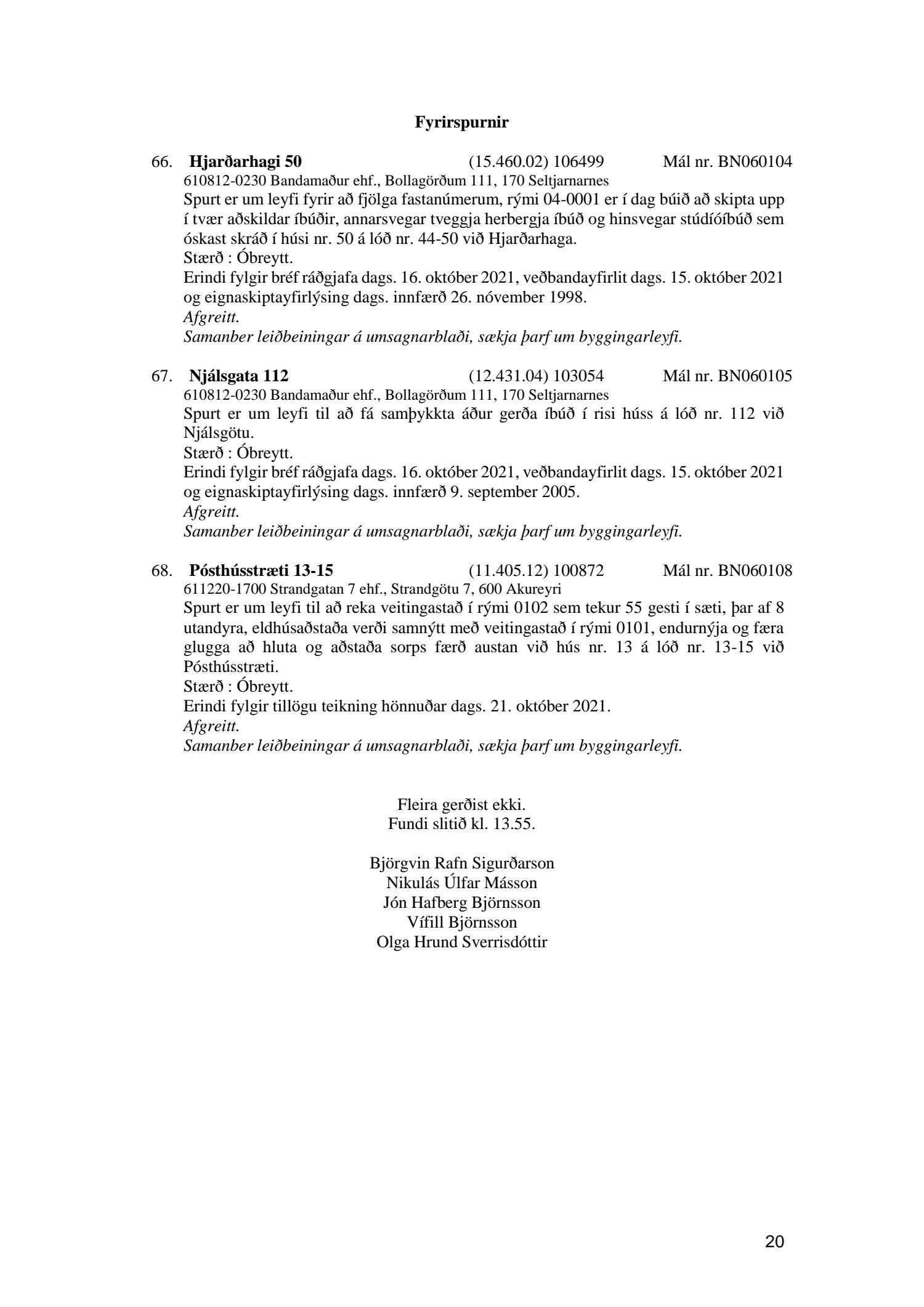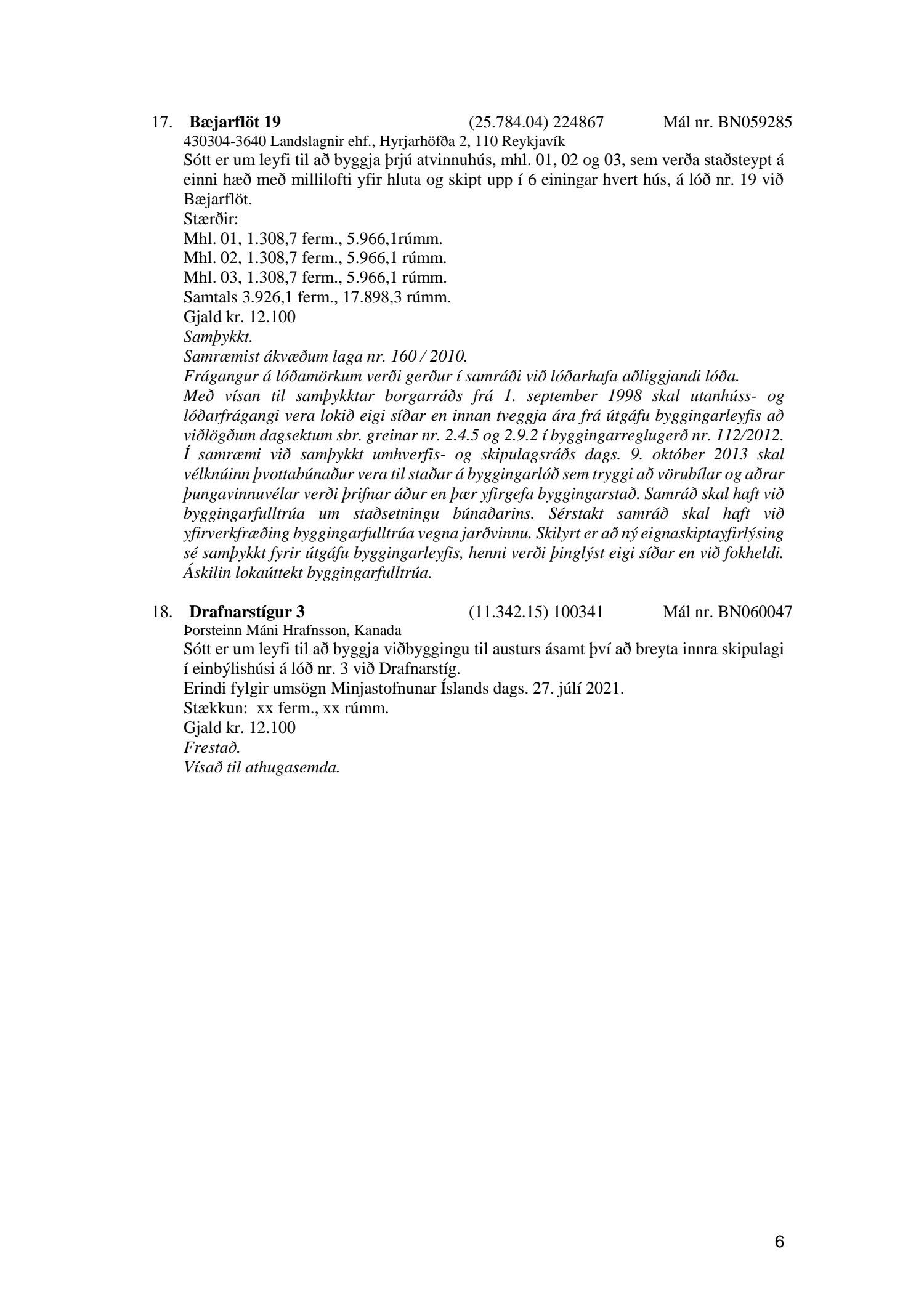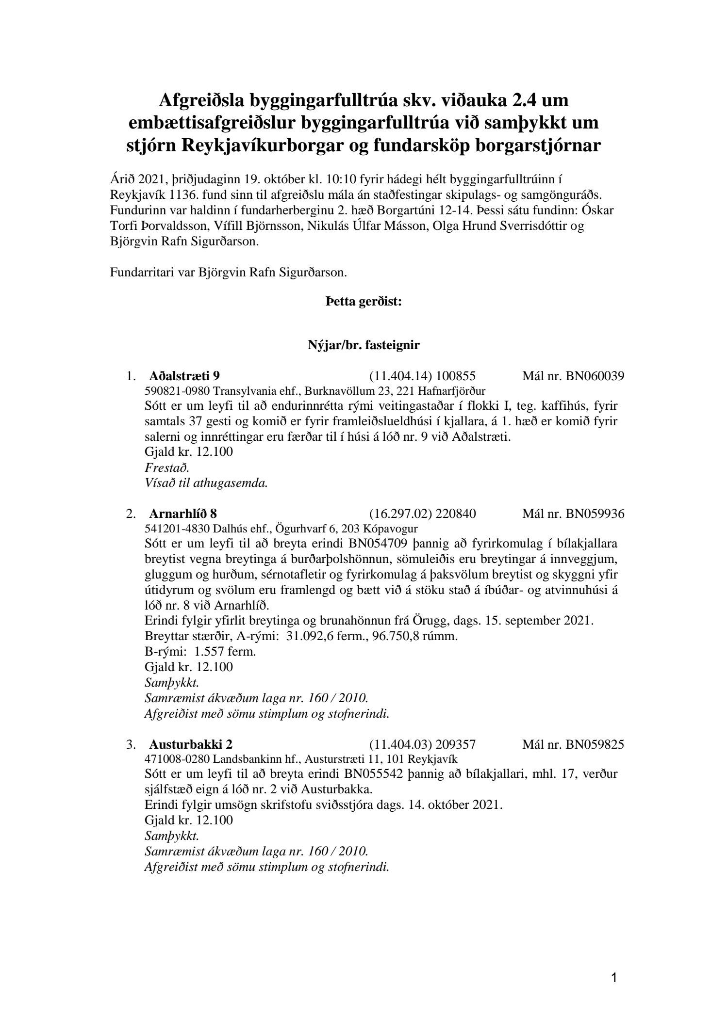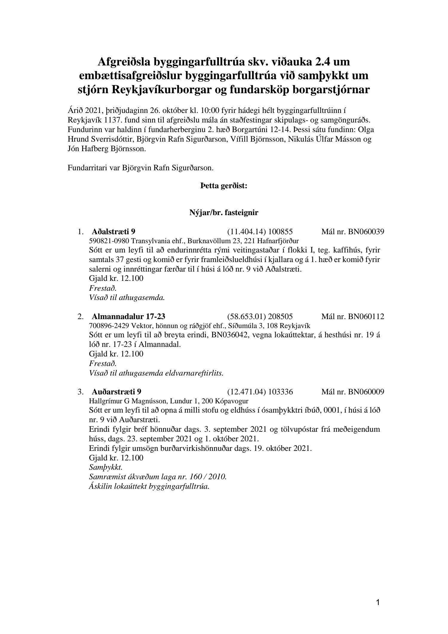 Afgreiðslufundur byggingarfulltrúa, fundargerð