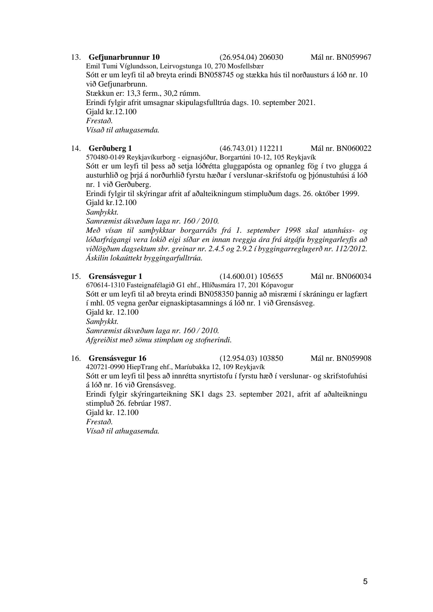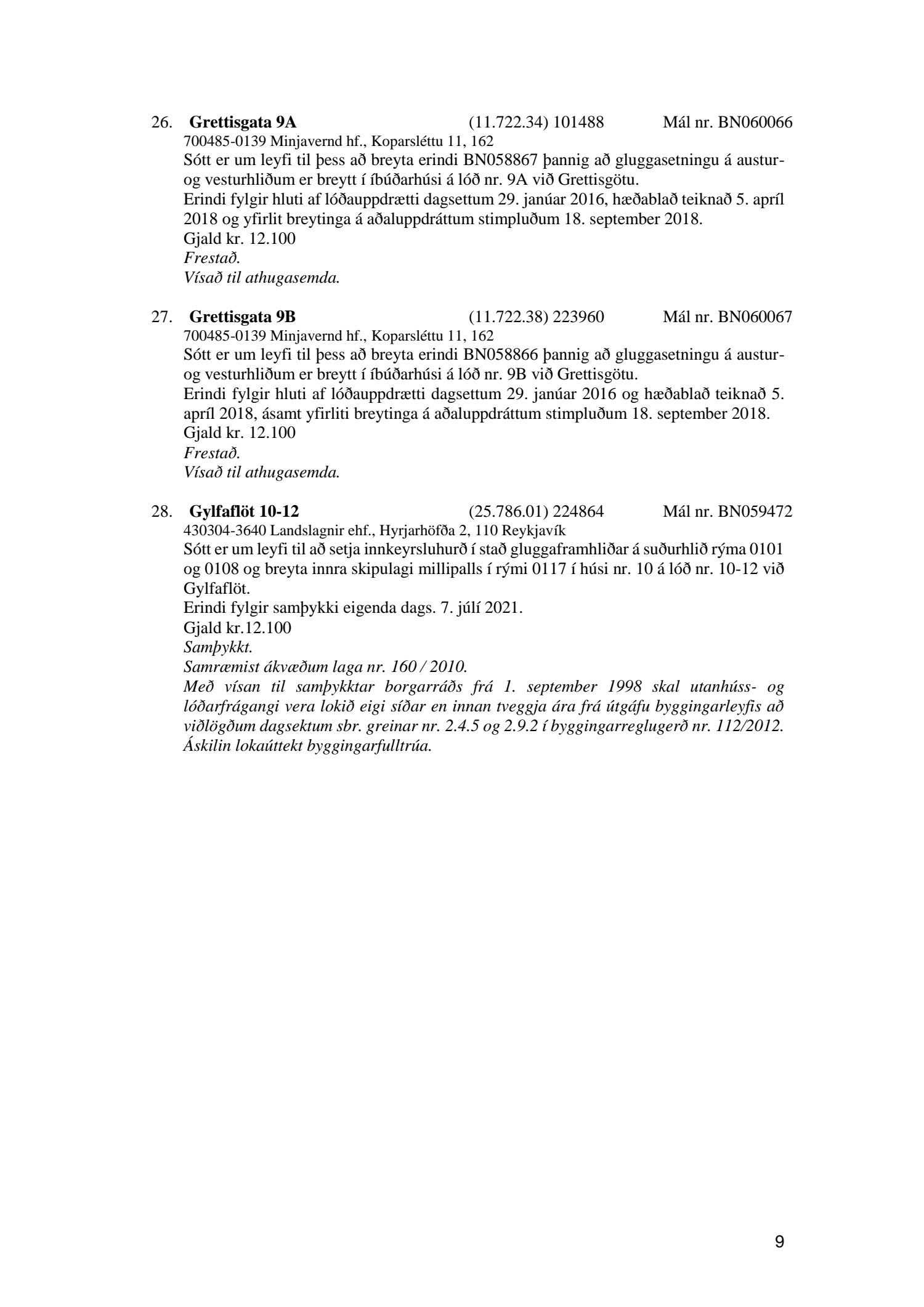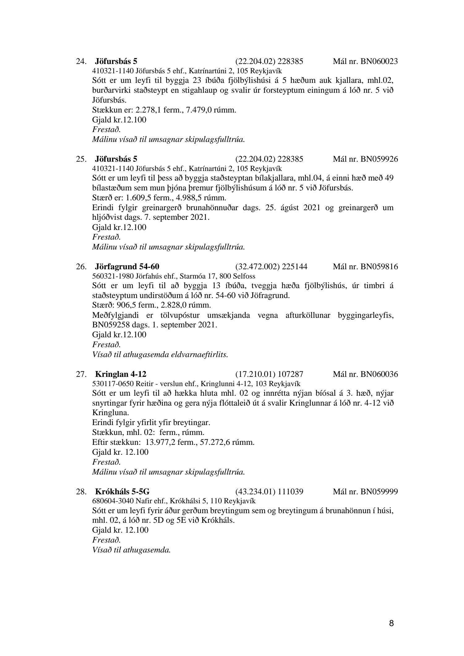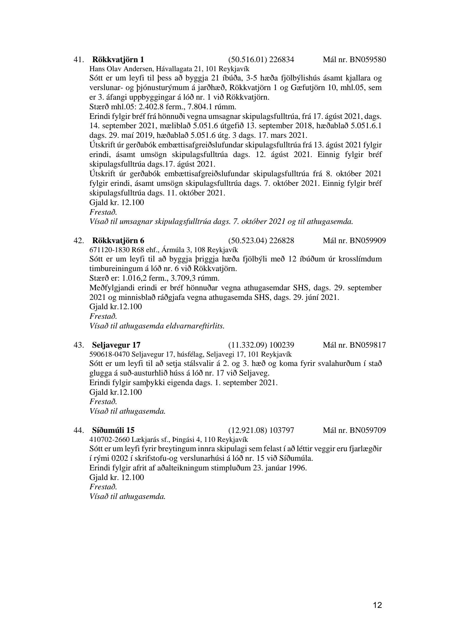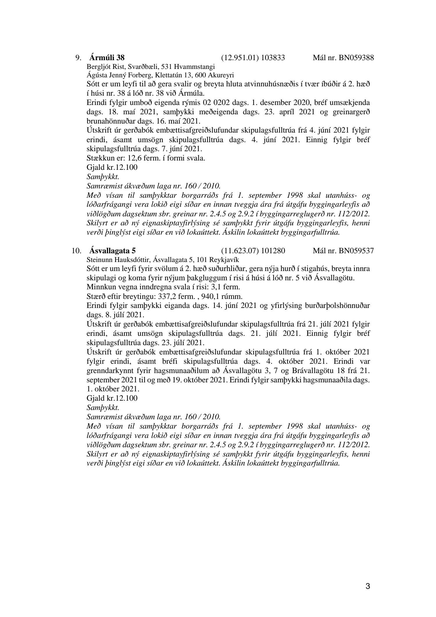 Afgreiðslufundur byggingarfulltrúa, fundargerð