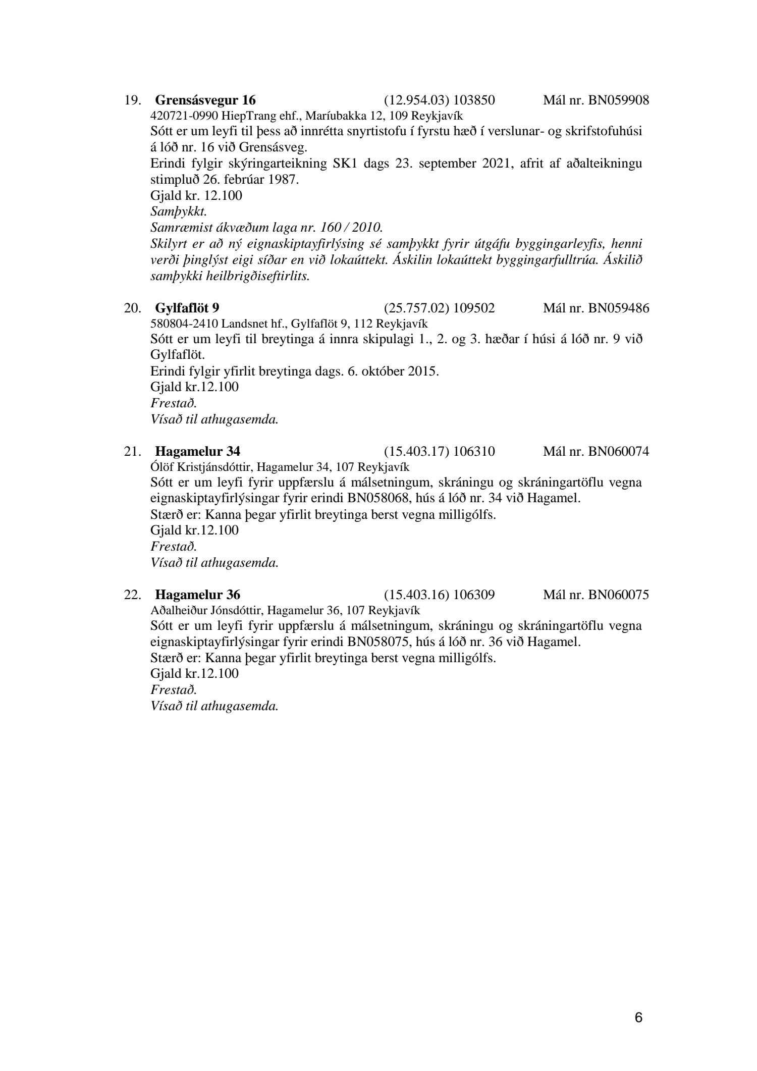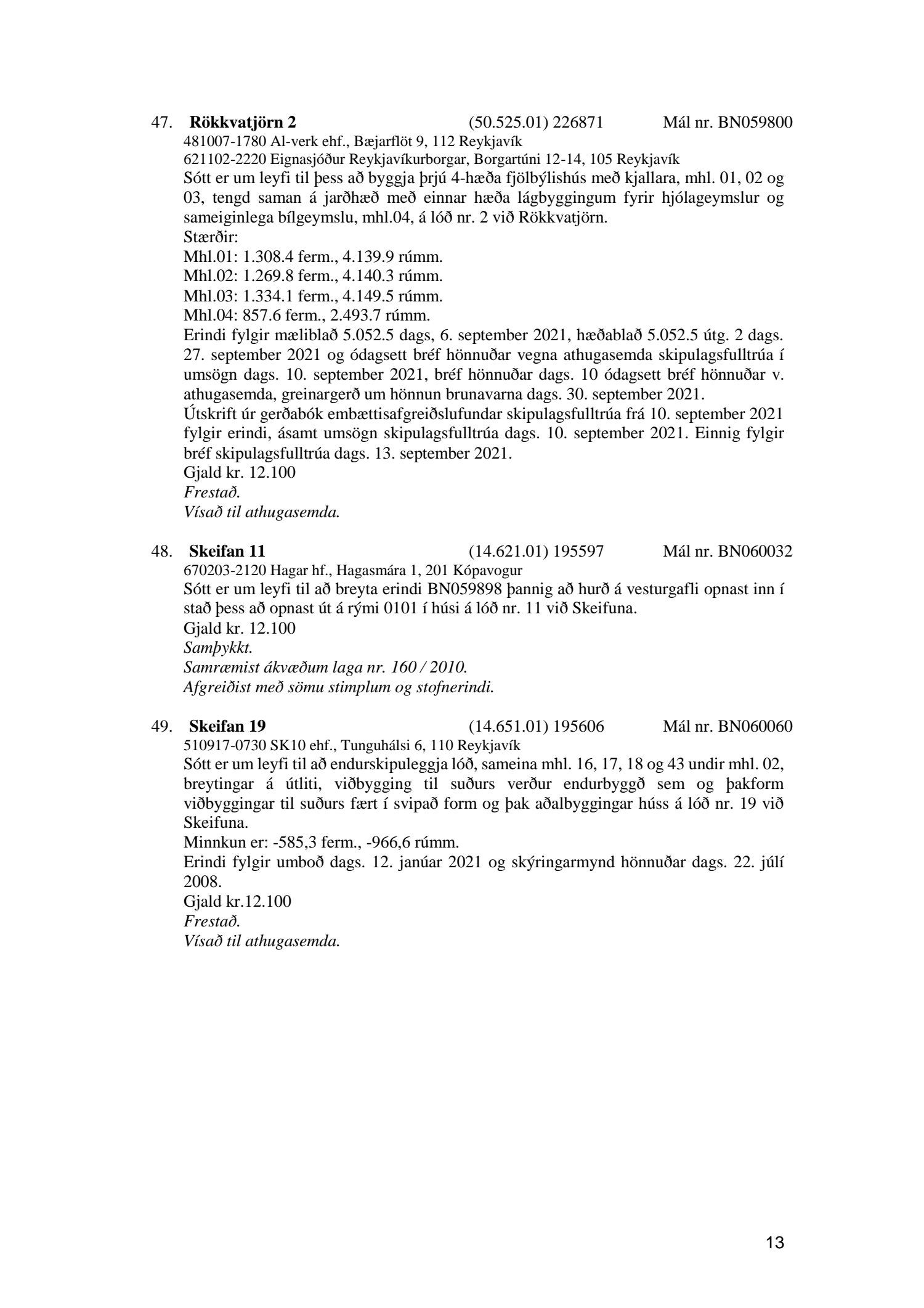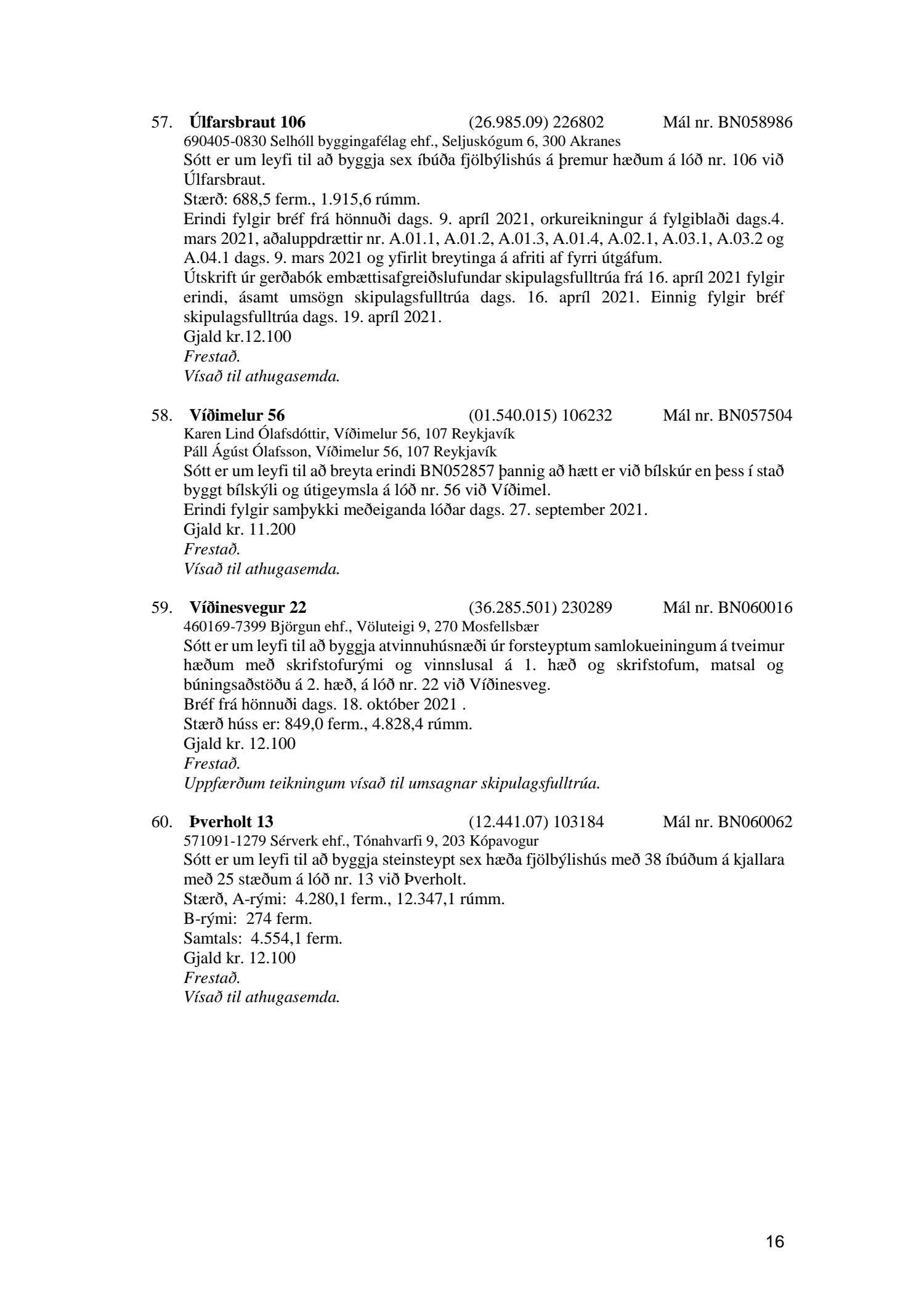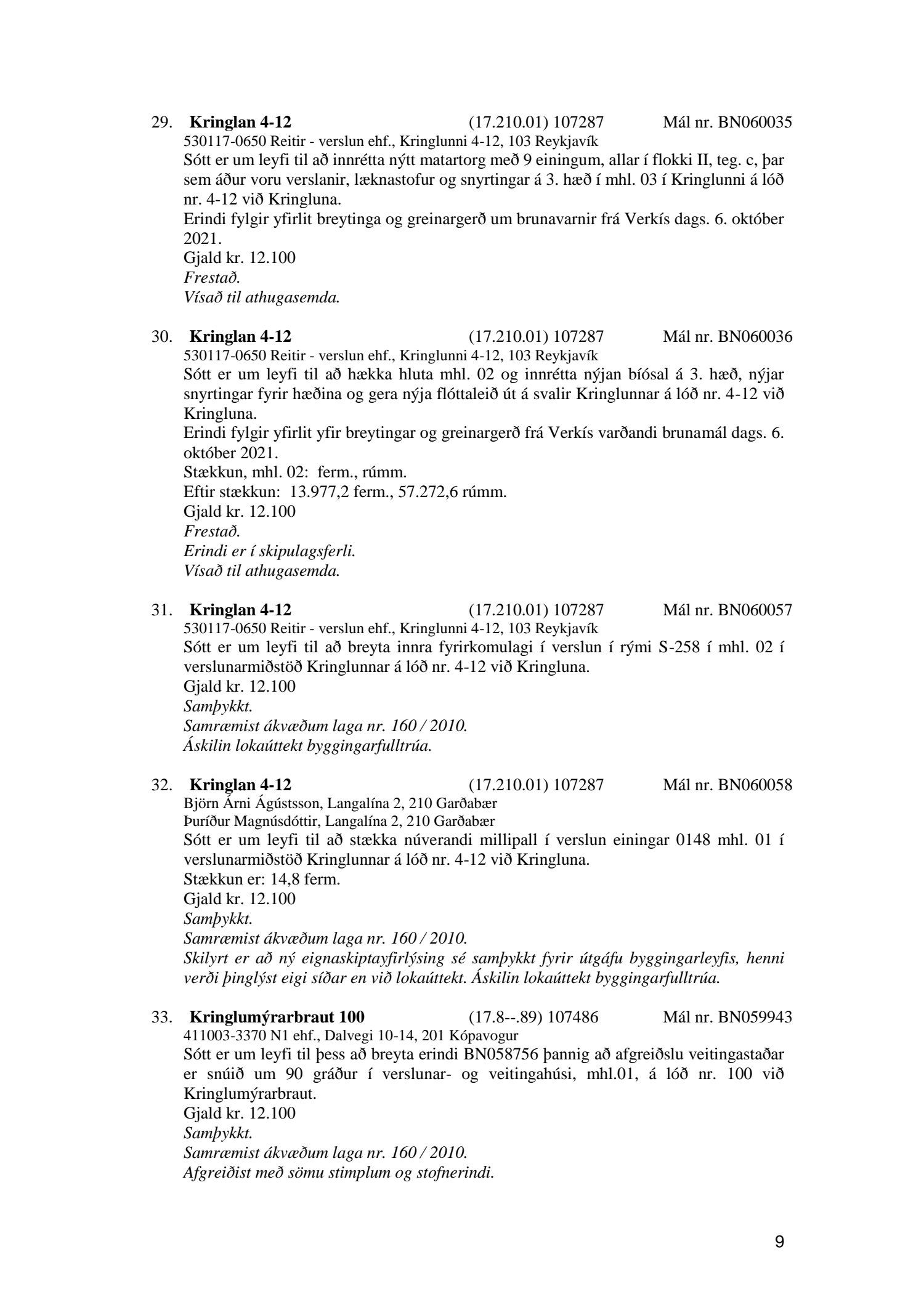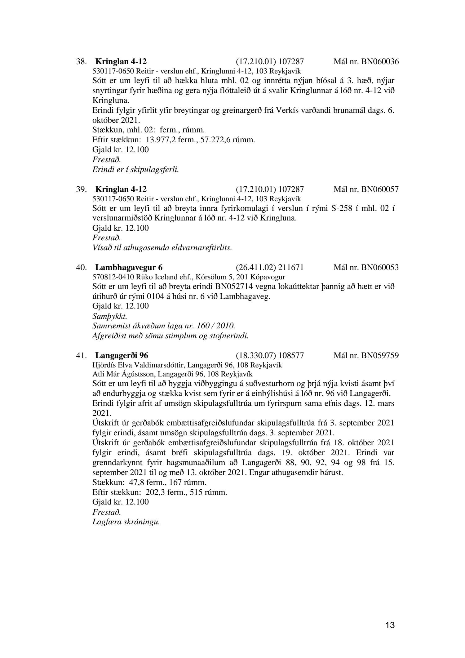 Afgreiðslufundur byggingarfulltrúa, fundargerð