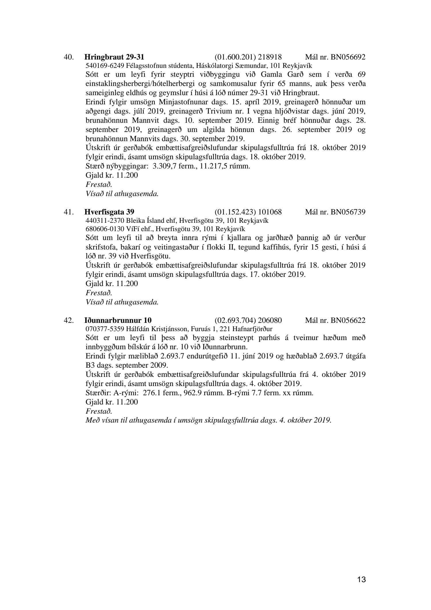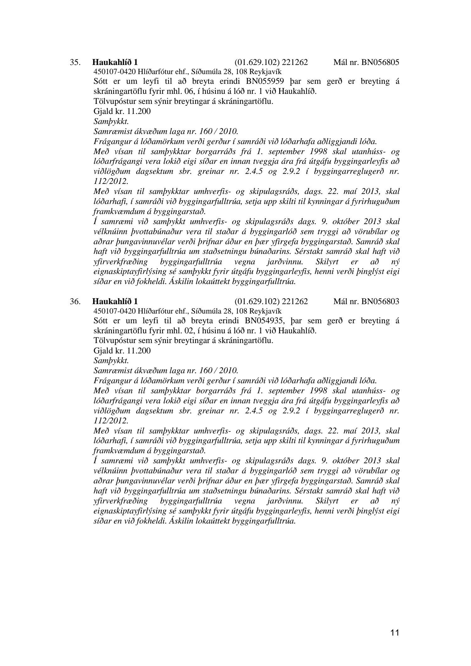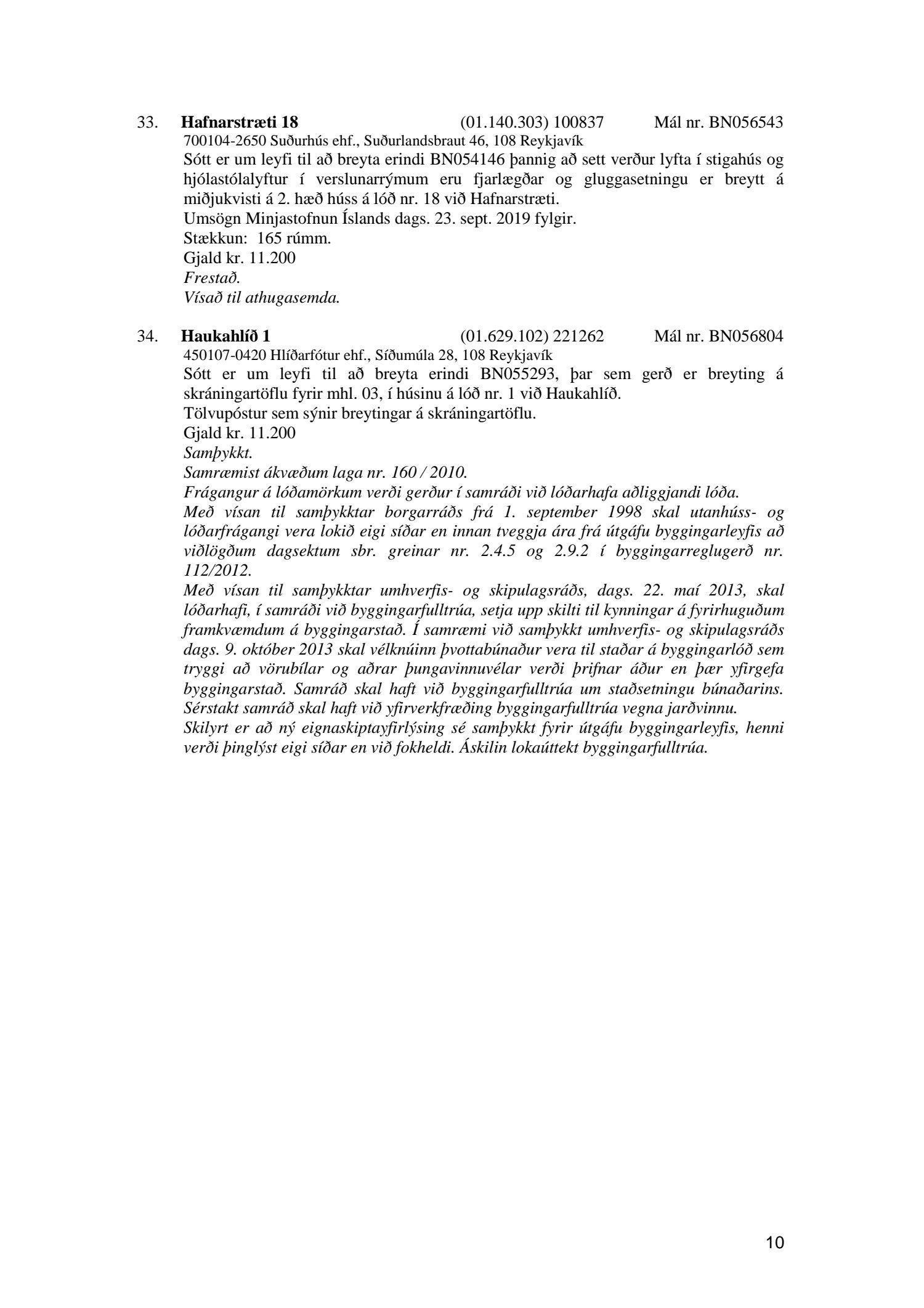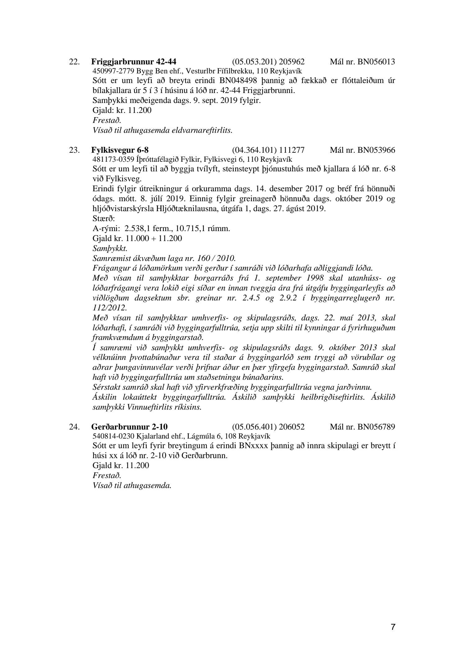 Afgreiðslufundur byggingarfulltrúa, fundargerð