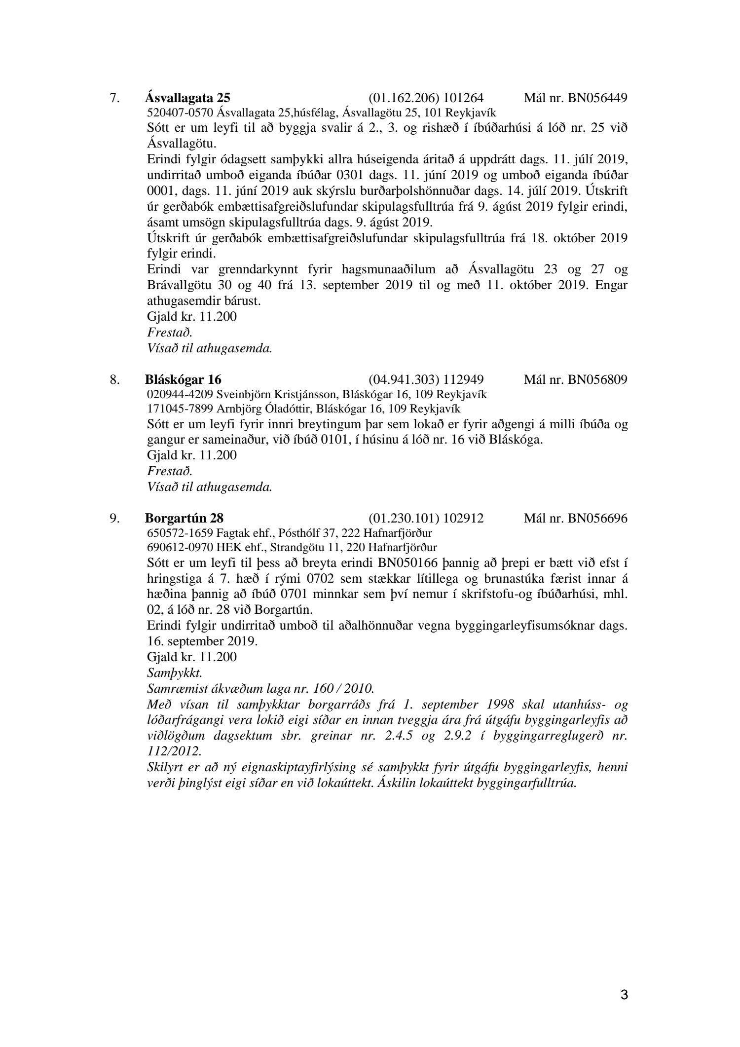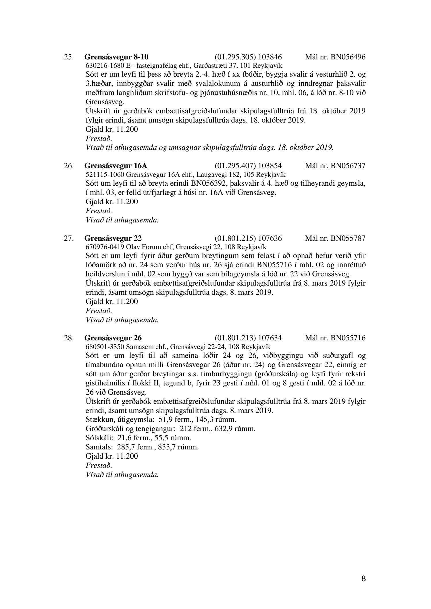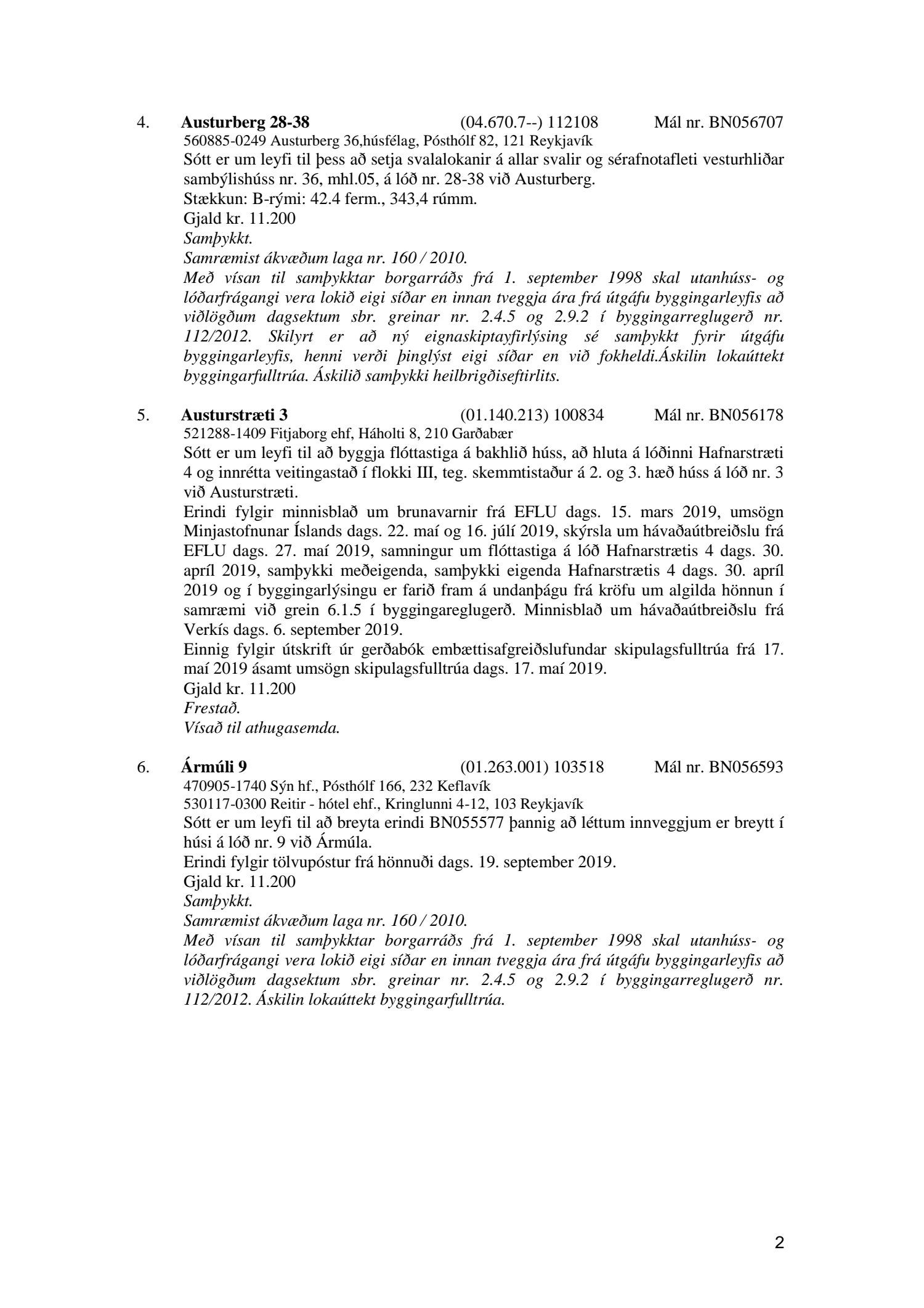 Afgreiðslufundur byggingarfulltrúa, fundargerð