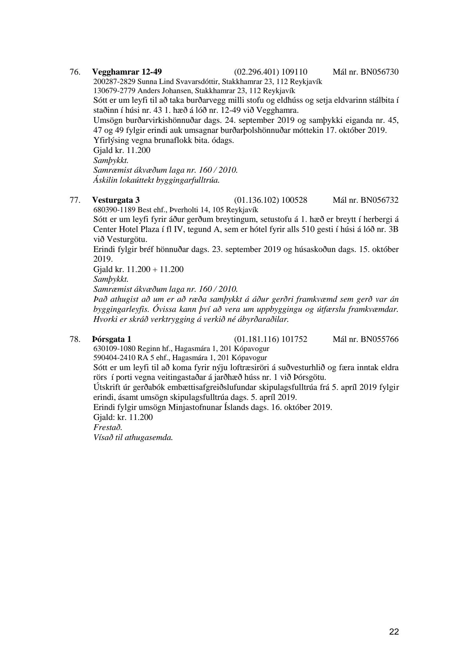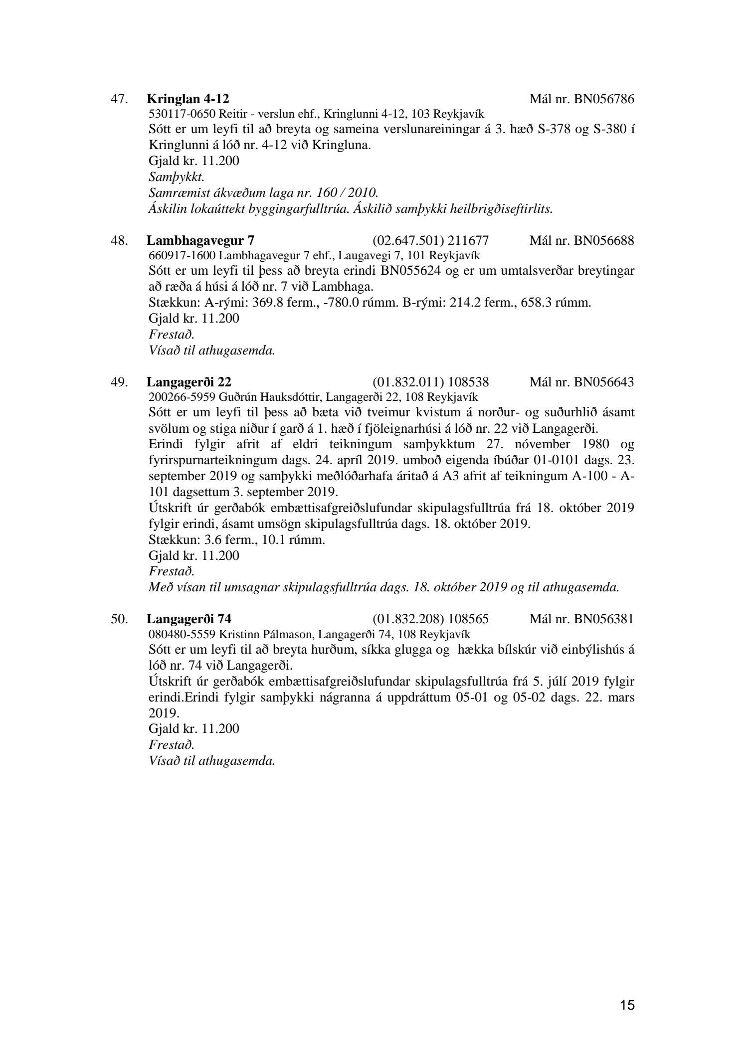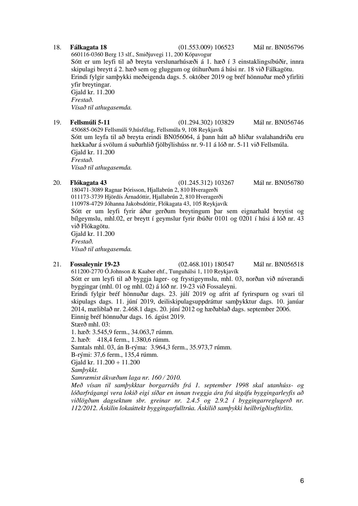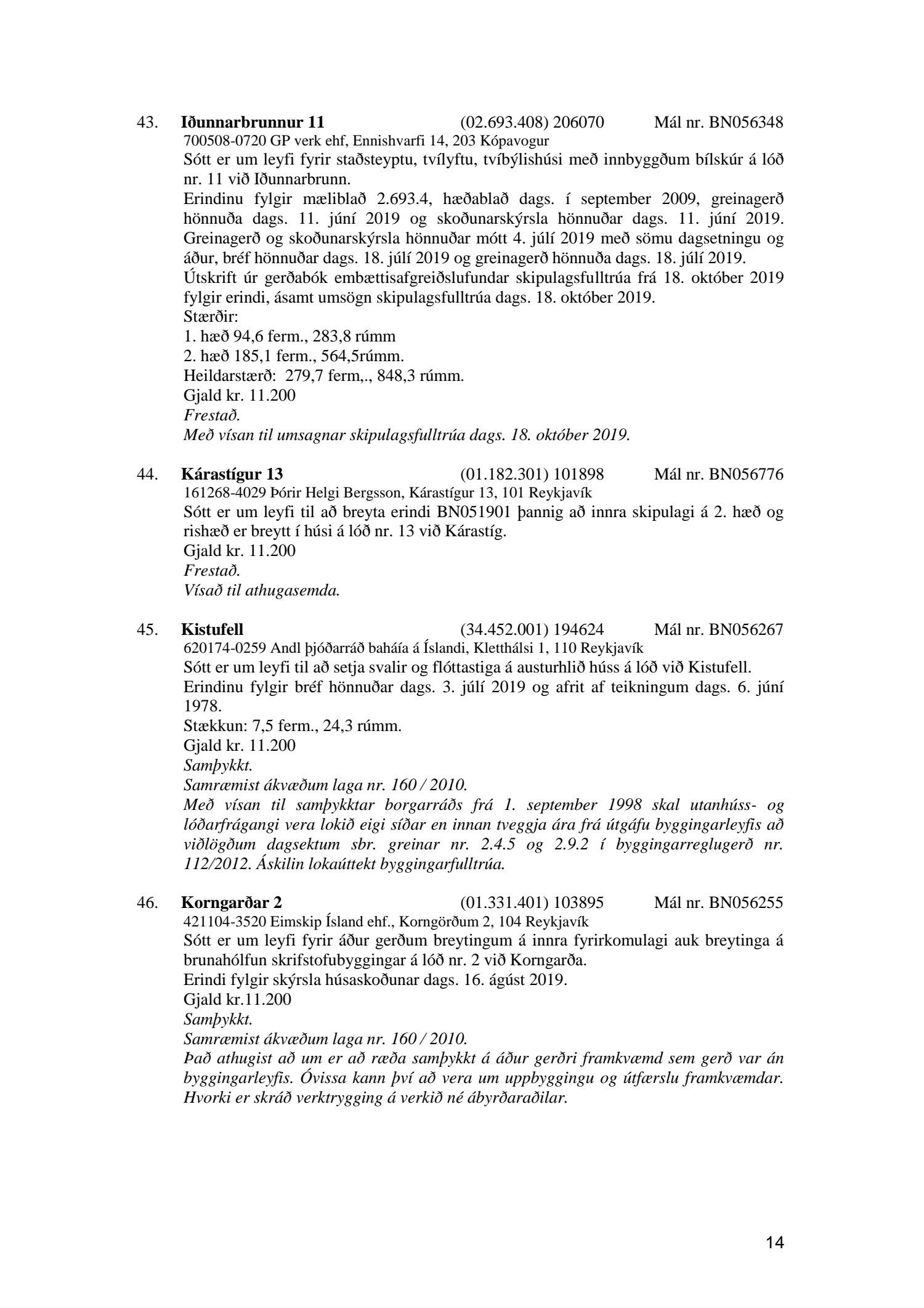 Afgreiðslufundur byggingarfulltrúa, fundargerð