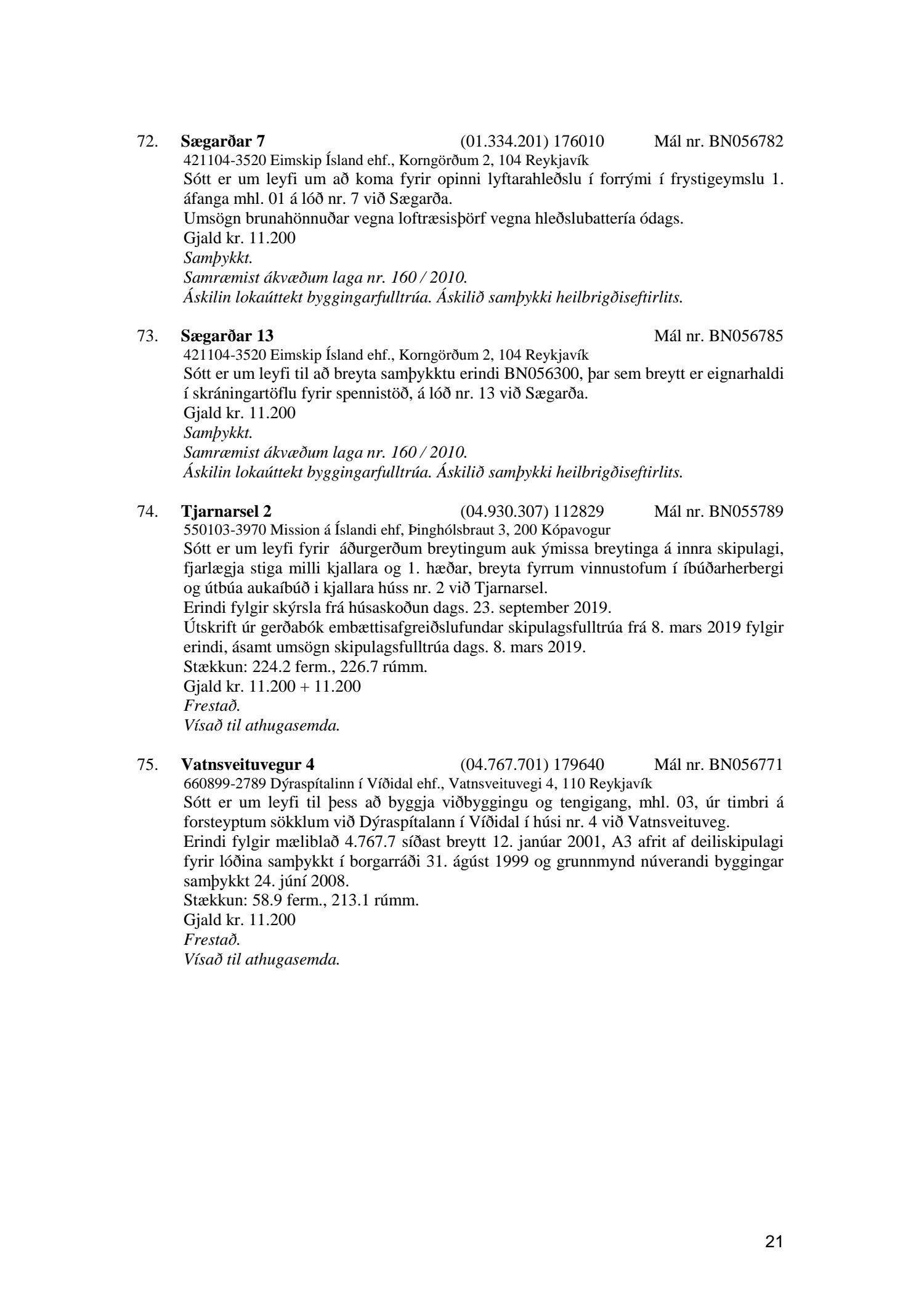 Umhverfis- og skipulagsráð nr. 21