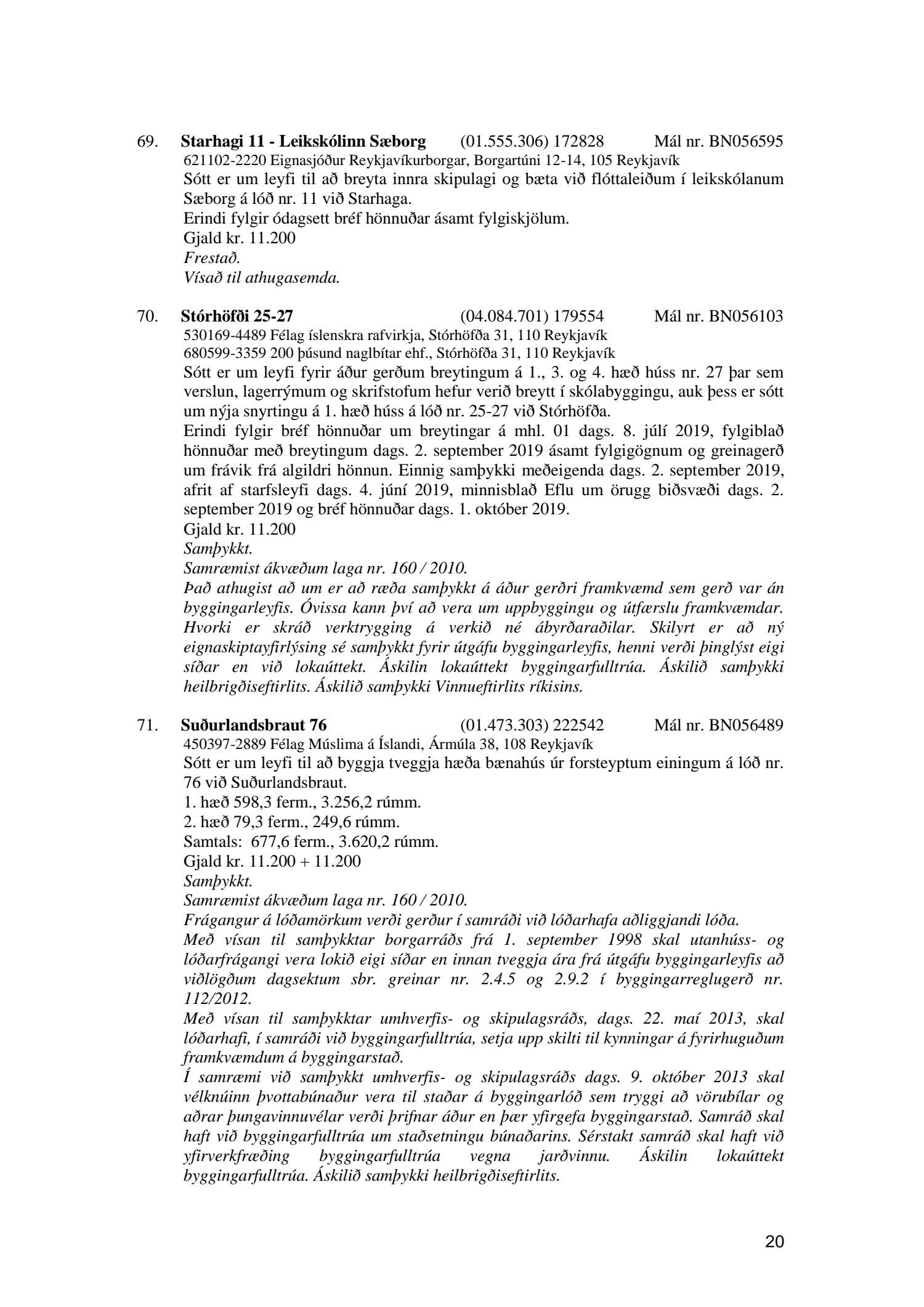 Umhverfis- og skipulagsráð nr. 20