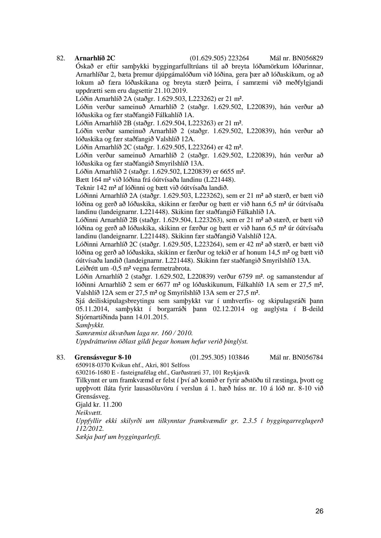 Umhverfis- og skipulagsráð nr. 26