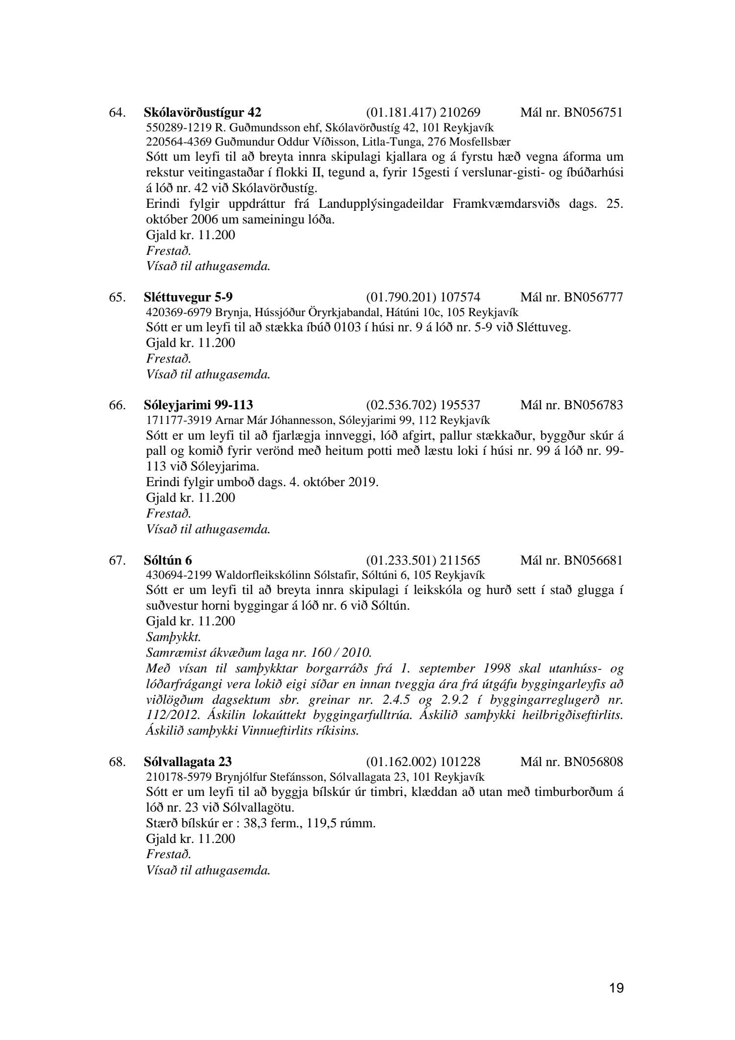 Umhverfis- og skipulagsráð nr. 19