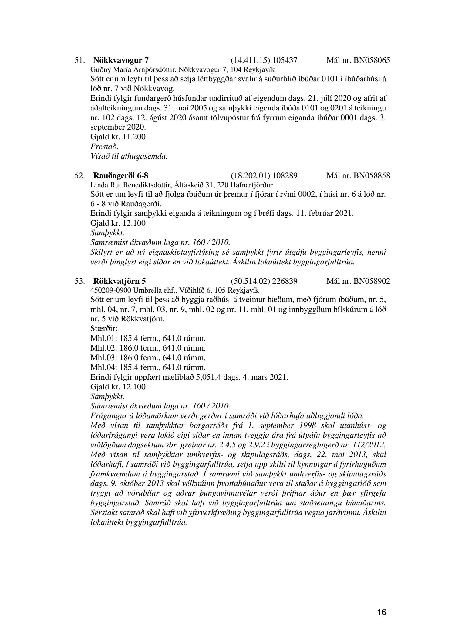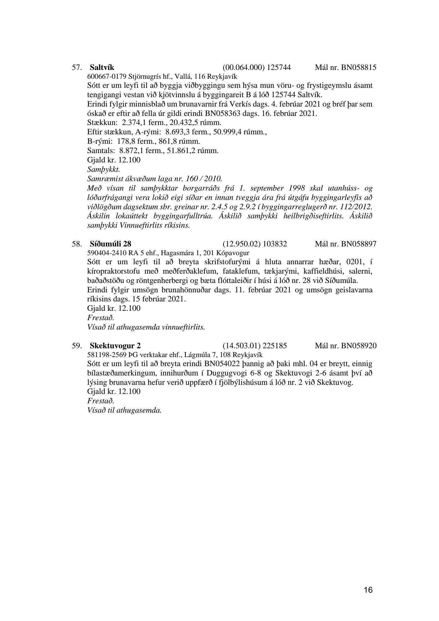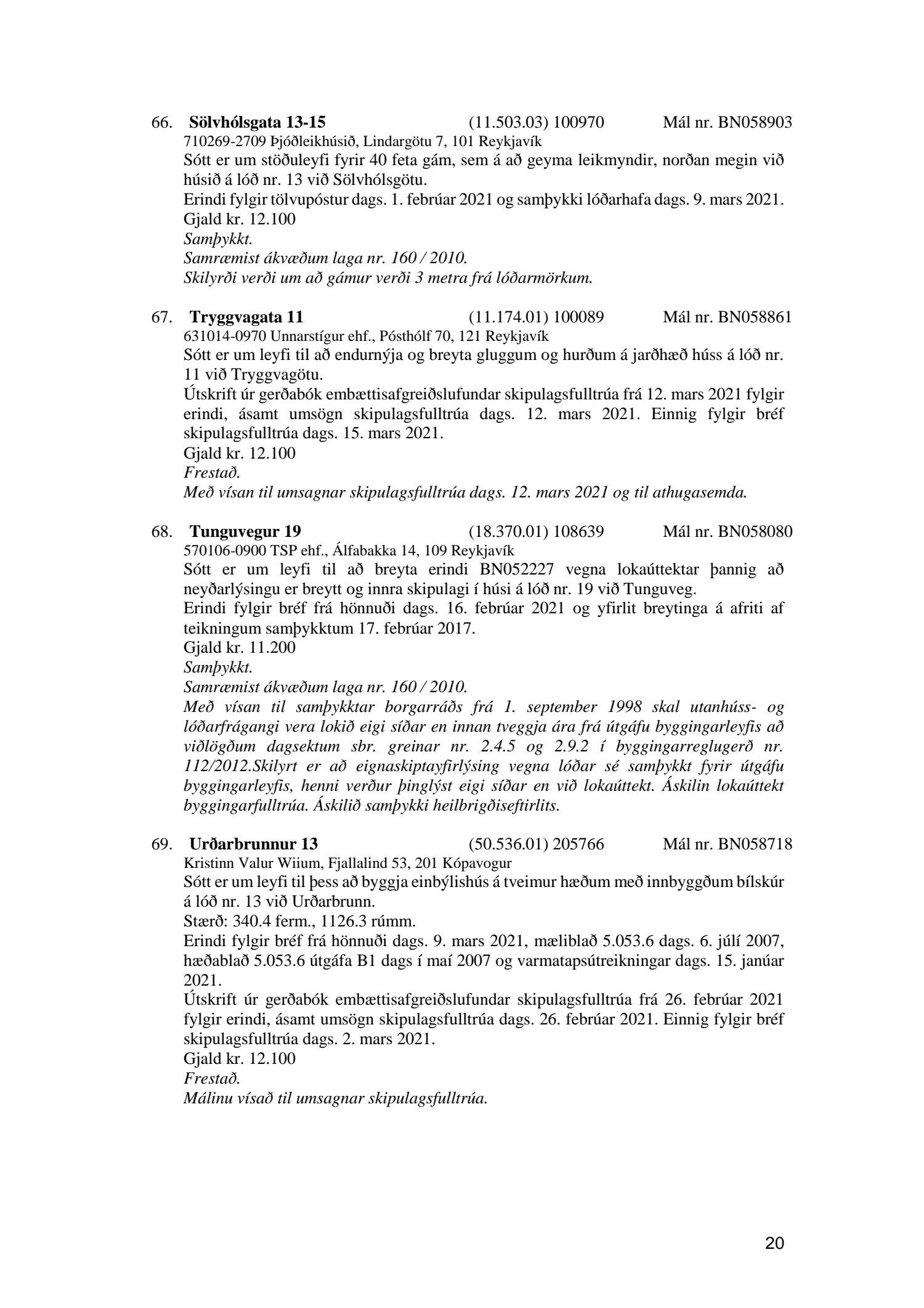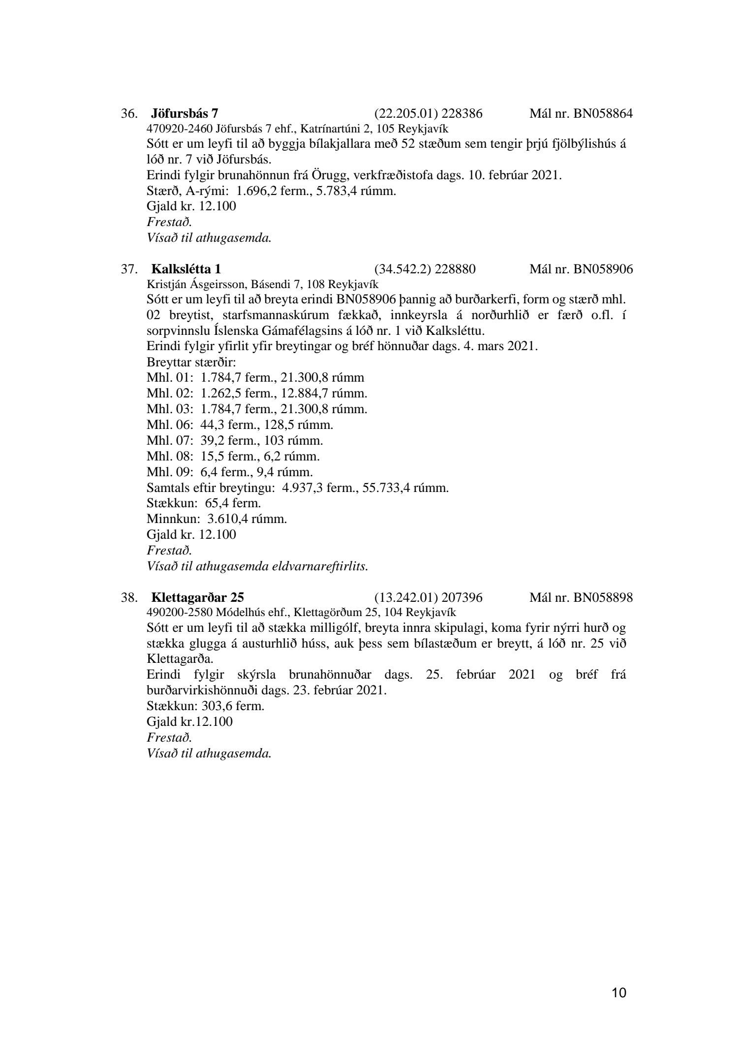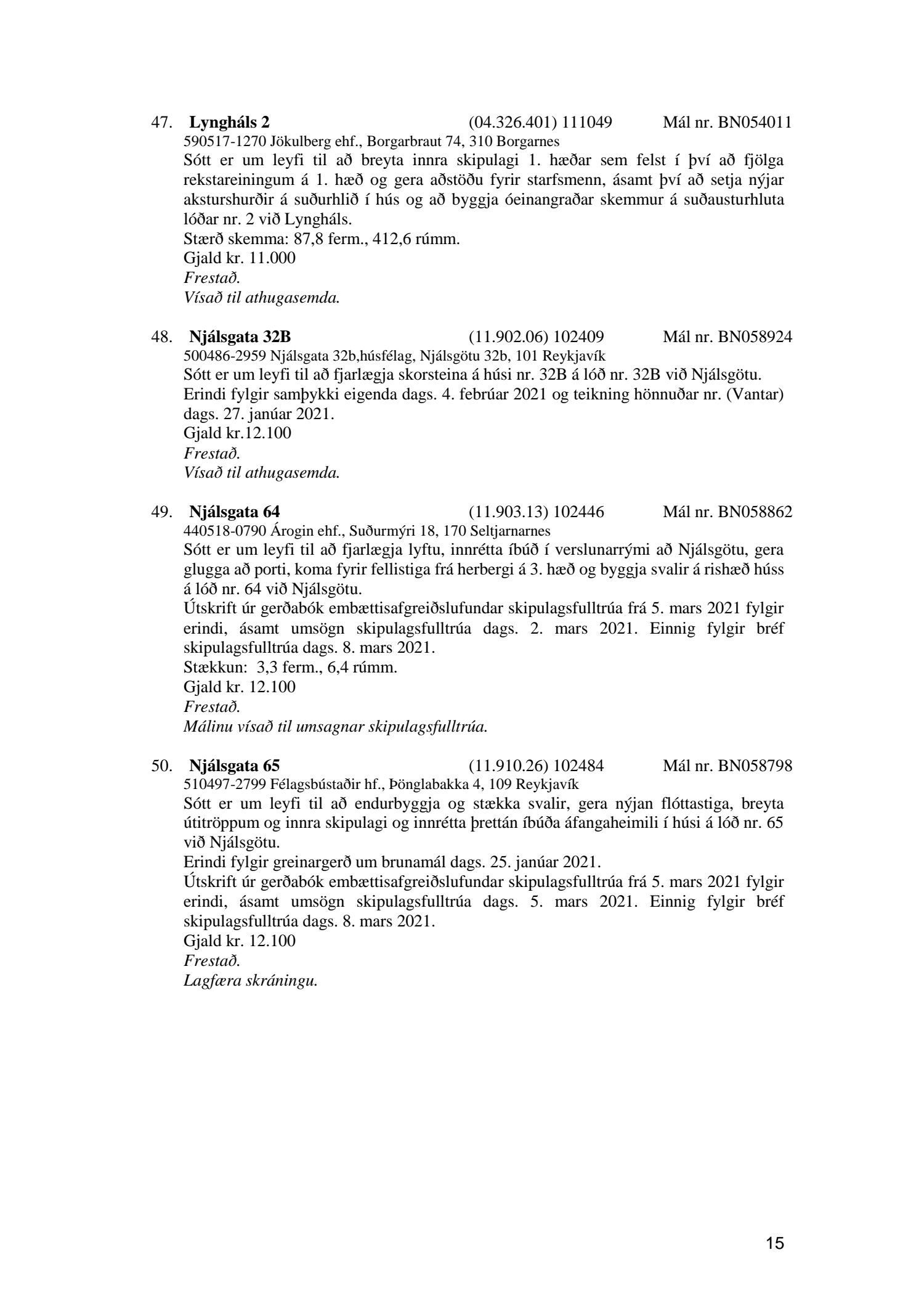Fylgiskjal með fundargerð þessari eru fundargerðir afgreiðslufundar byggingarfulltrúa nr. 1106 frá 9. mars 2021 og nr. 1107 frá 16. mars 2021.