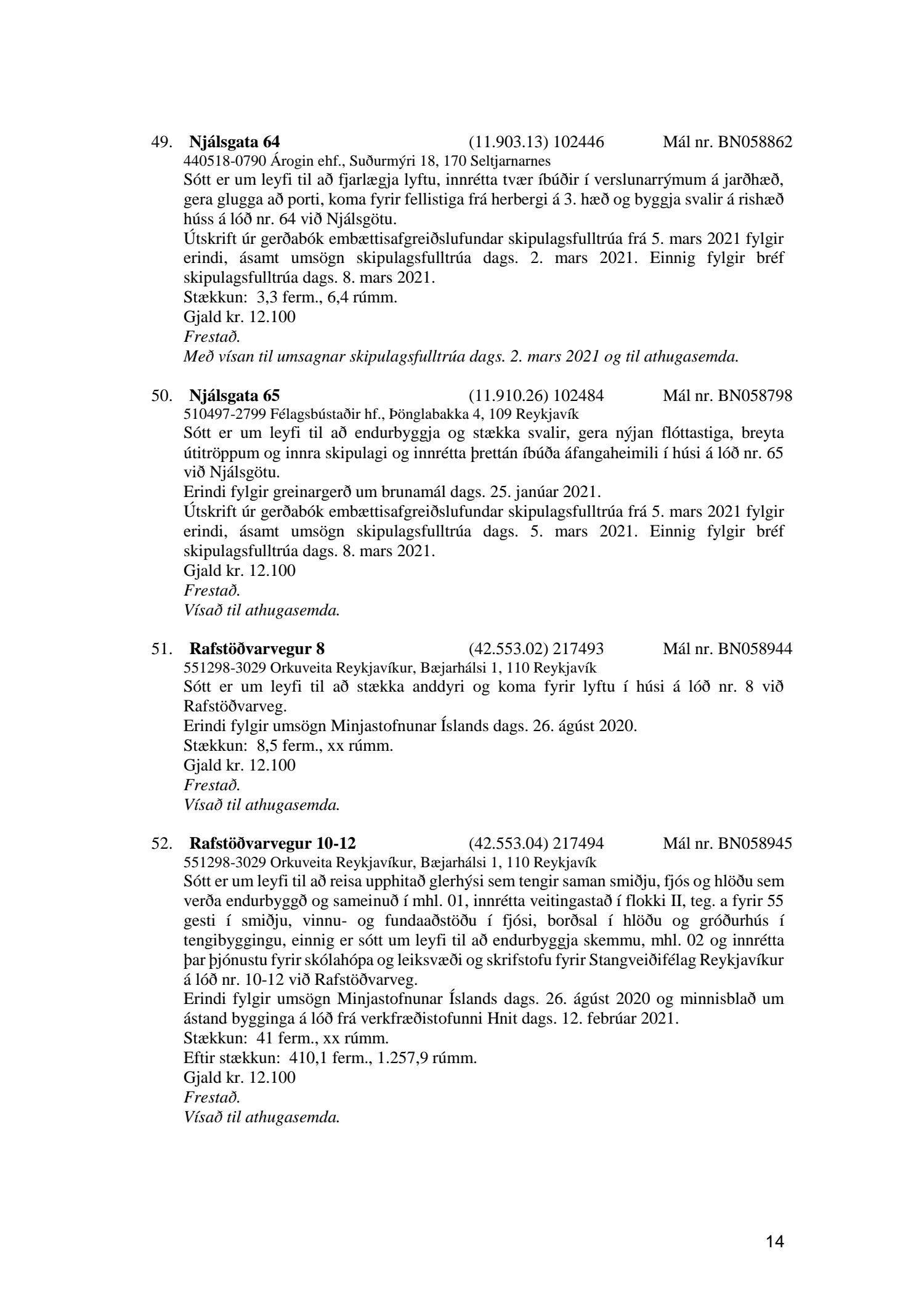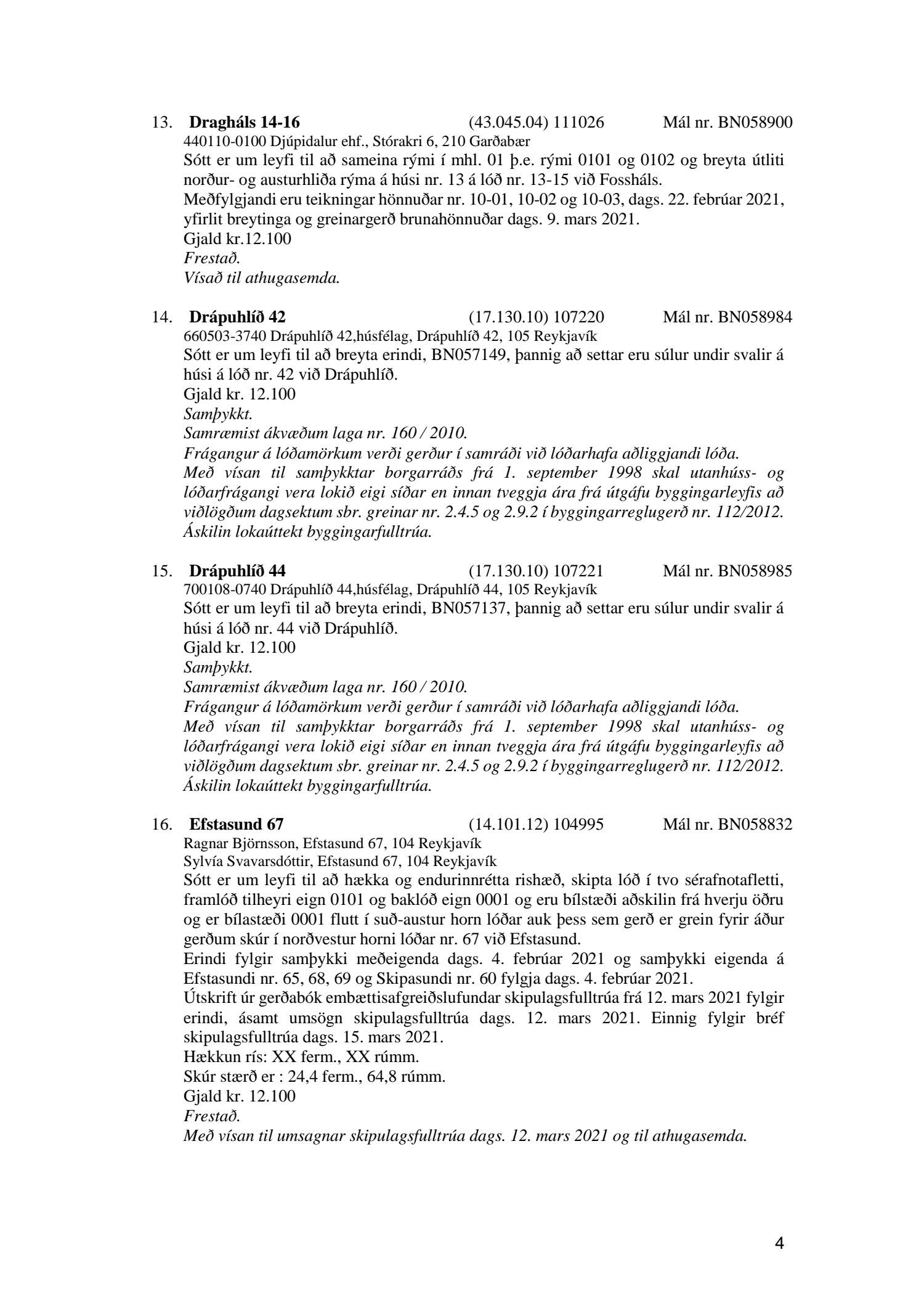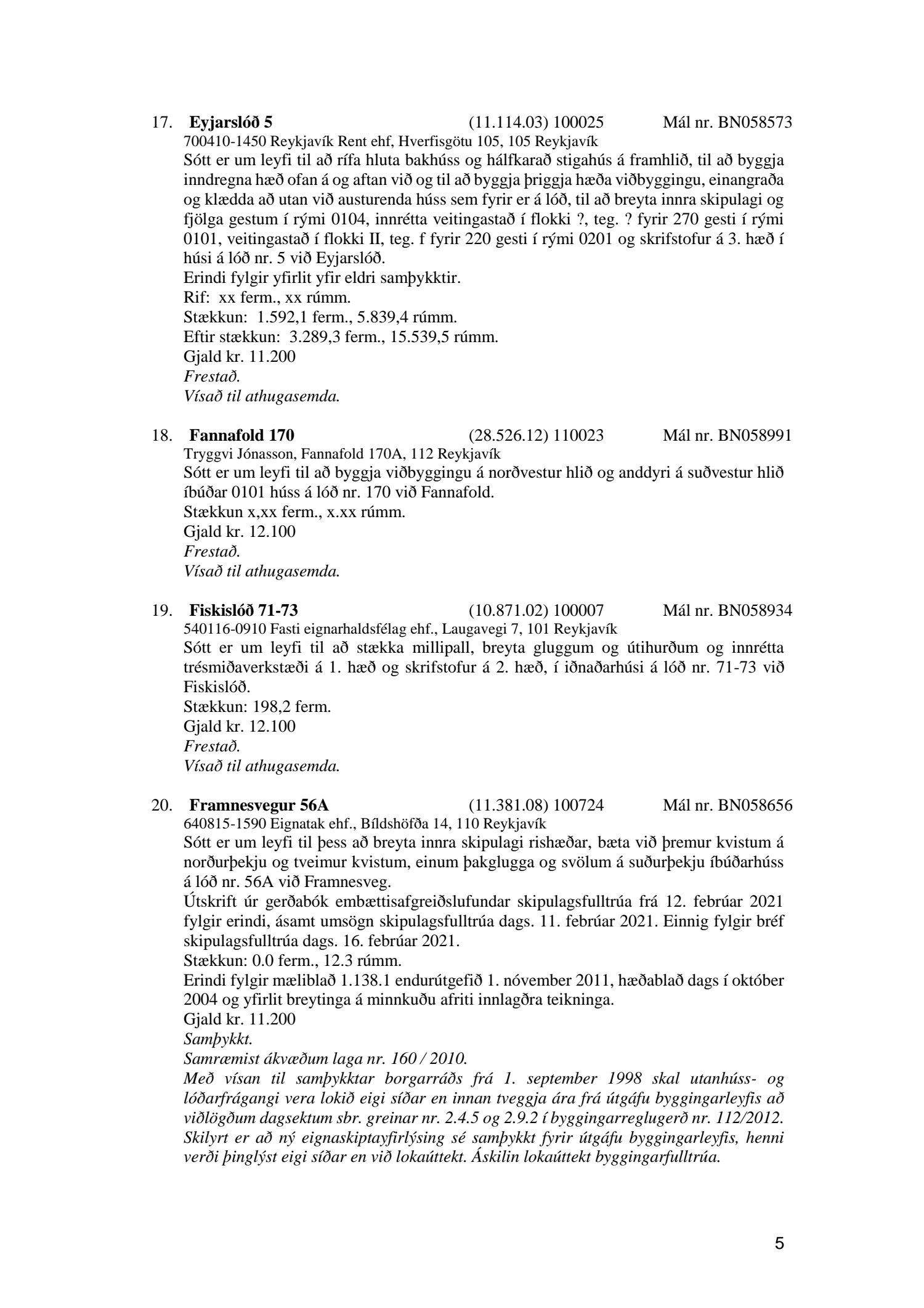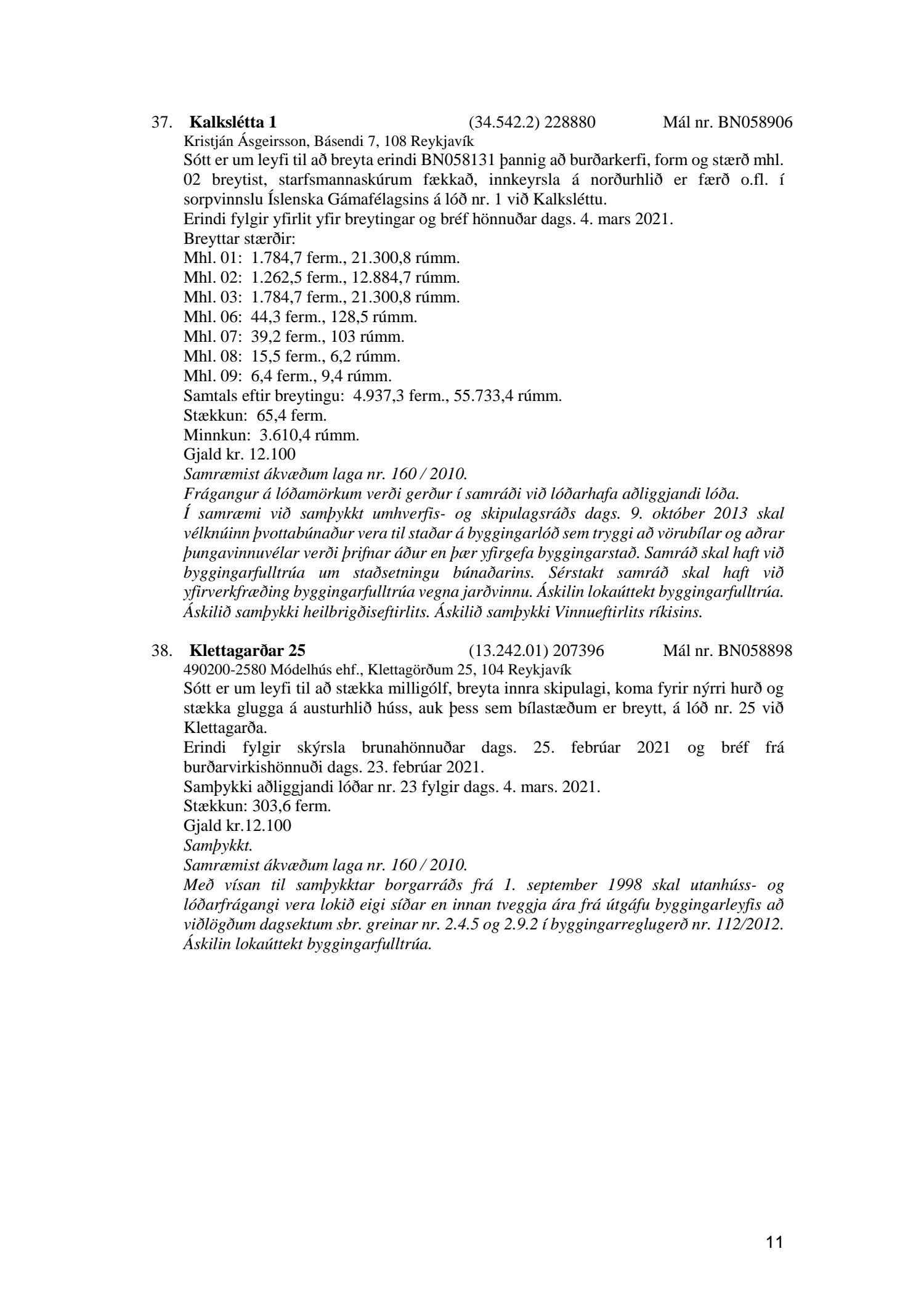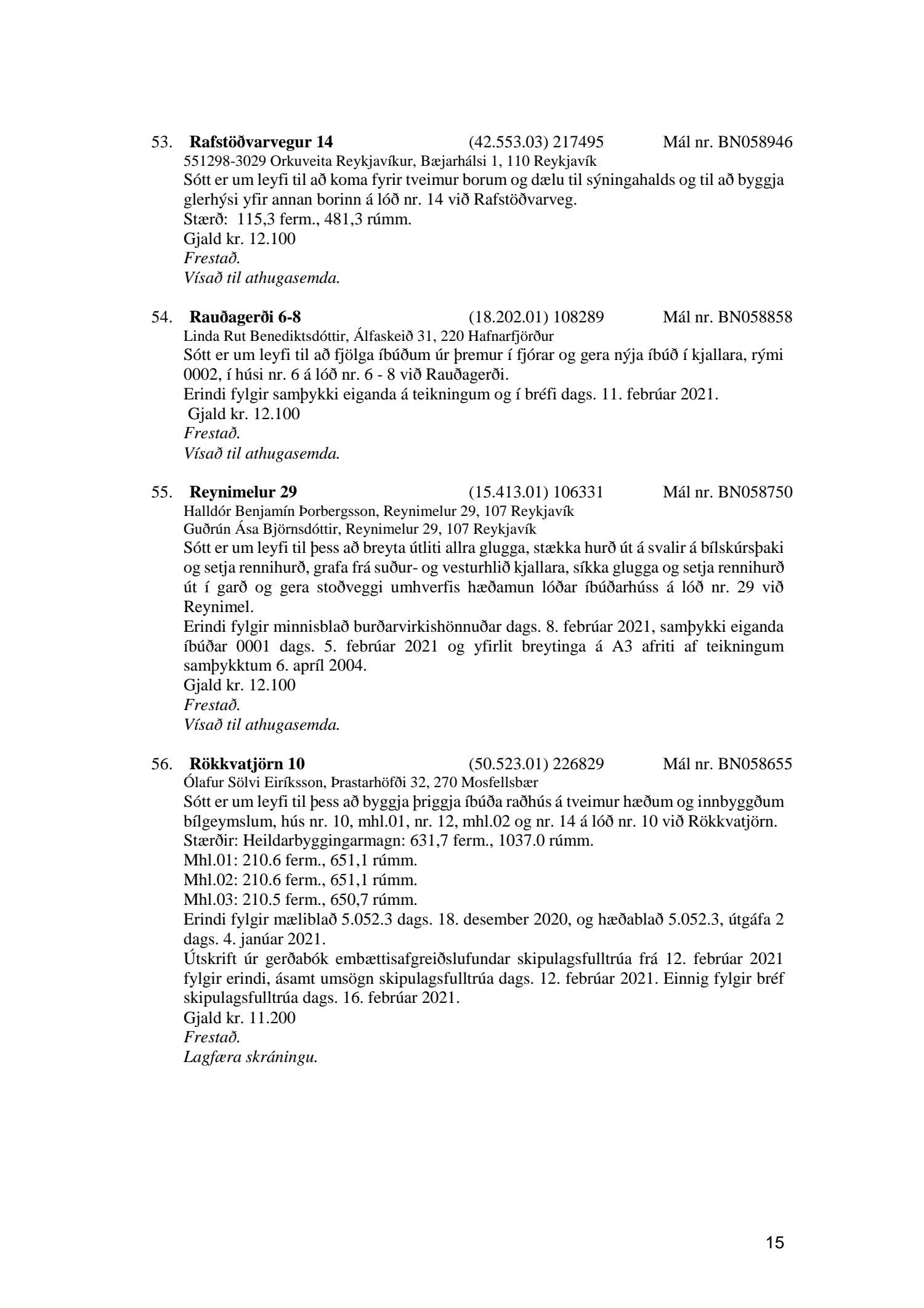 Fylgiskjal með fundargerð þessari eru fundargerðir afgreiðslufundar byggingarfulltrúa nr. 1106 frá 9. mars 2021 og nr. 1107 frá 16. mars 2021.