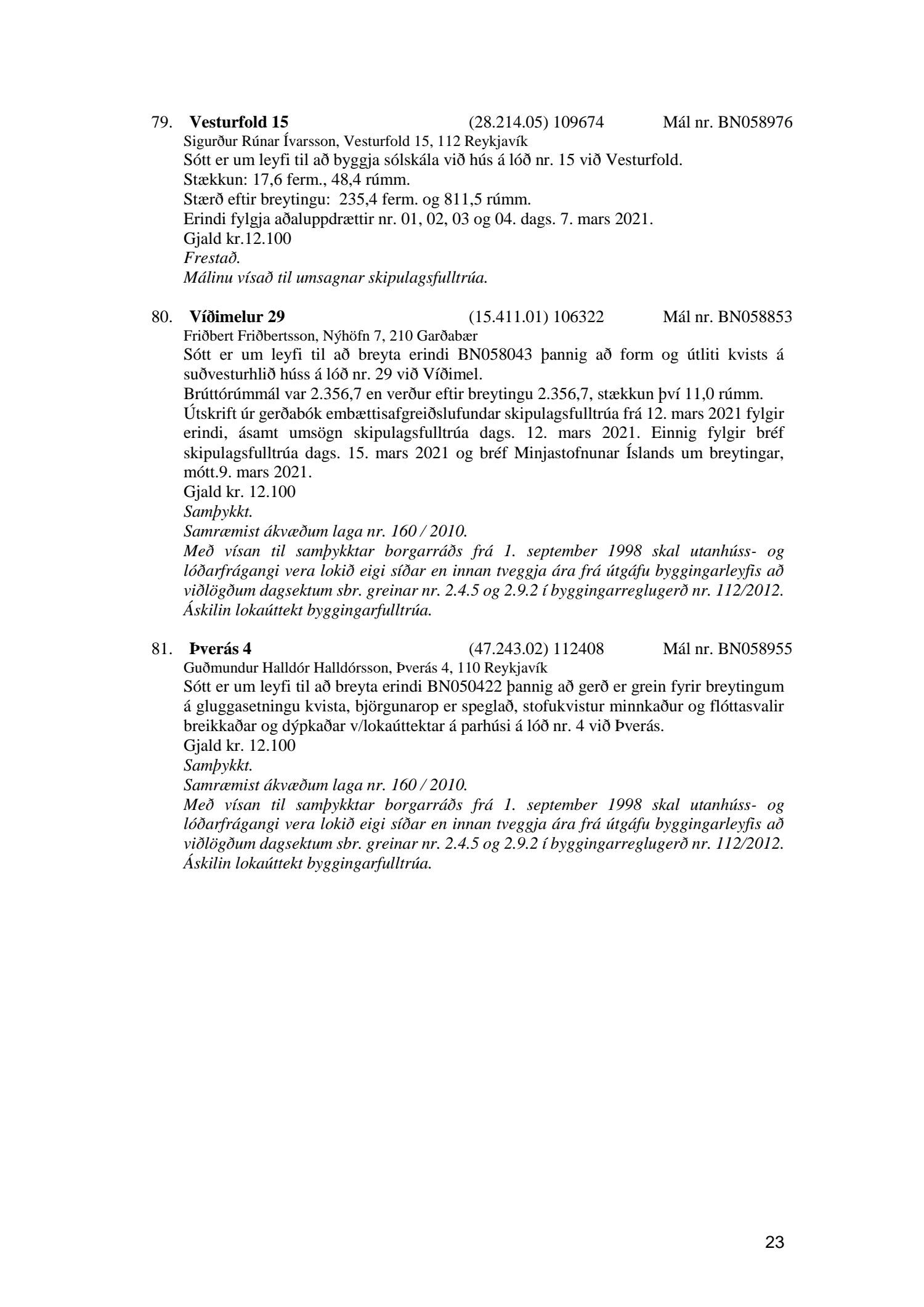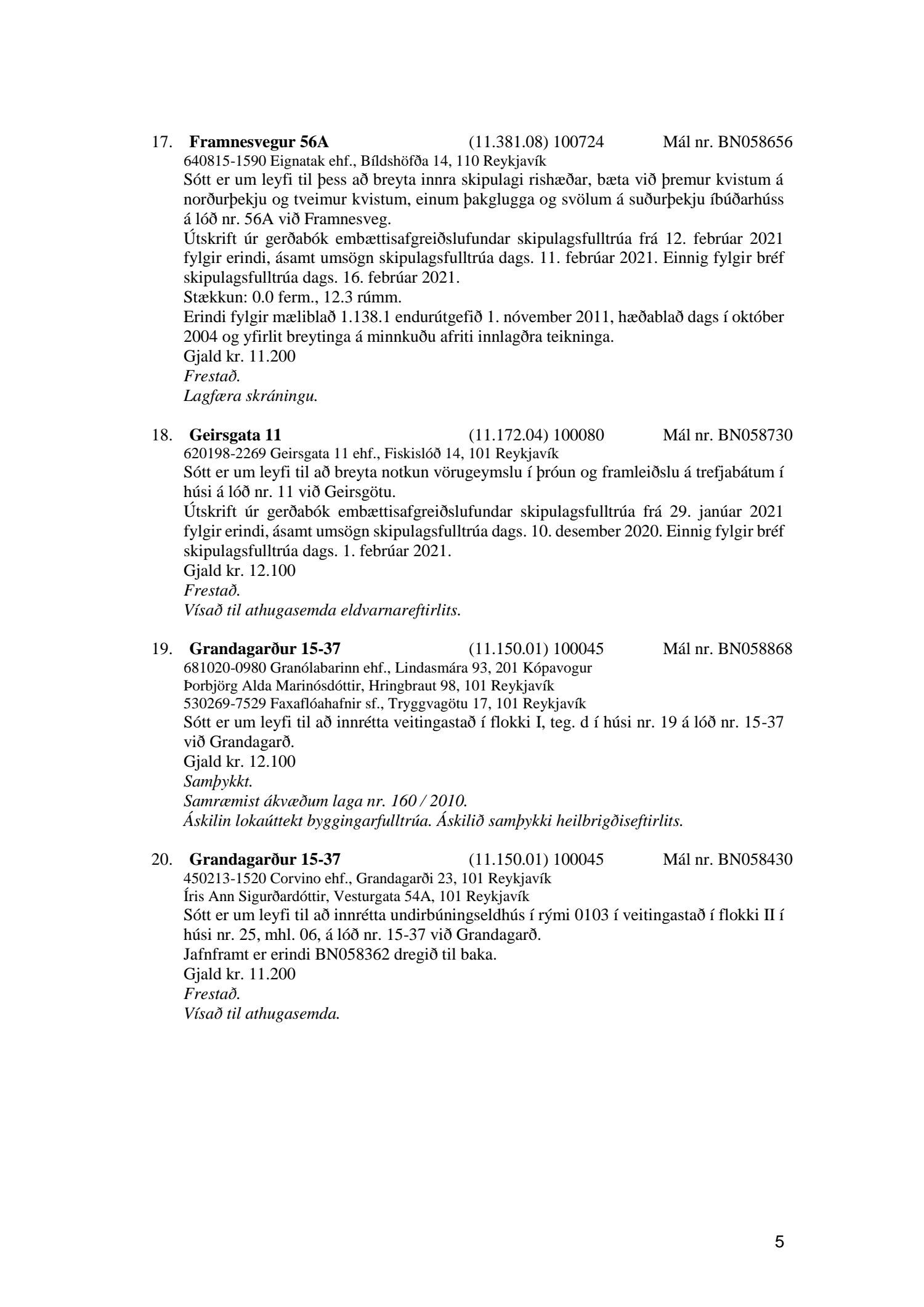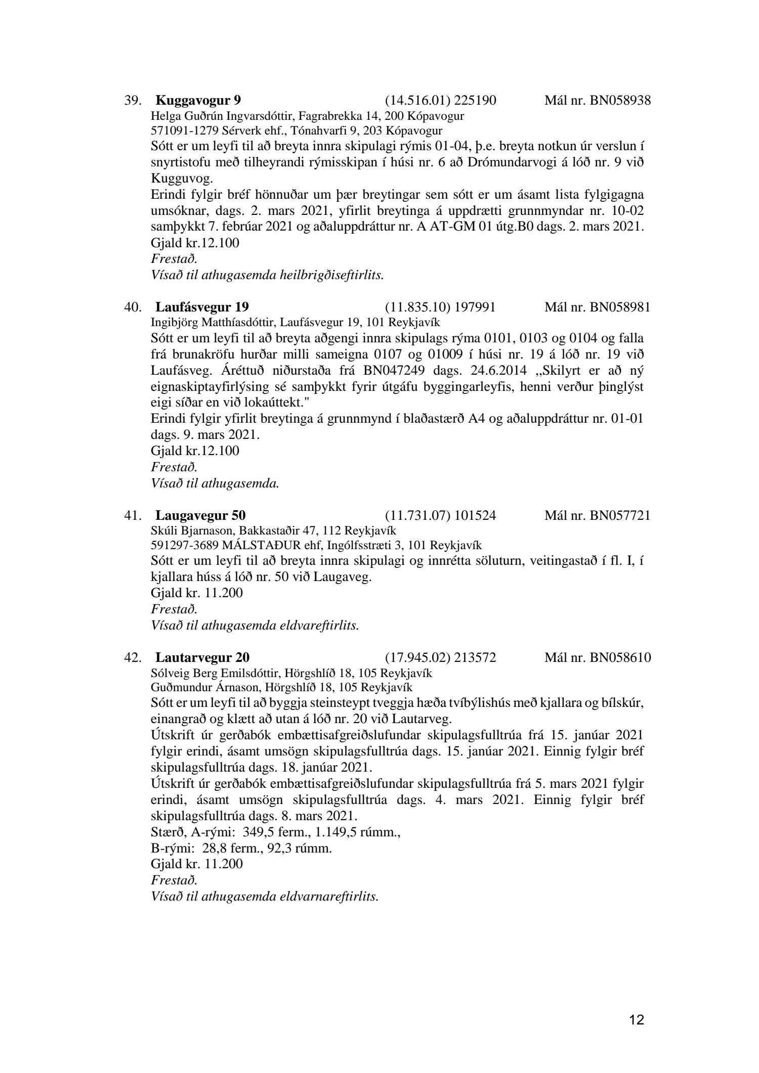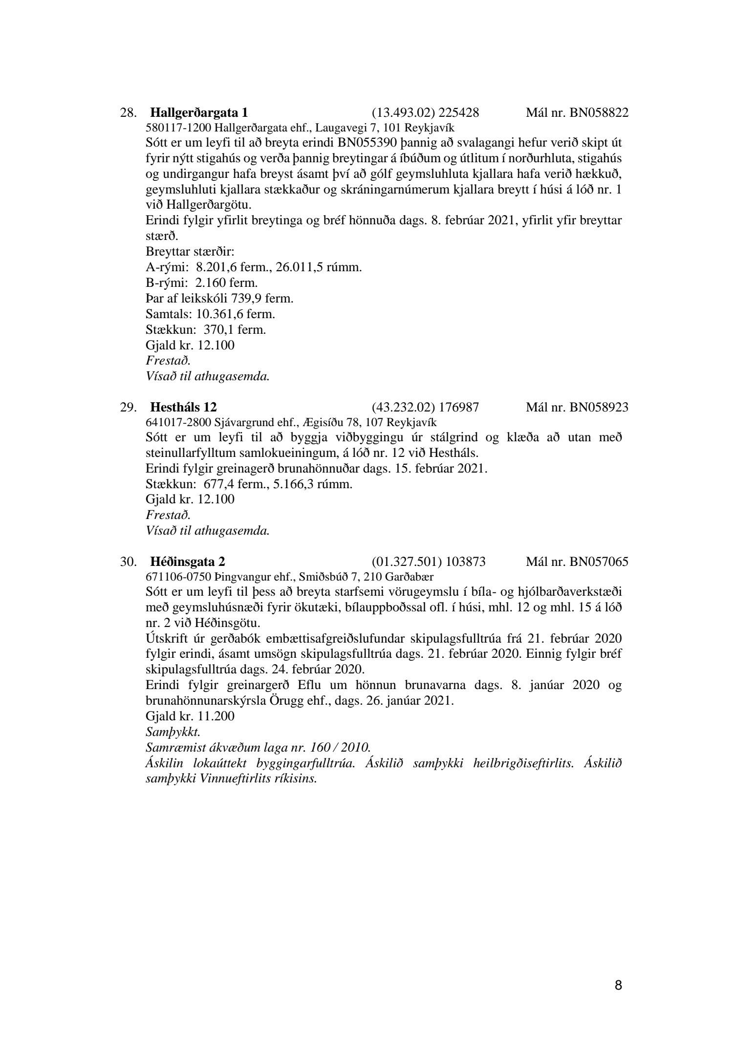 Fylgiskjal með fundargerð þessari eru fundargerðir afgreiðslufundar byggingarfulltrúa nr. 1106 frá 9. mars 2021 og nr. 1107 frá 16. mars 2021.