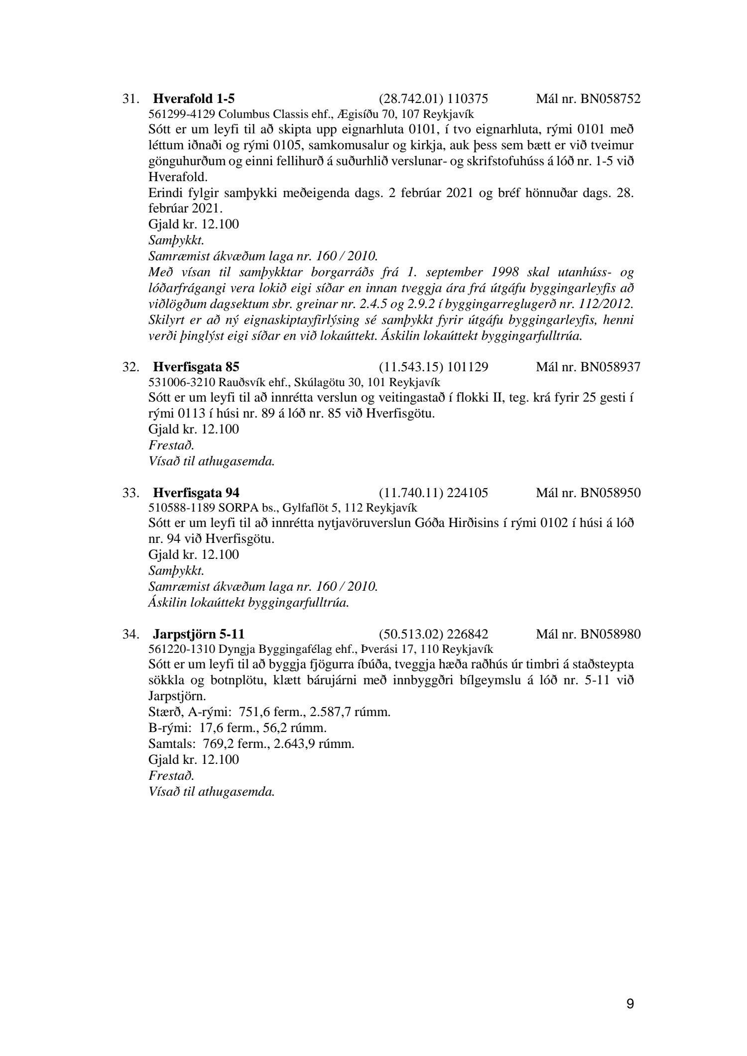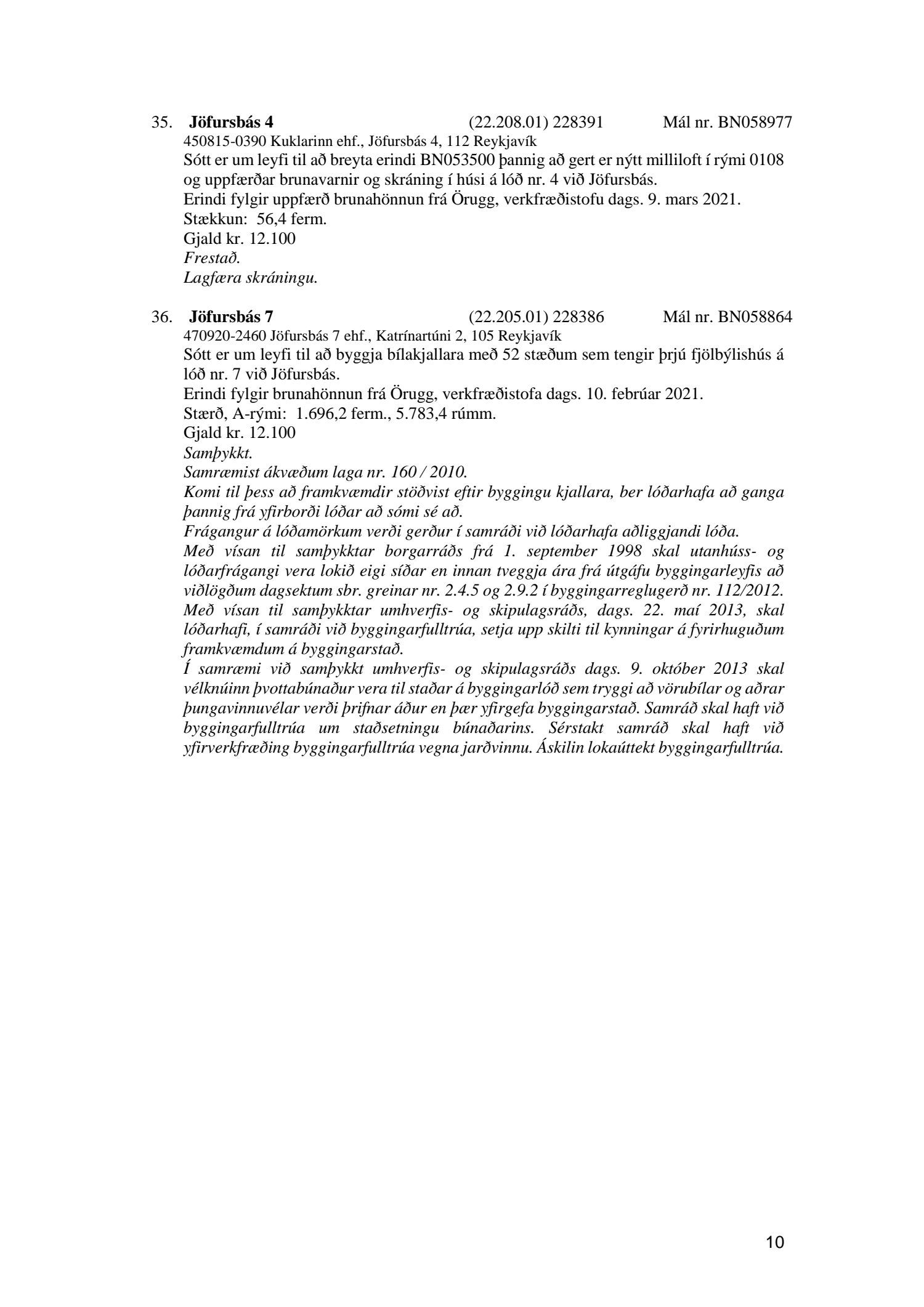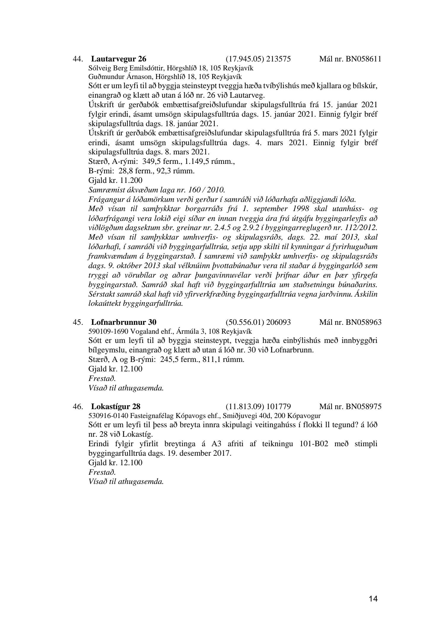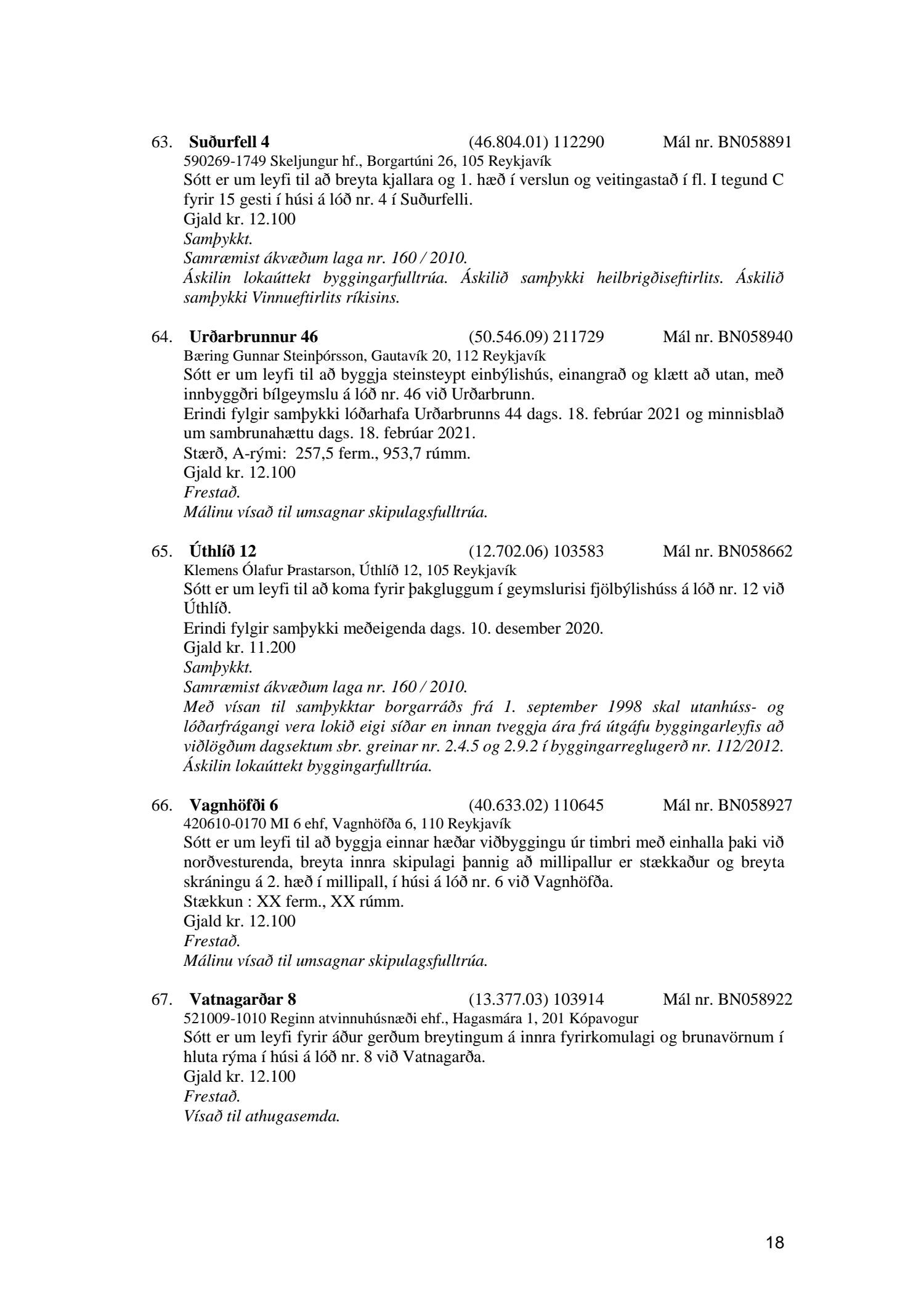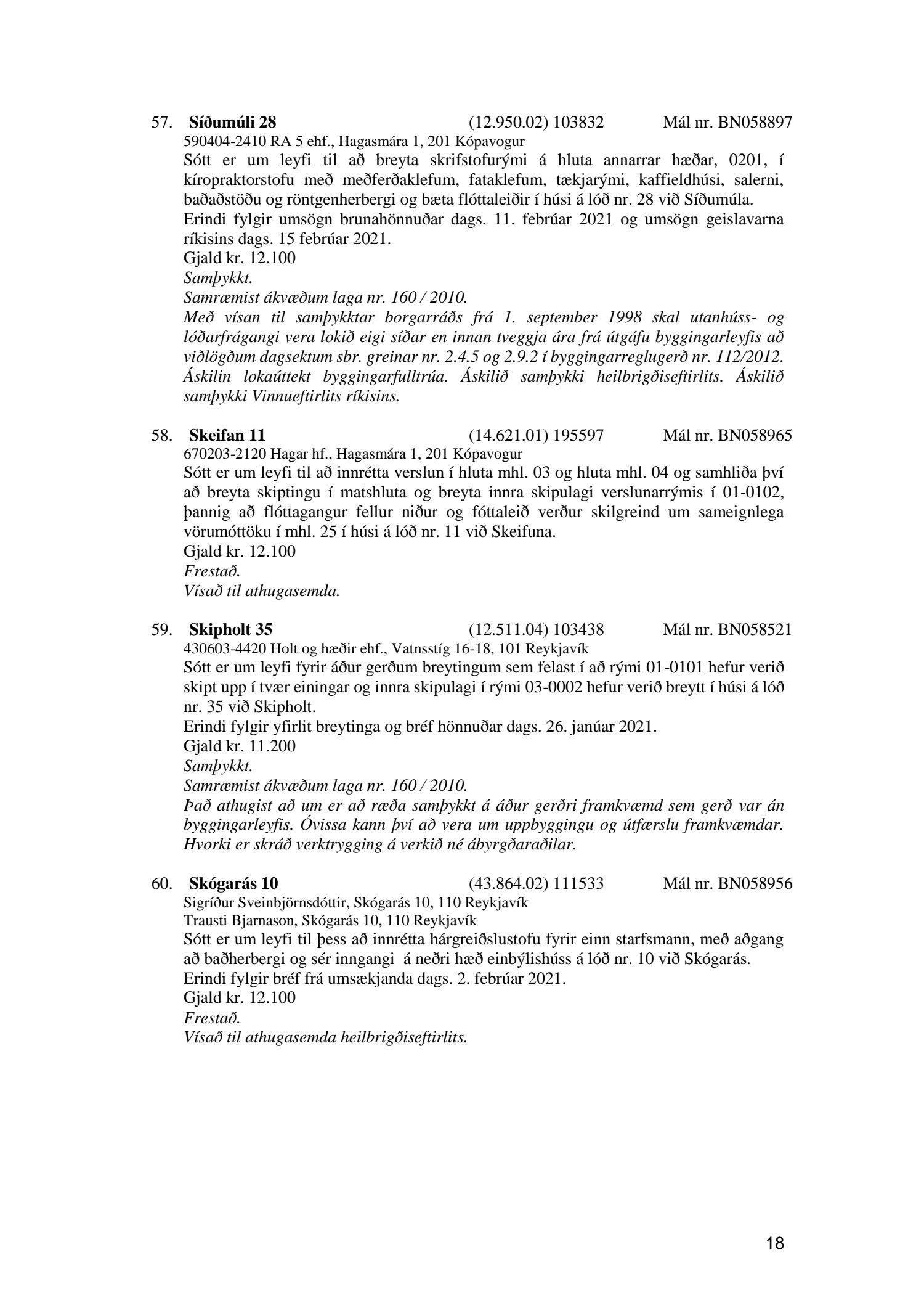Fylgiskjal með fundargerð þessari eru fundargerðir afgreiðslufundar byggingarfulltrúa nr. 1106 frá 9. mars 2021 og nr. 1107 frá 16. mars 2021.
