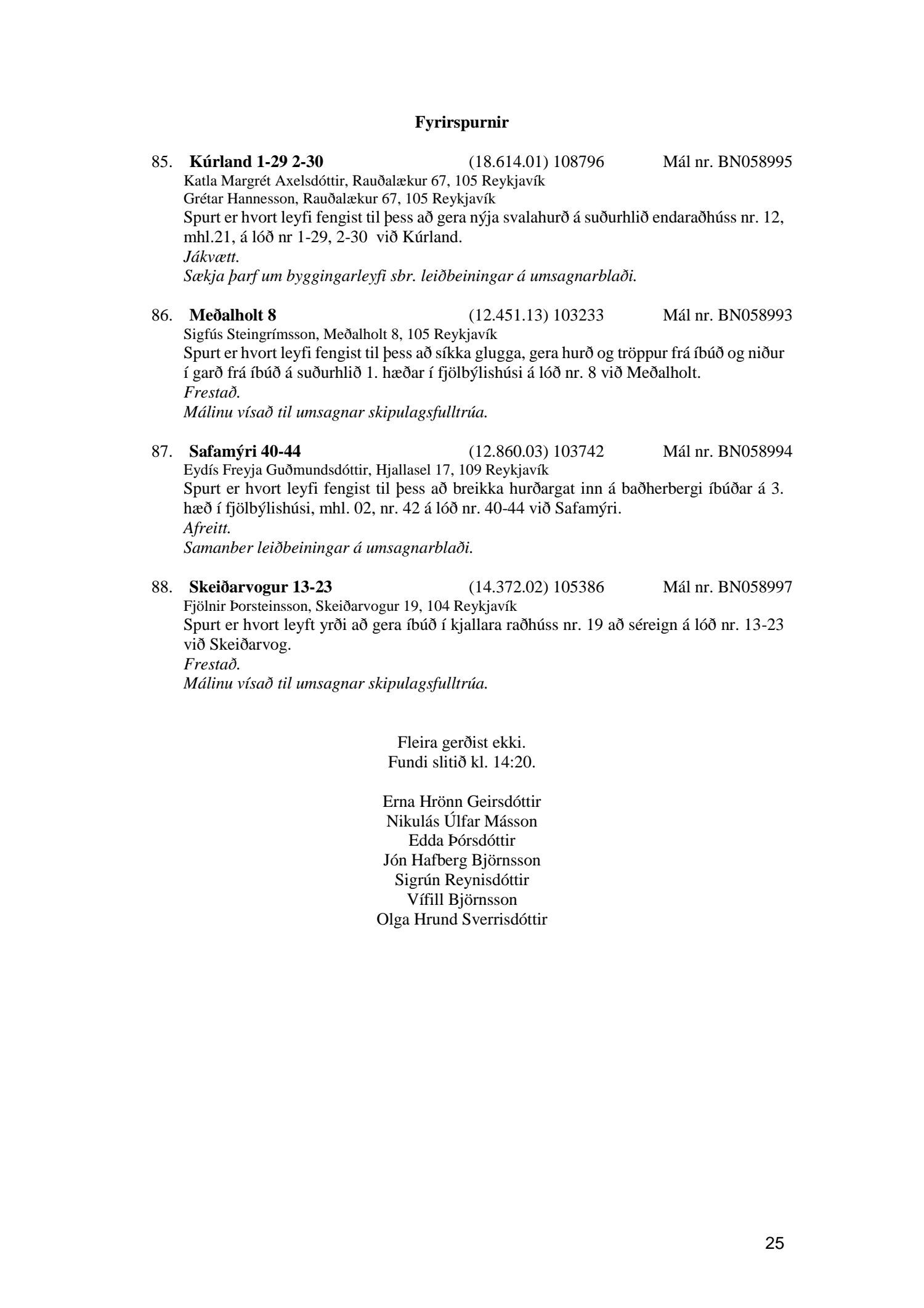 Umhverfis- og skipulagsráð nr. 25