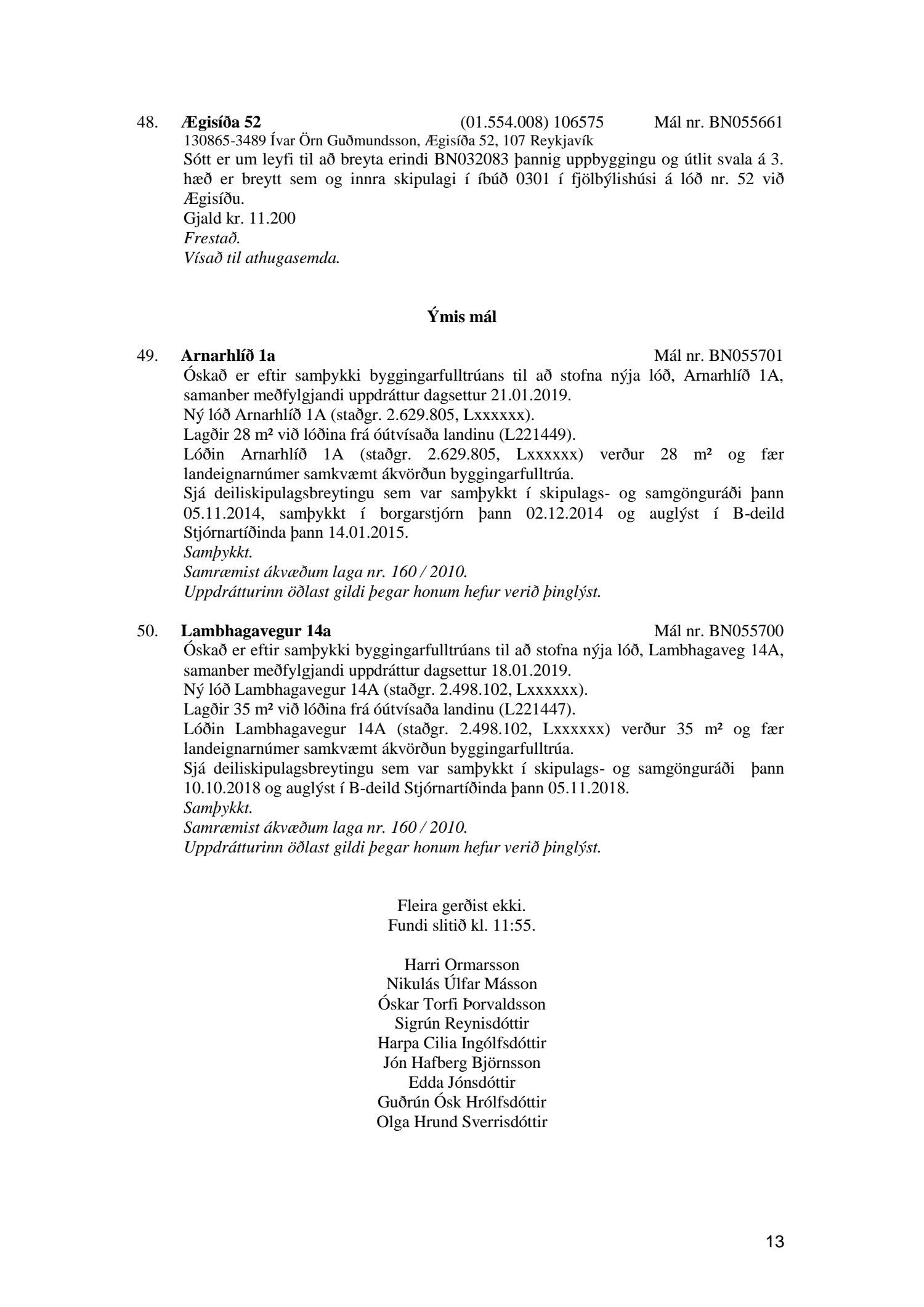 Umhverfis- og skipulagsráð nr. 55