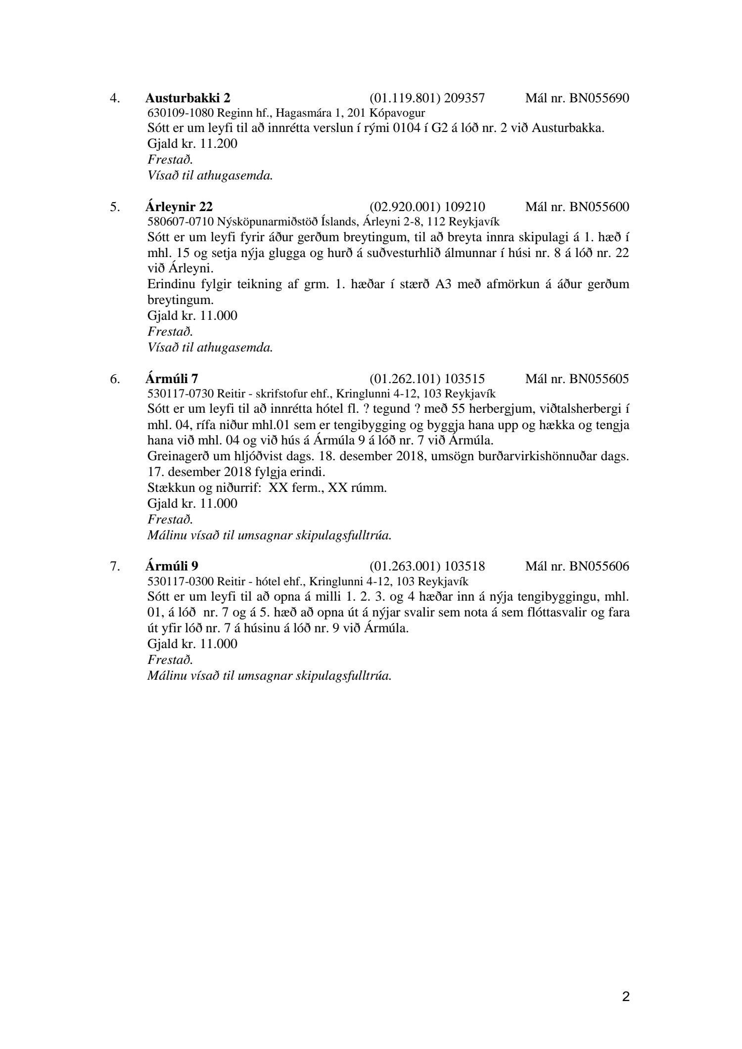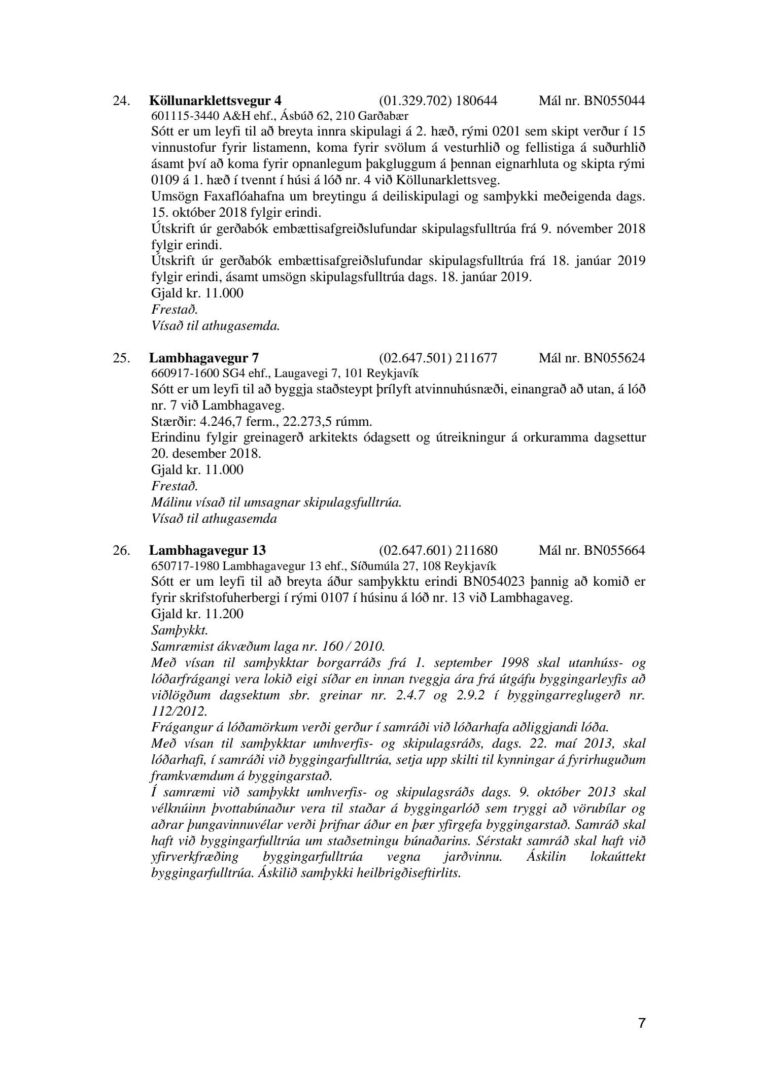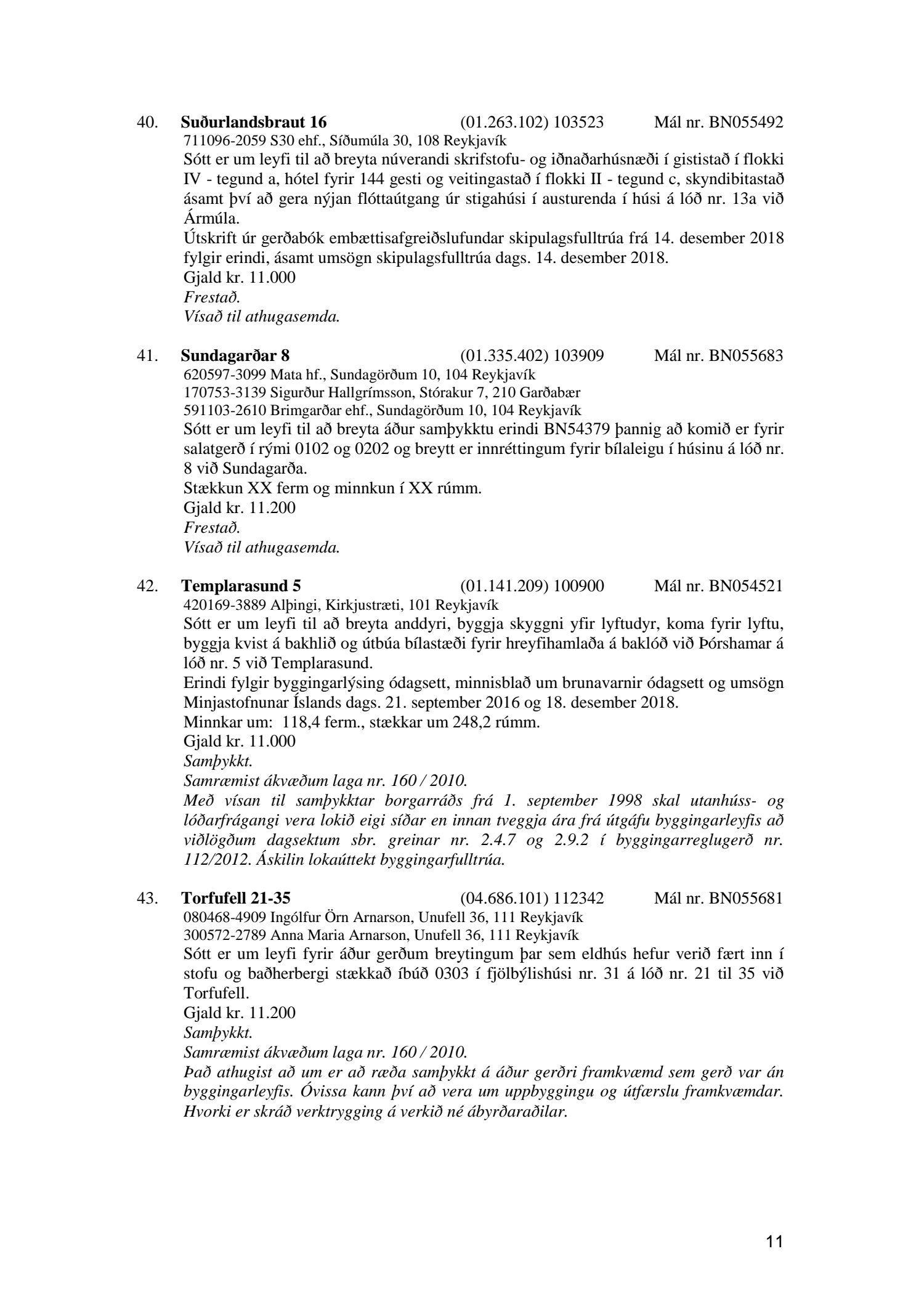 Afgreiðslufundur byggingarfulltrúa, fundargerð