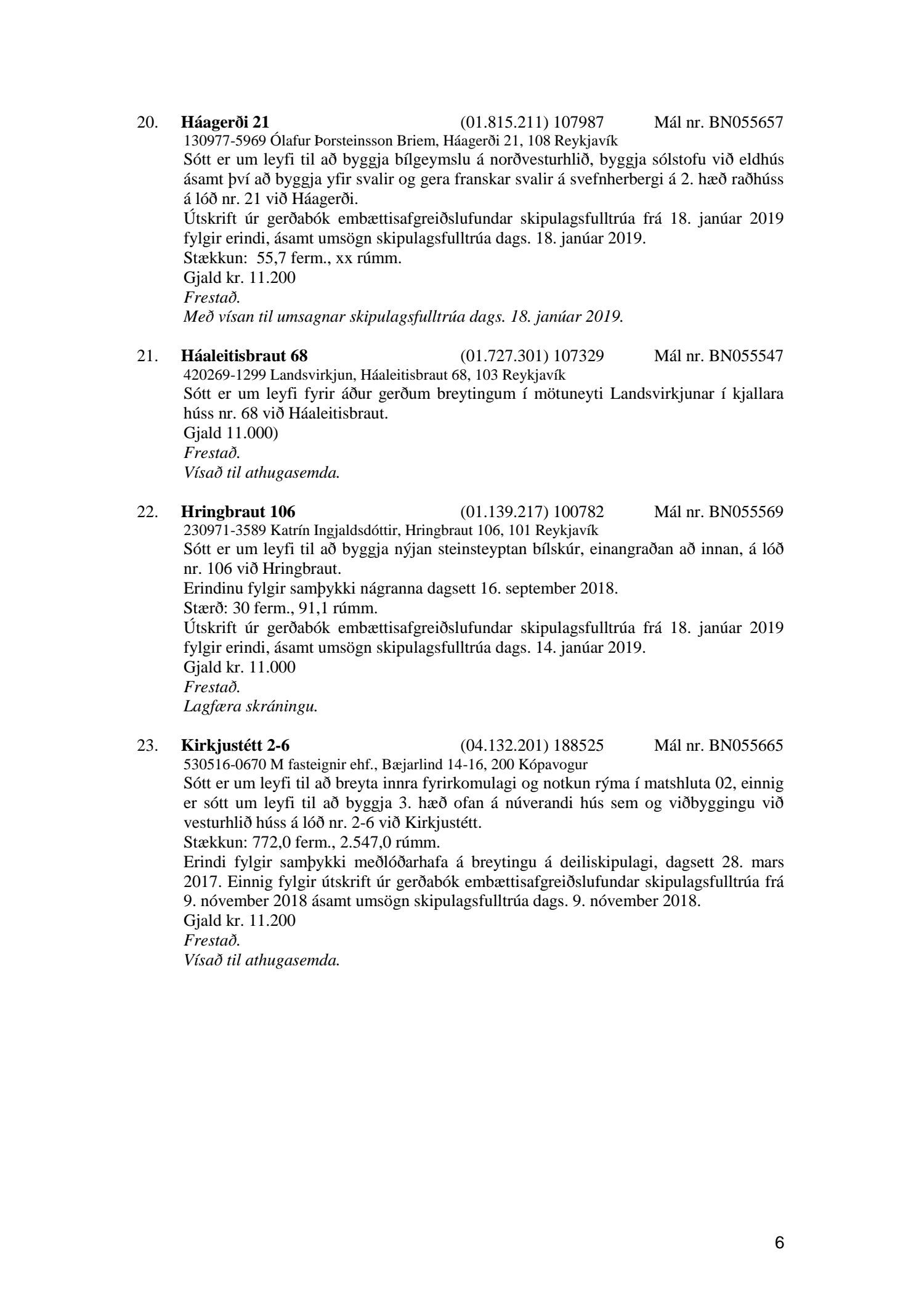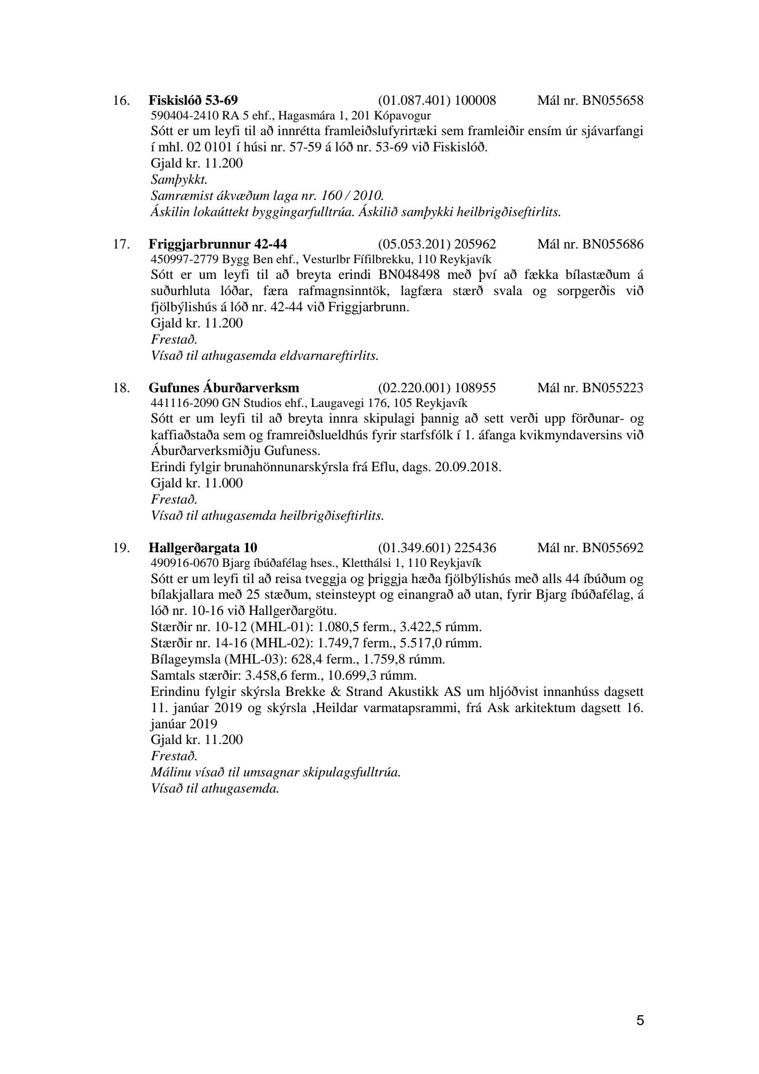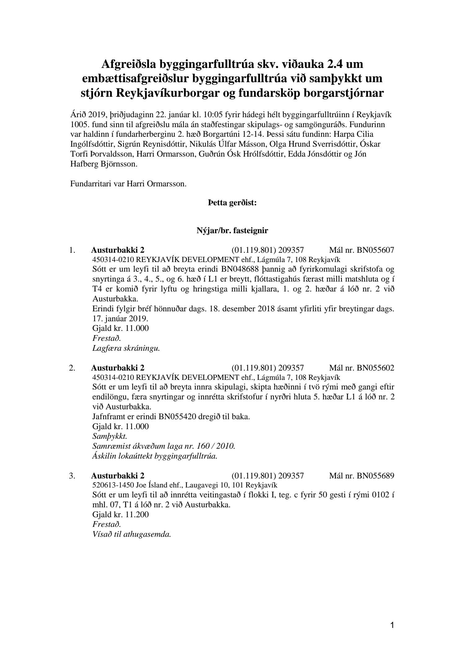 Fylgiskjal með fundargerð þessari er fundargerð afgreiðslufundar byggingarfulltrúa nr. 1005 frá 22. janúar 2019.